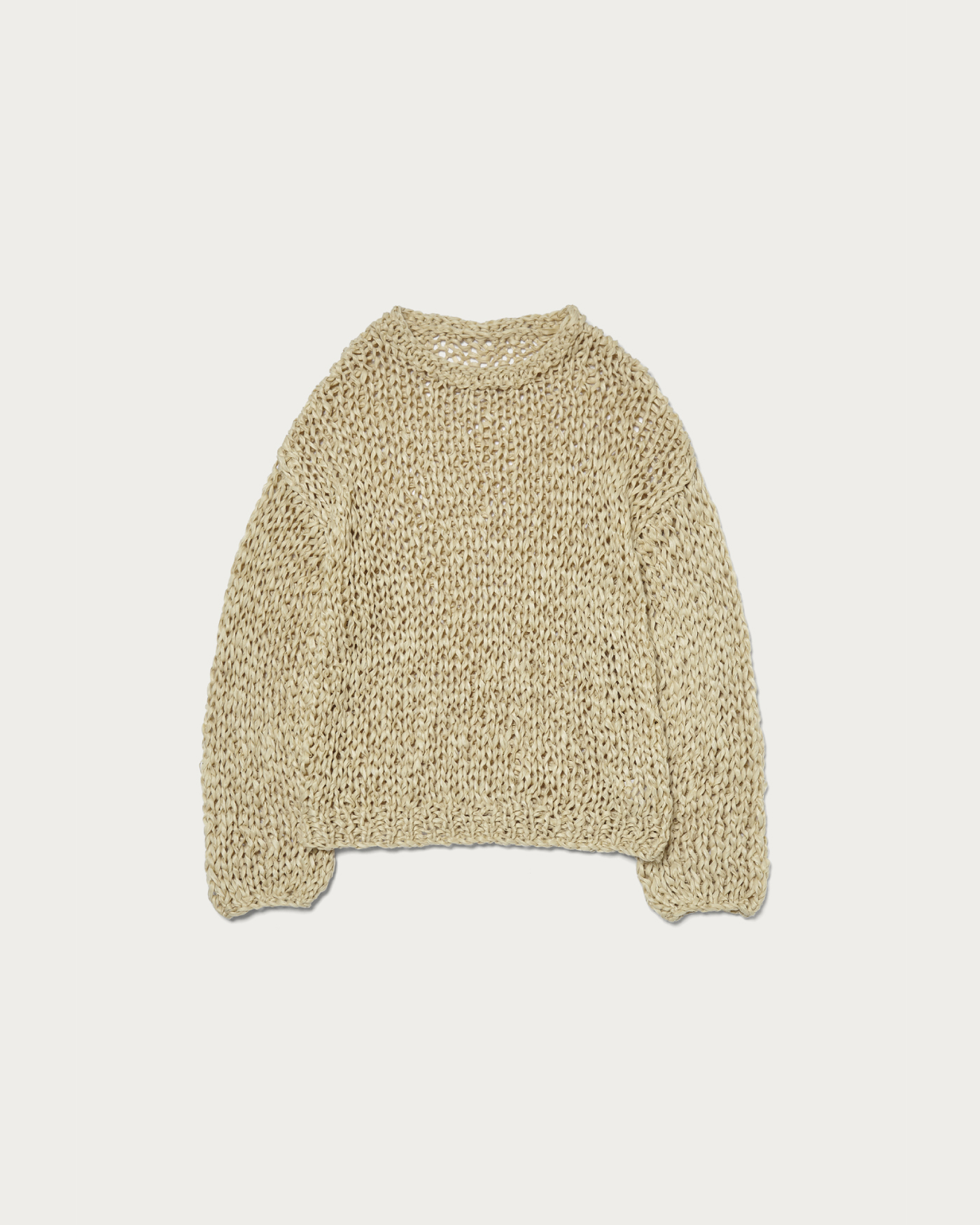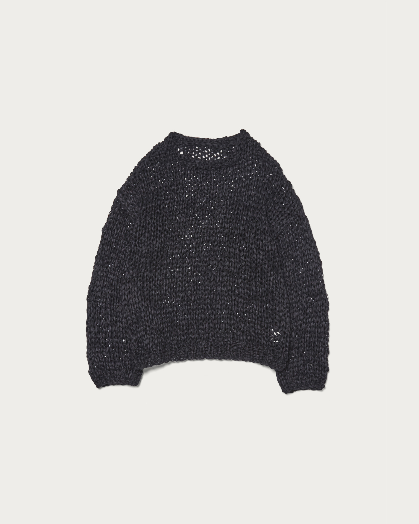 ややルーズテンションで編み上げてニュアンスのある表情に仕上げたニットプルオーバーは、ローゲージながらも着用感が軽いのがポイントです。ルーズなテンションで編み上げたニュアンスのある表情をお楽しみください。