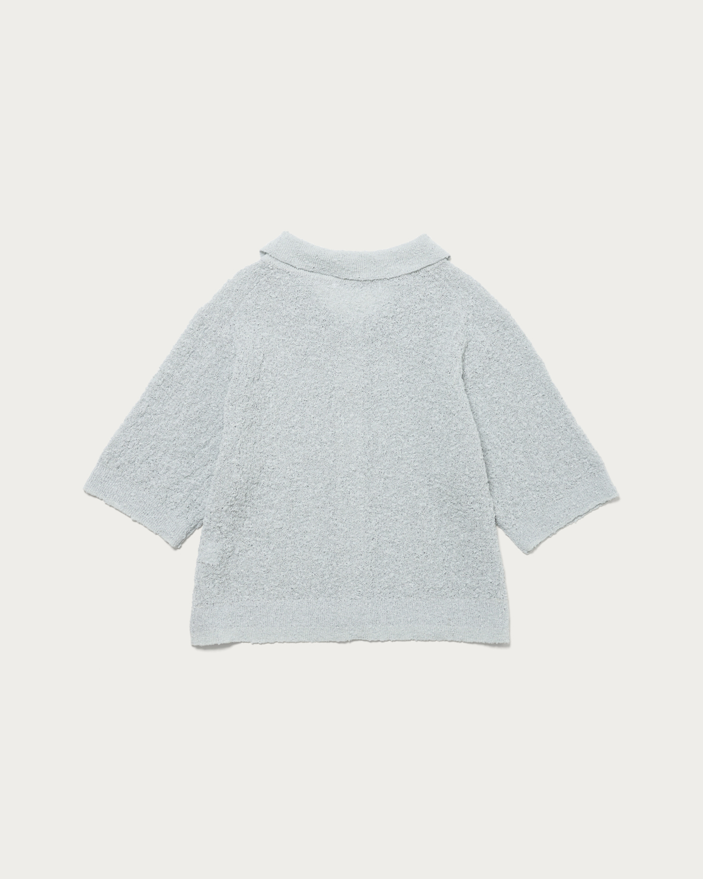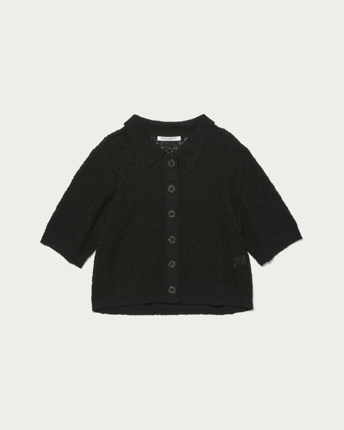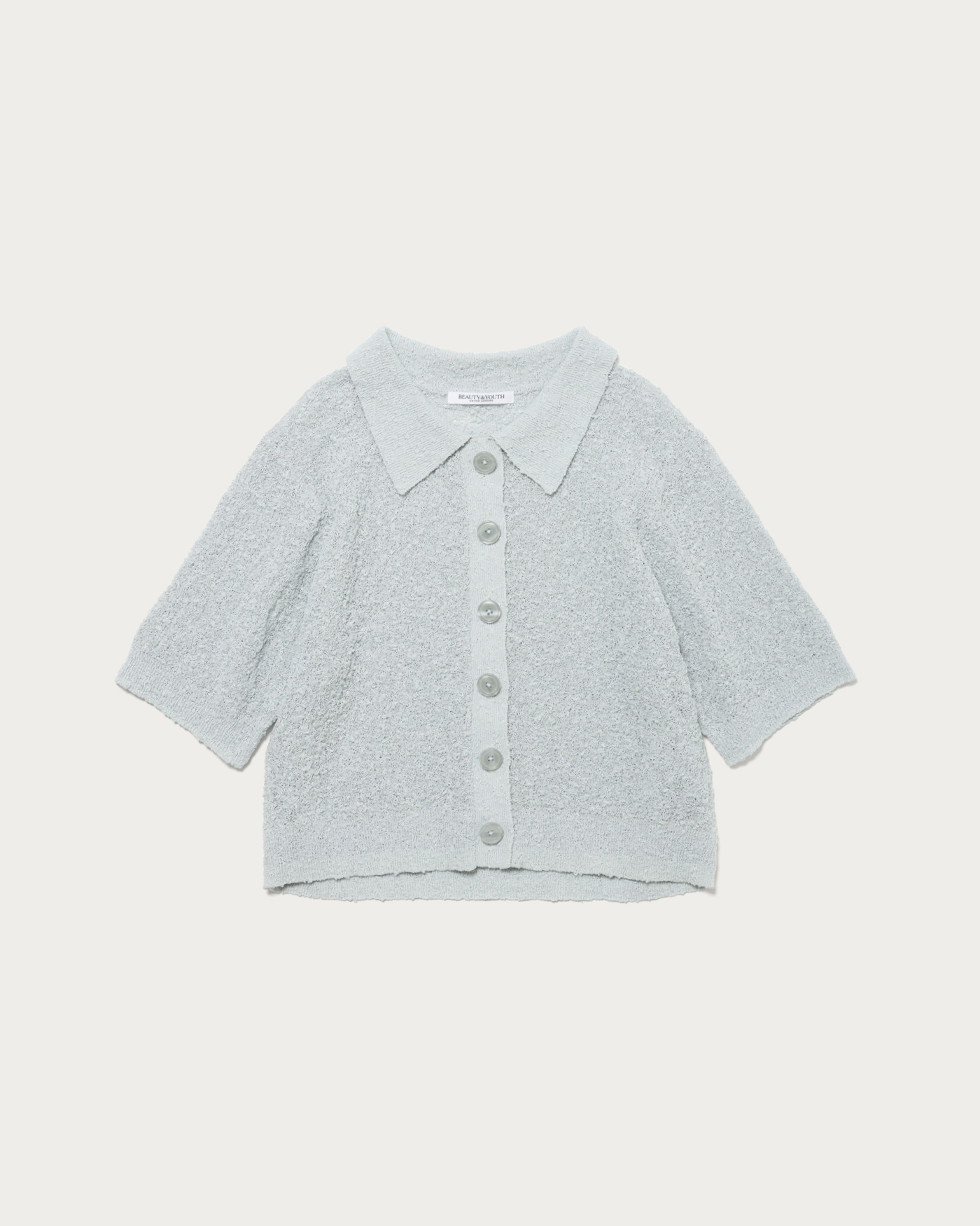 つぶつぶとしたノットヤーンがキュートなシャツ型のカーディガン。凹凸感を楽しめる表情のある仕上がりに。トレンド感のあるコンパクトなサイズ感で、羽織りとしてはもちろんのこと、ボタンを閉じてトップスのように楽しむのもおすすめです。
