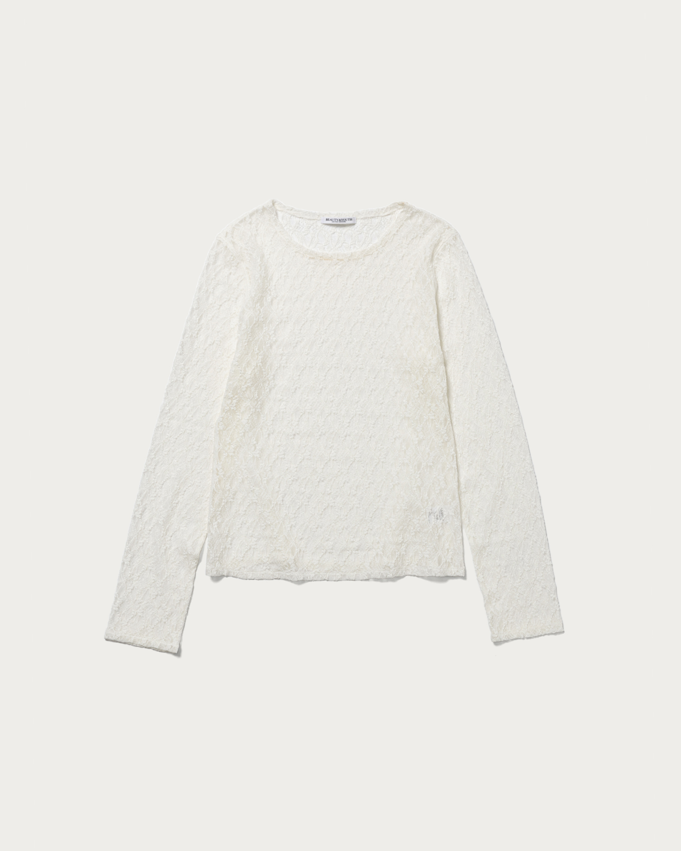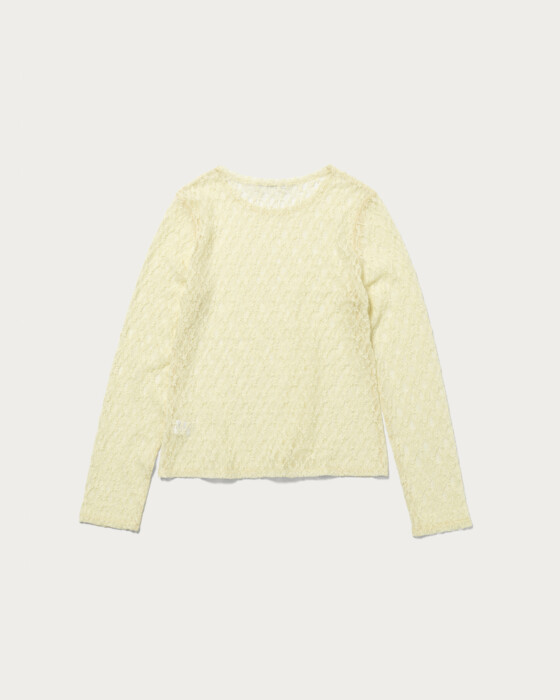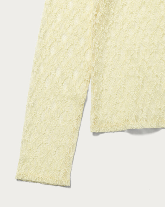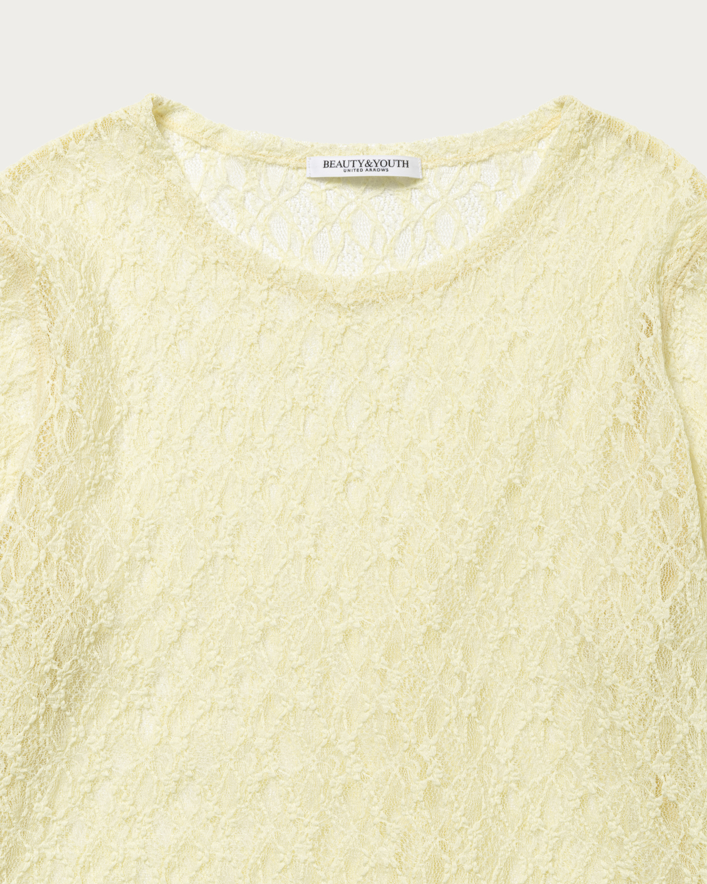 華奢なレースでお作りしたシアートップス。素材を際立たせるシンプルなクルーネックに仕上げました。コンパクトなシルエットのため、ヘルシーな着こなしが叶います。素材は適度な伸びのある華奢なレースを使用。ご自宅での洗濯も可能で、デイリーに気兼ねなくお楽しみいただけます。
