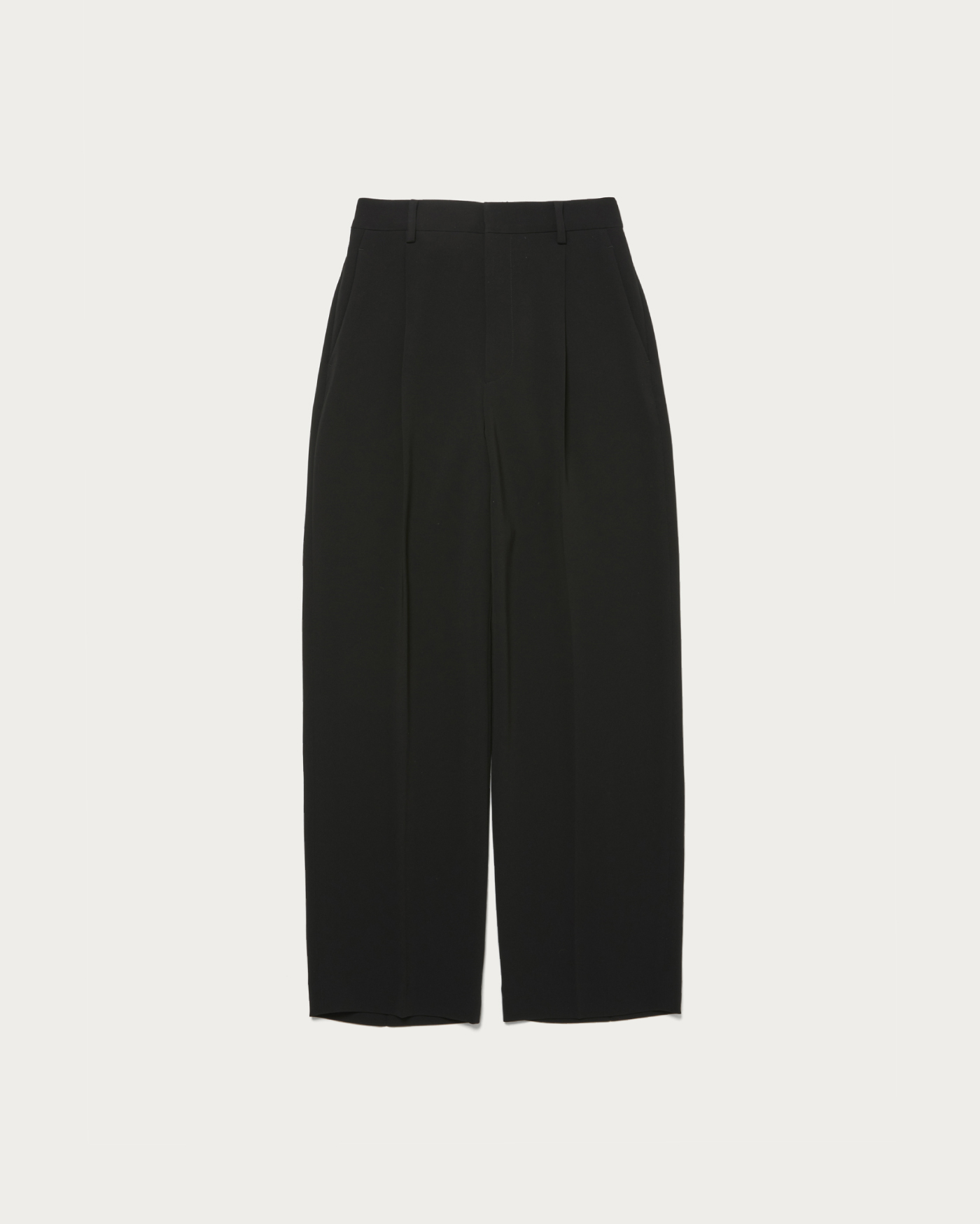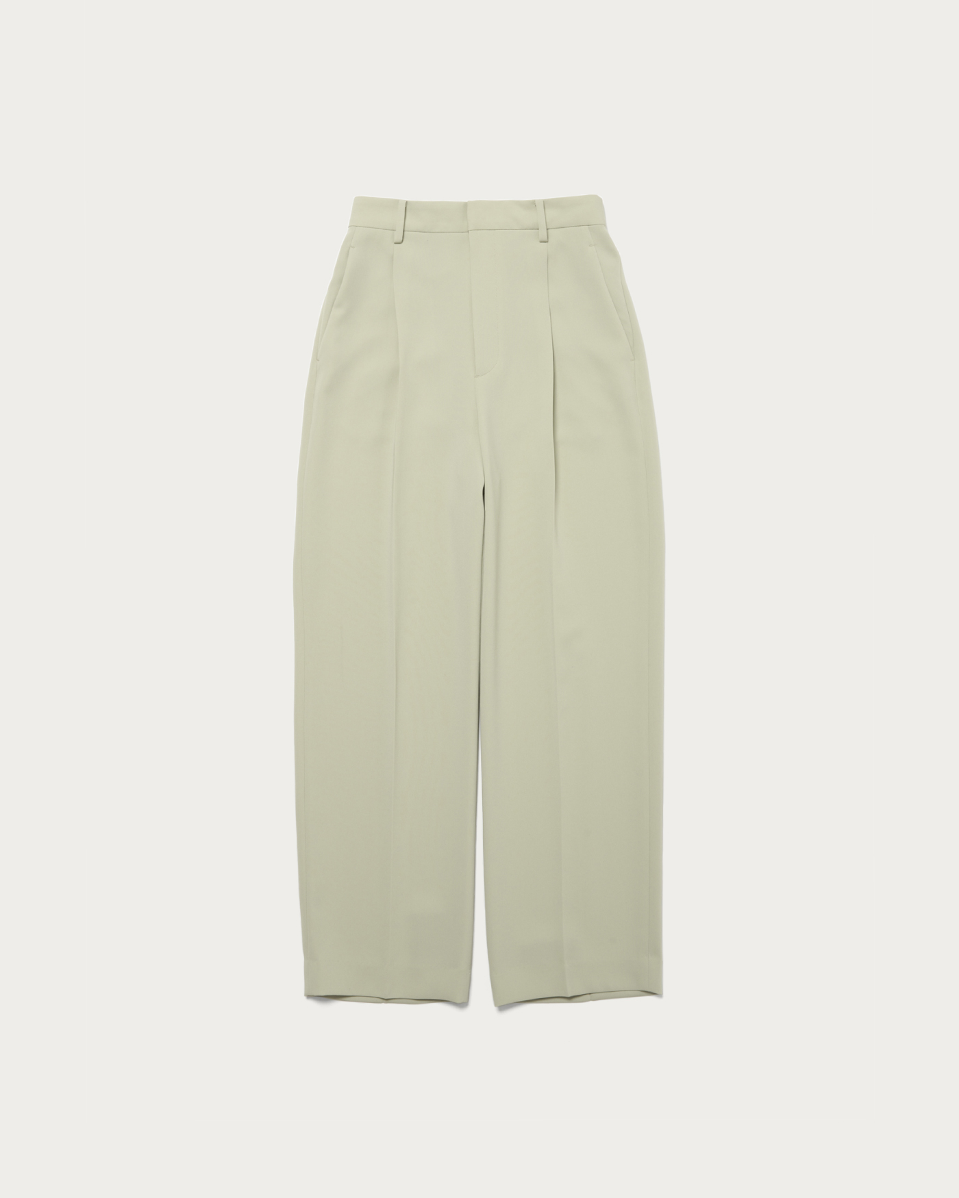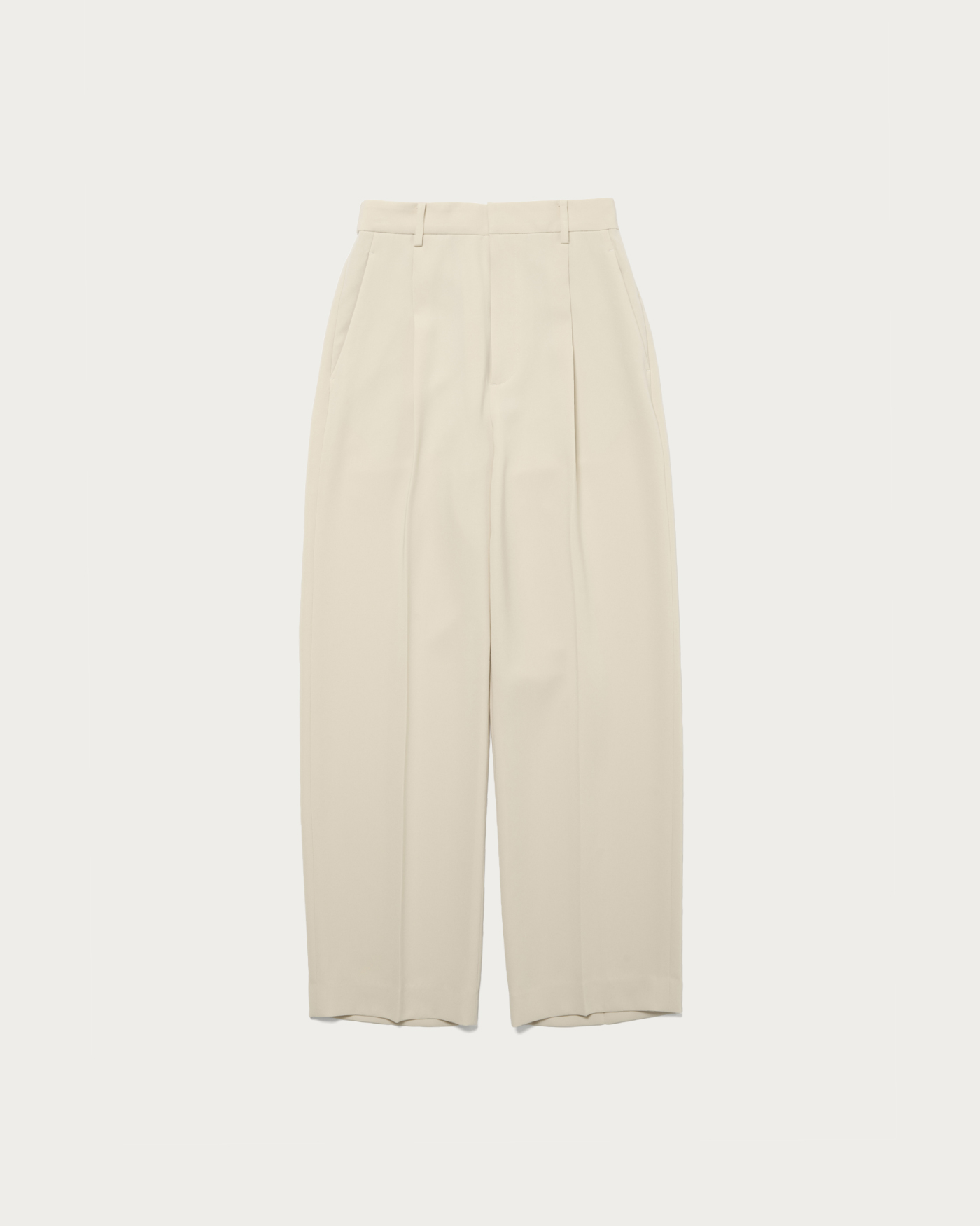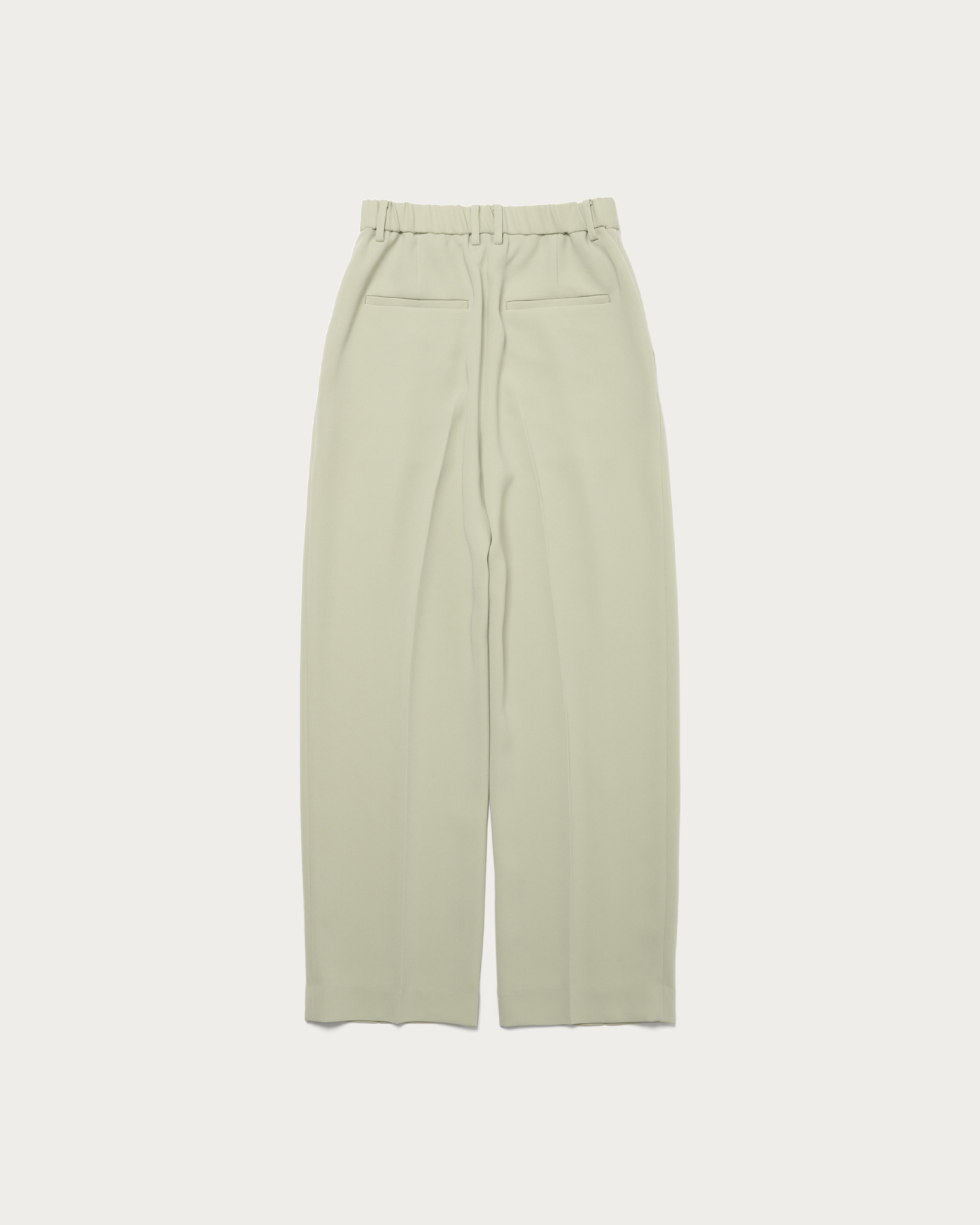 スタイルがよく見えるすっきりとしたワンタックパンツ。フロントはキレイに見えつつ、後ろをゴム仕様にすることでイージーな着用感を実現しました。適度な張り感と肉感がありつつ、さらりとした質感が特徴です。