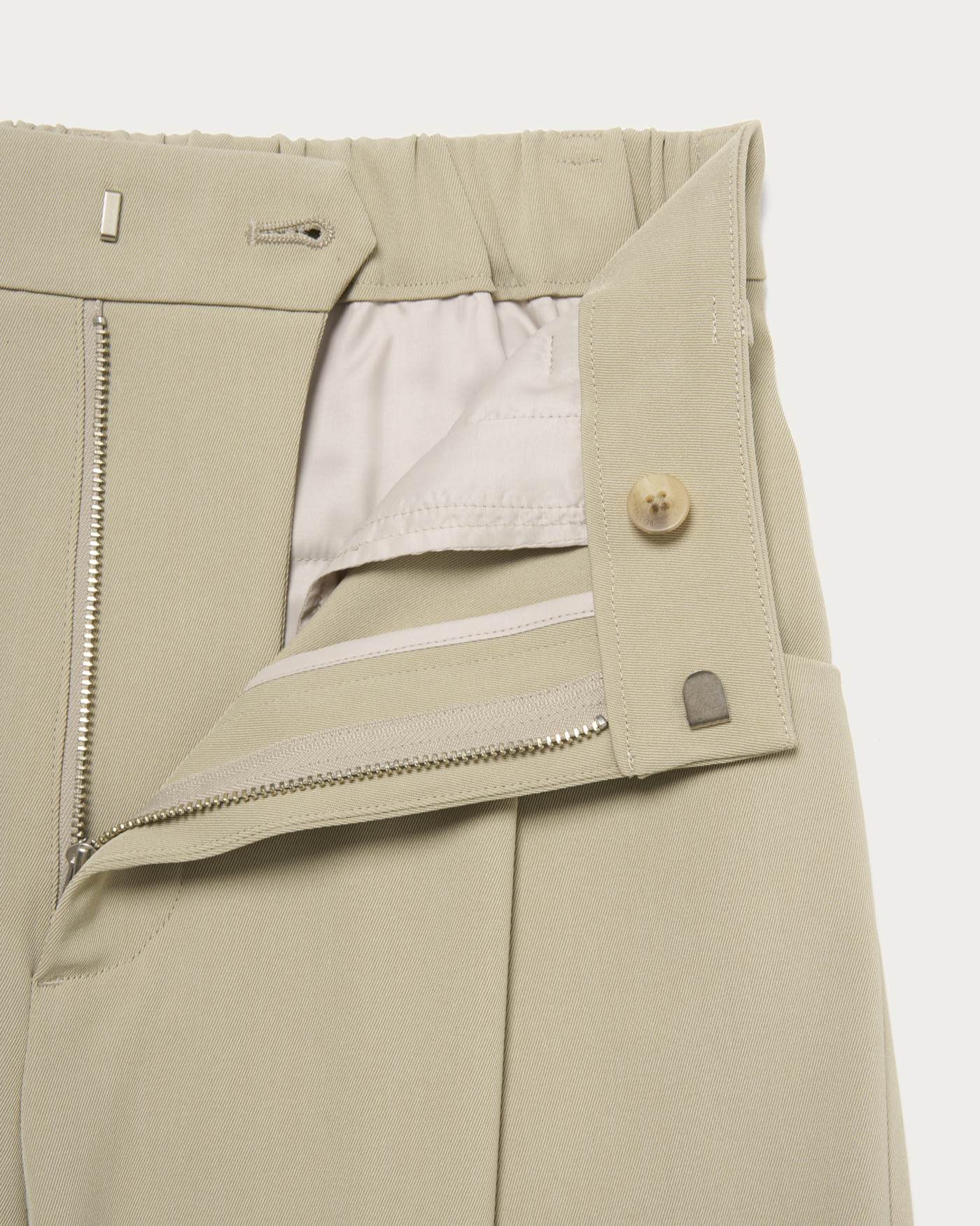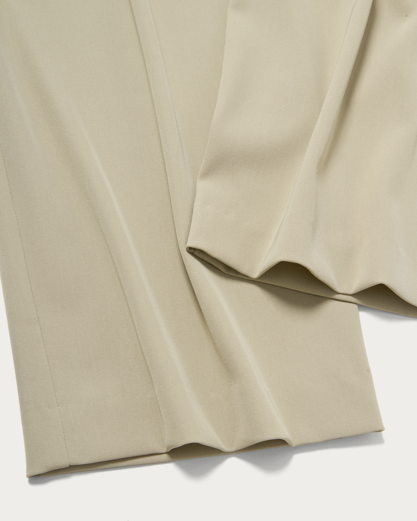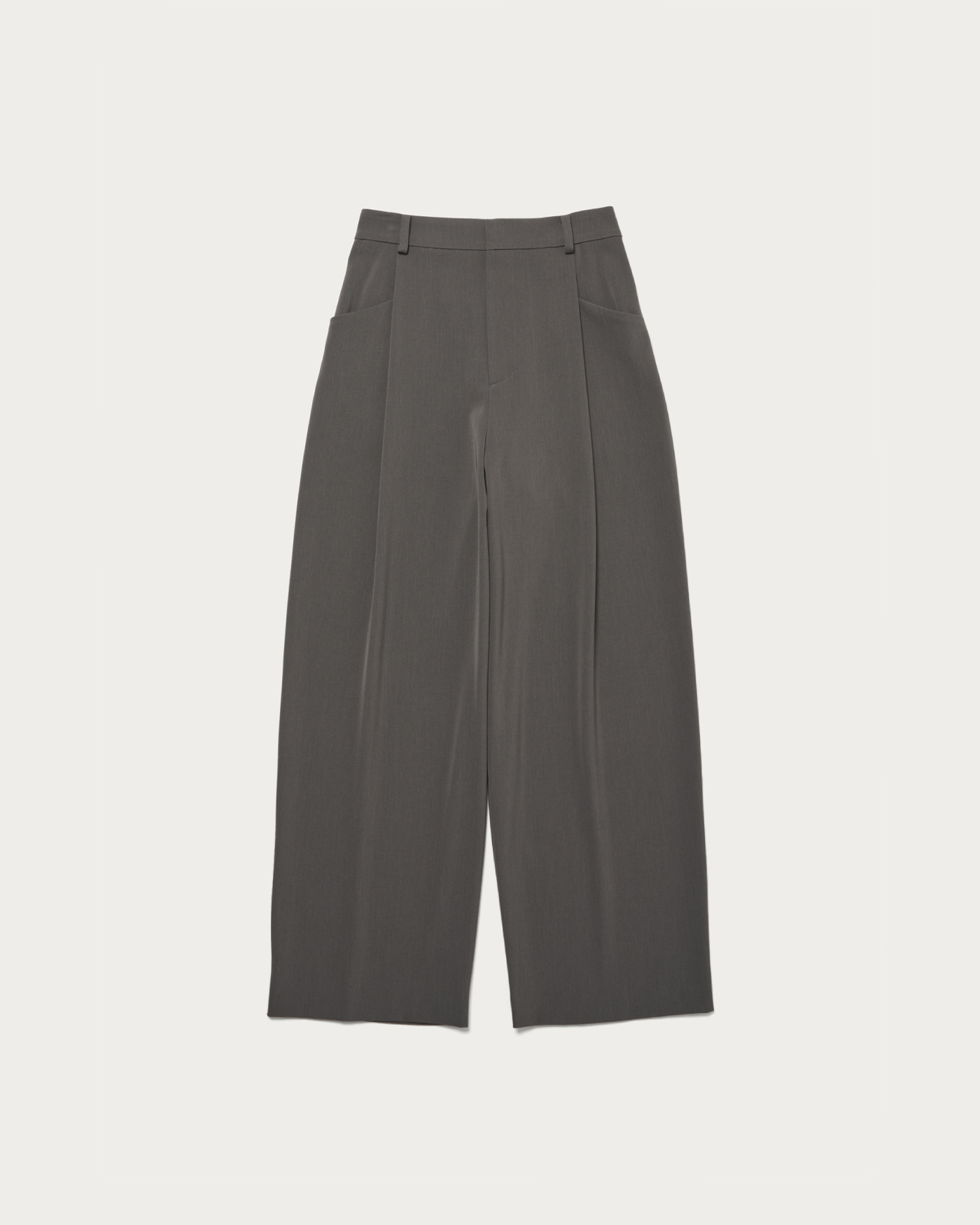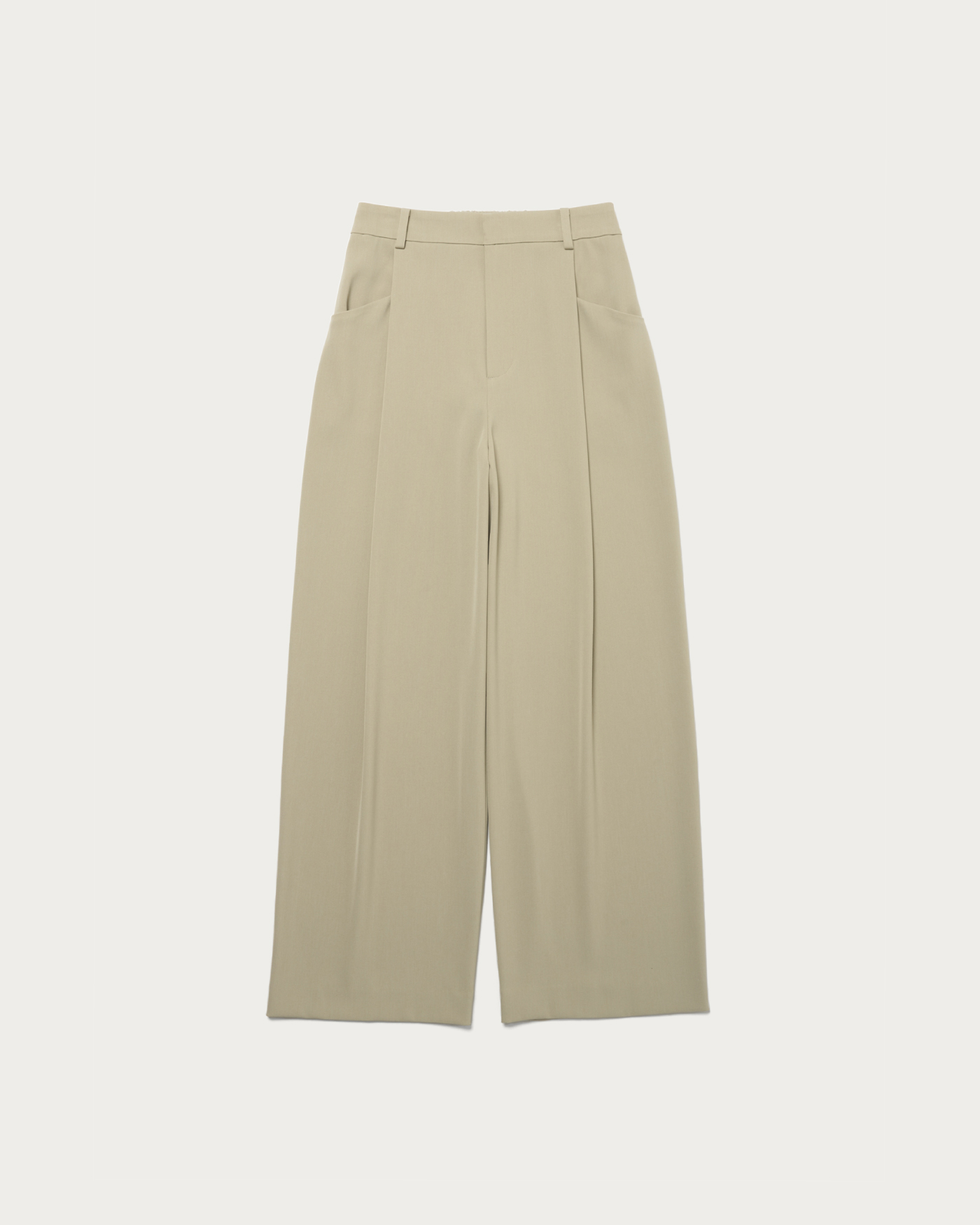 適度な緩やかさですっきりとしたシルエットのワイドパンツ。フロントタックのポケットのディテールでアクセントをプラス。シャリ味とドライ感、そしてすっきりと見える落ち感が特徴。後ろがゴム仕様になっているため、履き心地も抜群です。