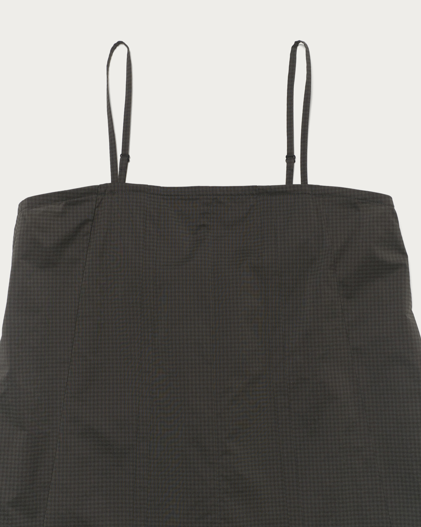 軽くハリのあるタフタを使用した、ミニ丈のキャミソールワンピース。柔らかい素材のため、上からニットを重ねたり、下にパンツを重ねたりとさまざまなレイヤードスタイルを楽しめます。大人っぽく着られるブラックとダークトーンのチェックの2色展開です。※実際の商品とはデザイン・仕様が一部異なる場合がございます。