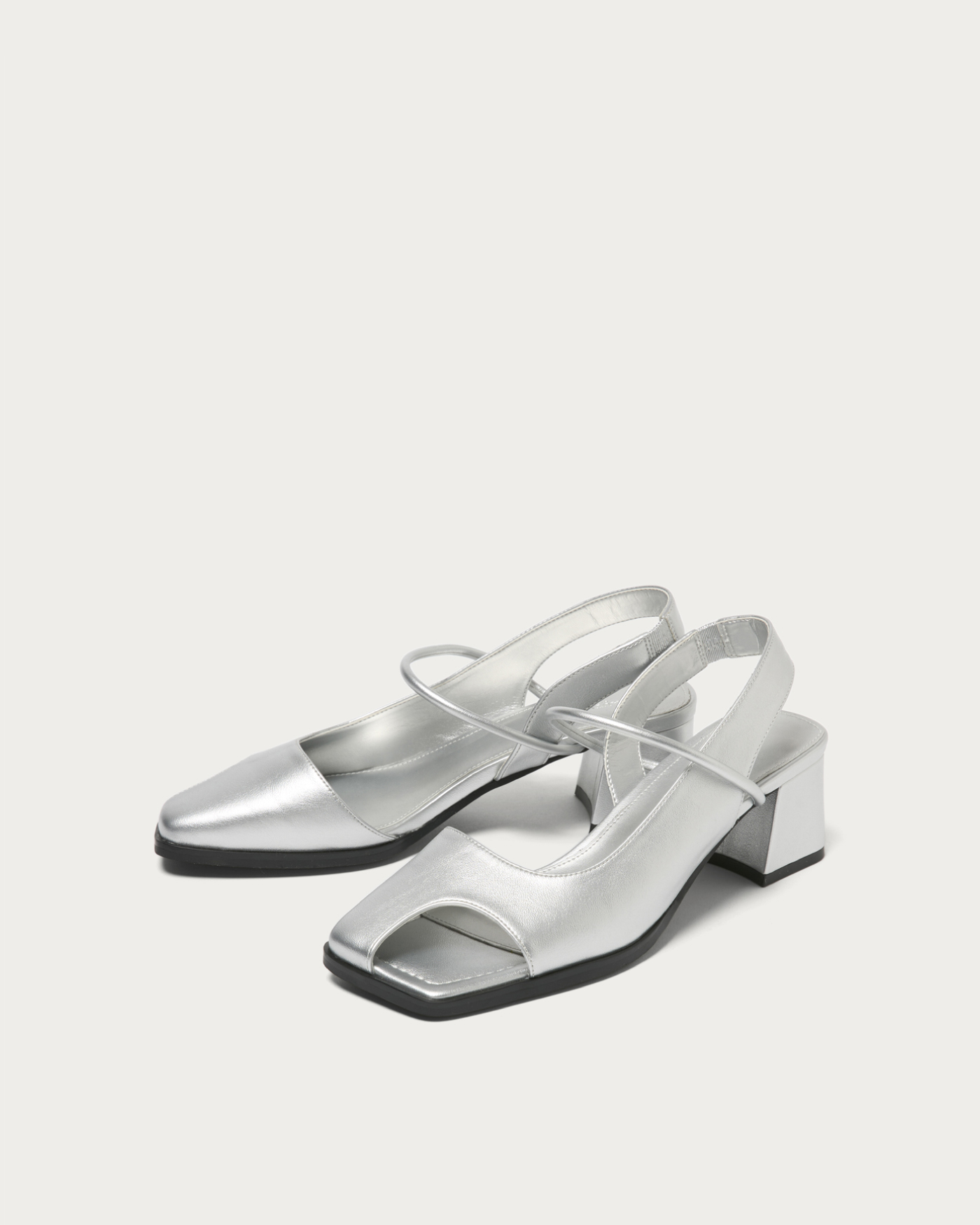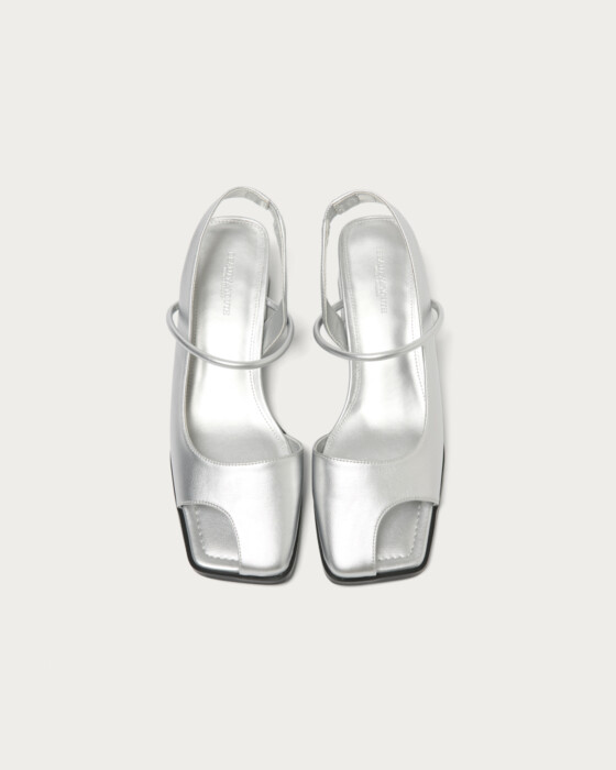 昨年も好評いただいたオープントゥのバックストラップミュール。5cmあるヒールは安定感があり、高さを感じさせない履き心地です。親指が隠れたデザインは、コーディネートのアクセントになり、早い時期からも取り入れられます。今回は新色でSILVERが登場。