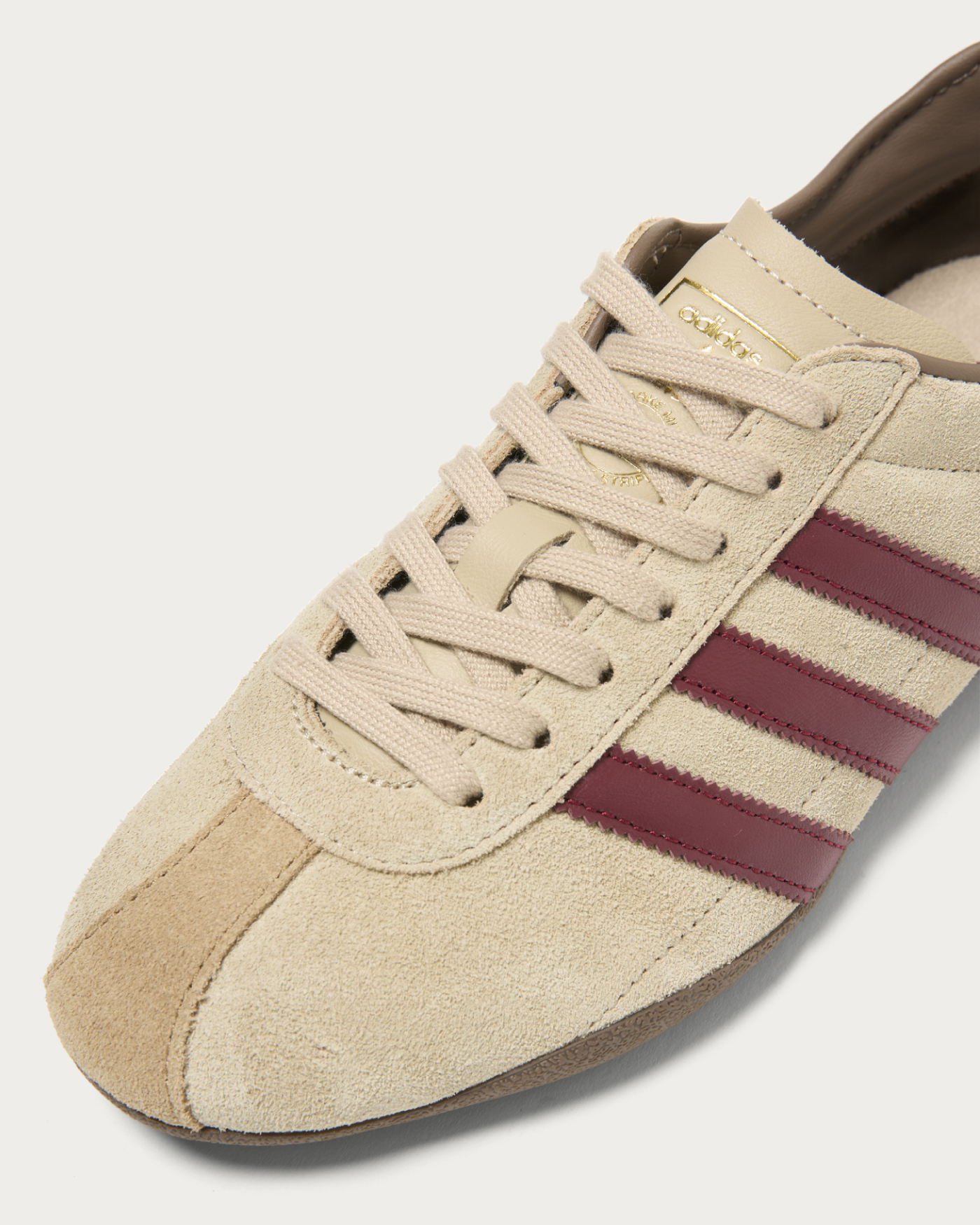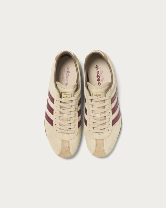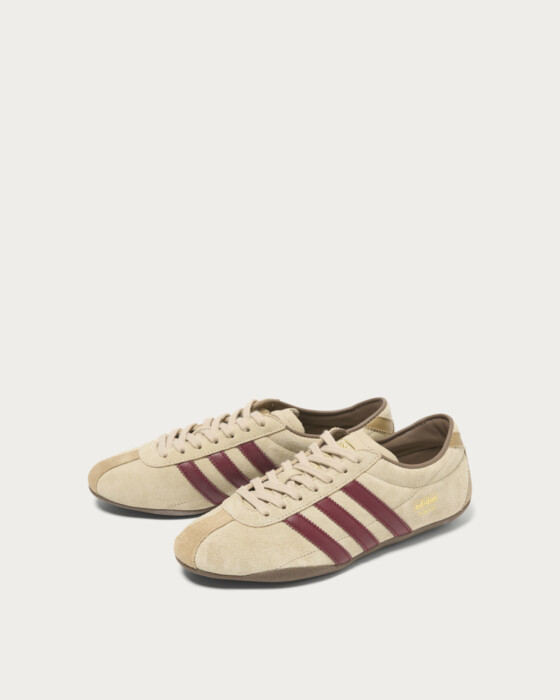 70年代のランニングスタイルを彷彿とさせる、細身の薄底シューズ。滑りにくいラバーアウトソールを使用しており、アスファルトやコンクリートを歩くタウンユースに最適です。今シーズンのビューティー&ユース別注はシーズンカラーであるストーンカーキのスウェードアッパーにバーガンディの3ストライプスを施し、ビンテージなムードが漂うシックな仕上がりに。替え紐もライニングやツーリング(ソール)と色を合わせることで その日の気分に合わせた履きこなしが可能です。