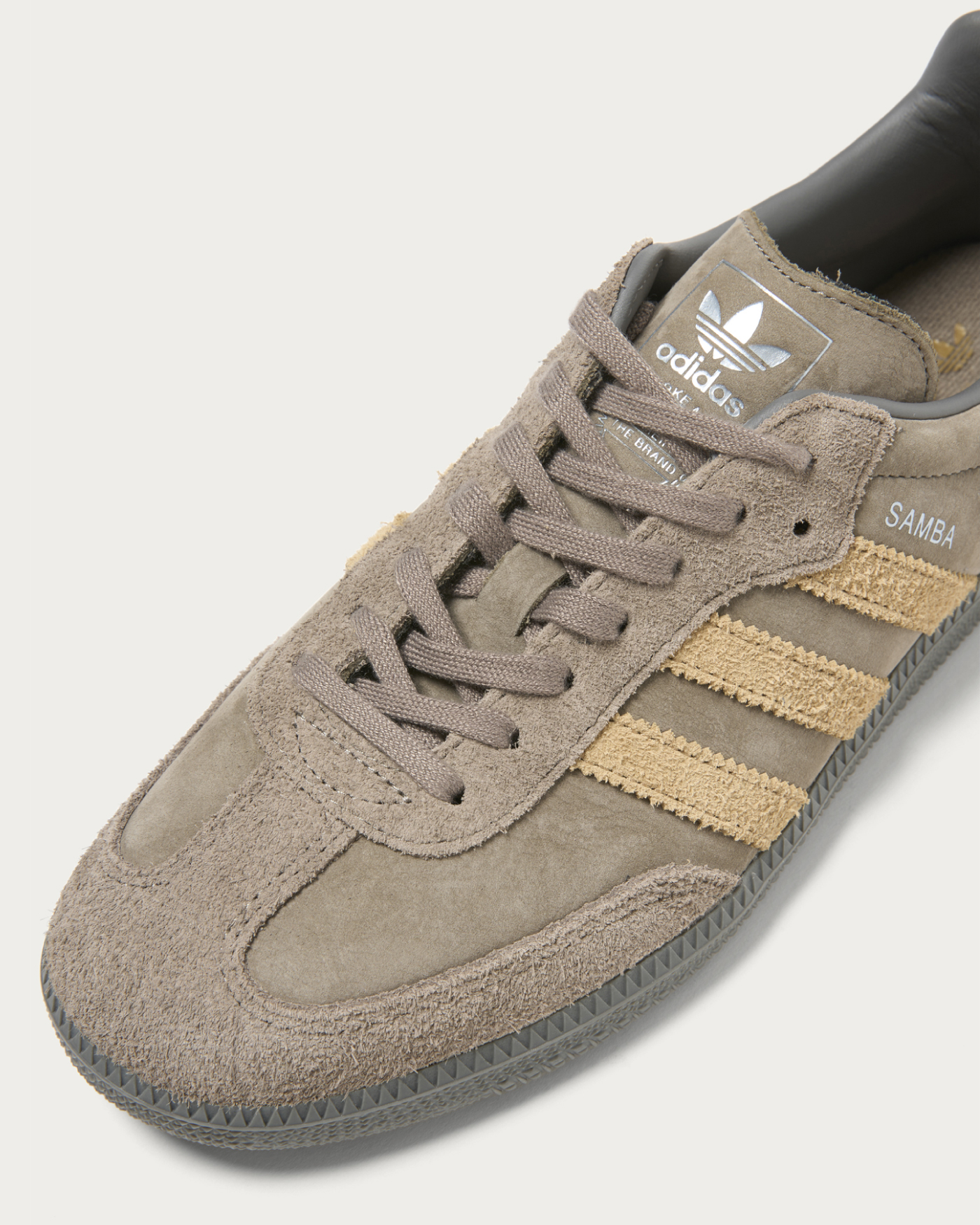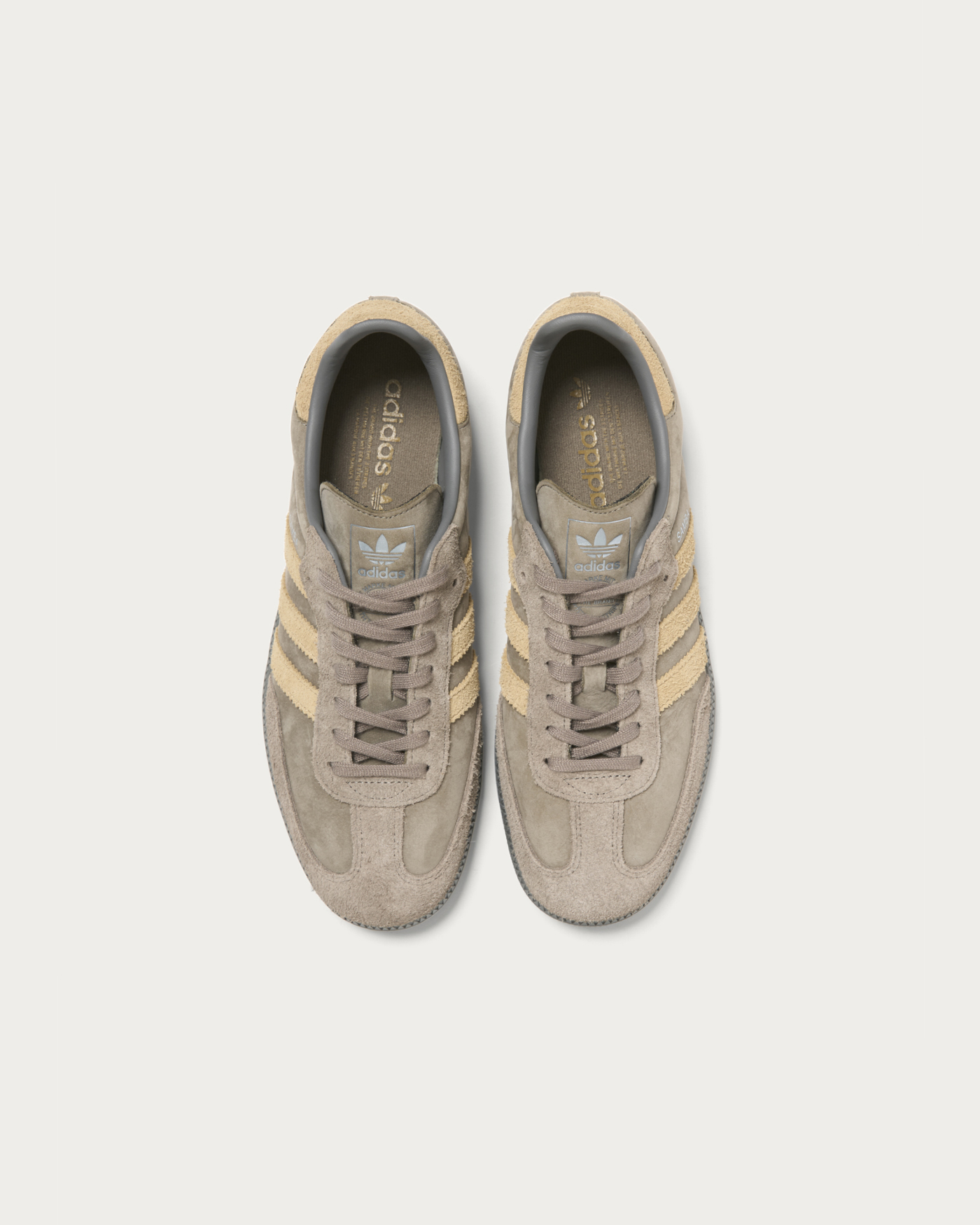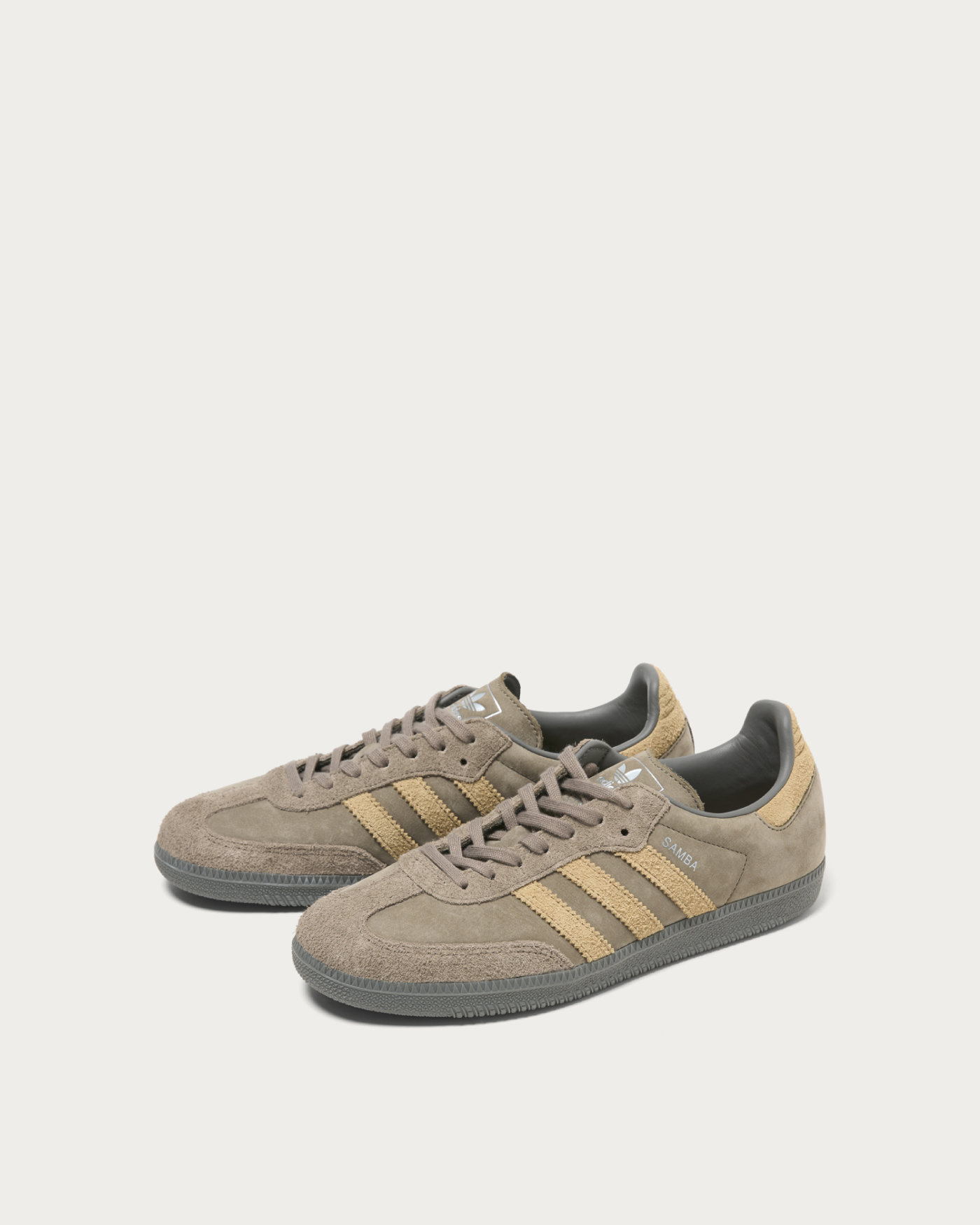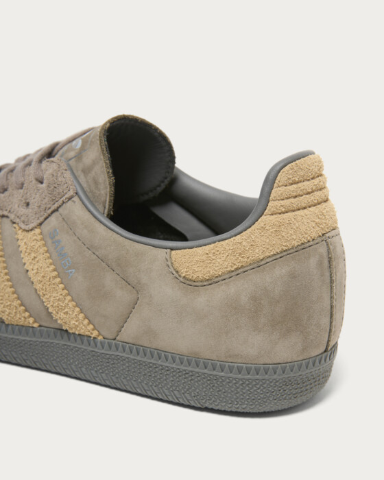 インスピレーション源は、1950年代に登場したインドアサッカーシューズ。このクラシックな一足を、現代のライフスタイル向けにモダンにアップデート。滑らかなレザーアッパー、つま先の補強、ガムラバーアウトソールが足をサポートします。今シーズンの別注は、SambaOGでは珍しいオールsuedeをアッパーに採用。つま先、ヒールパッチ、3ストライプスそれぞれに毛足の違うスウェードを使用し、ビンテージのようでありながら斬新な印象に仕上がりました。