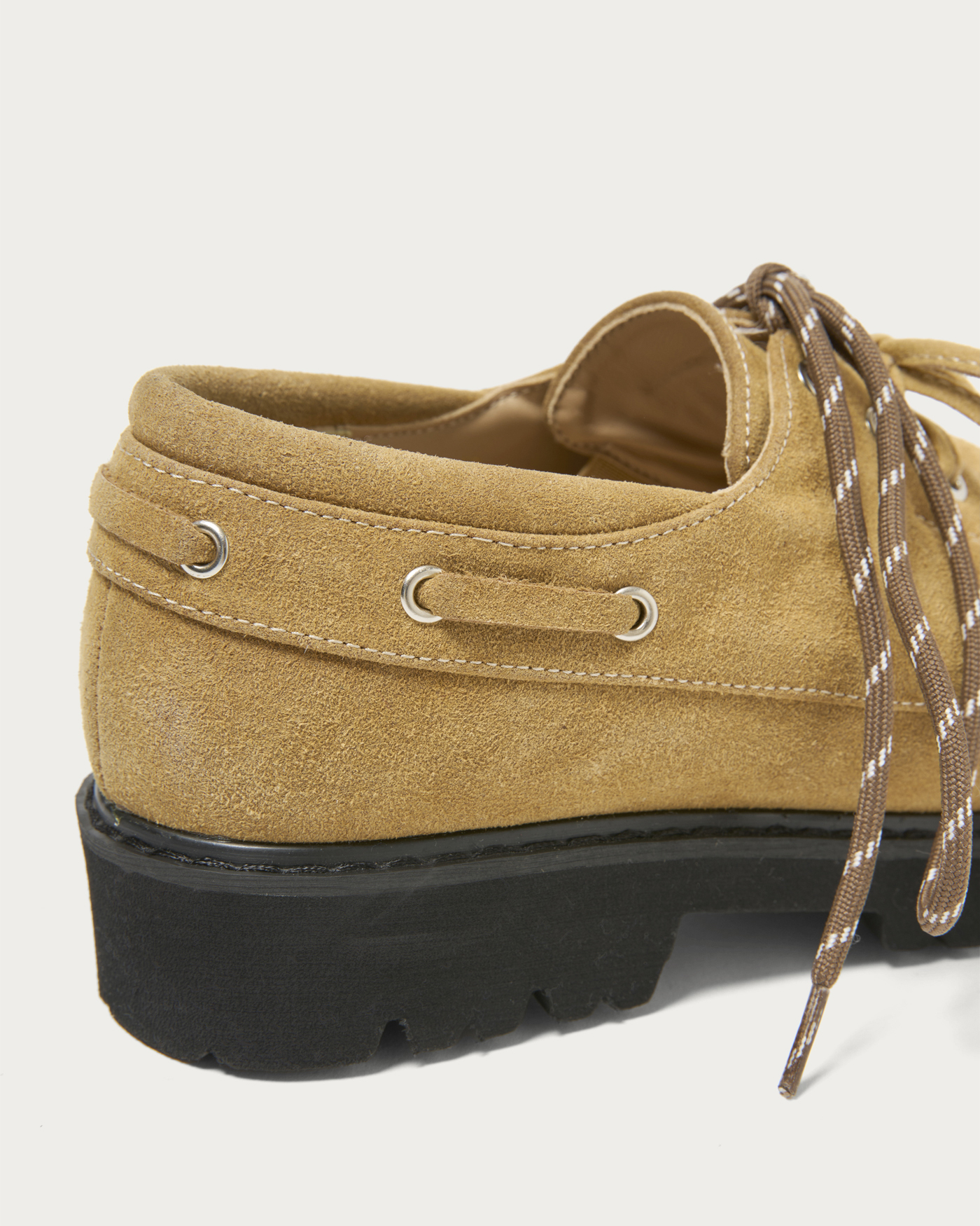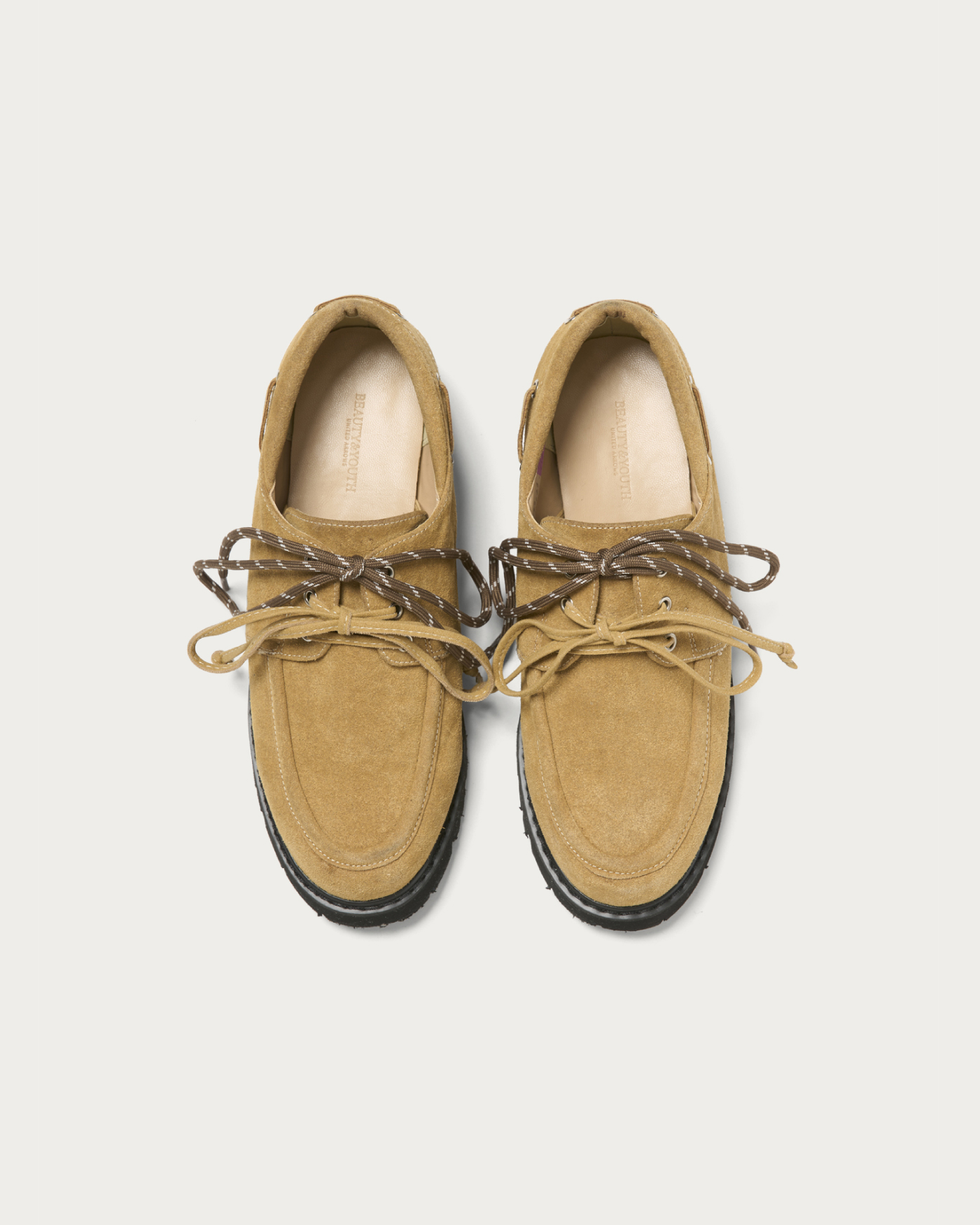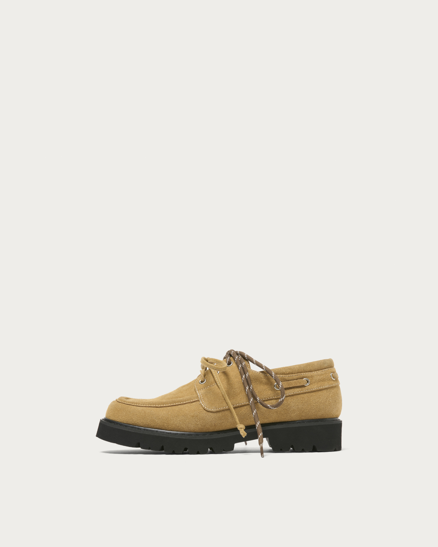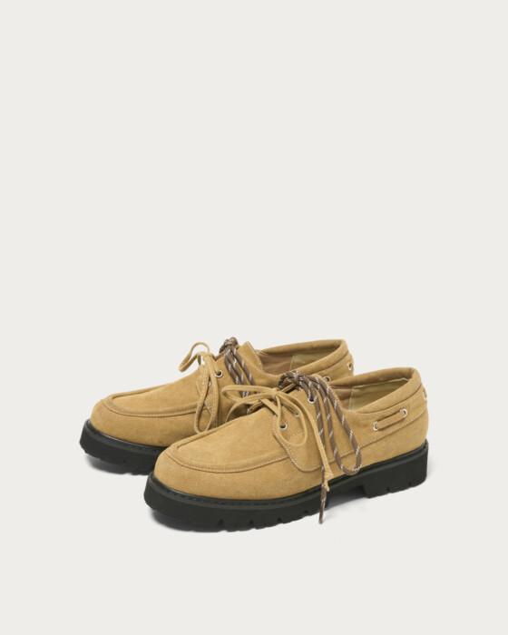 今季一押しのデッキシューズが新登場。軽さがありながらもボリュームのある厚底ソールを採用し、今の時期の装いにもバランスよく合わせされる一足に仕上げました。紐にもトレンドムードが出るよう、マウンテン紐と無地の2色をご用意。