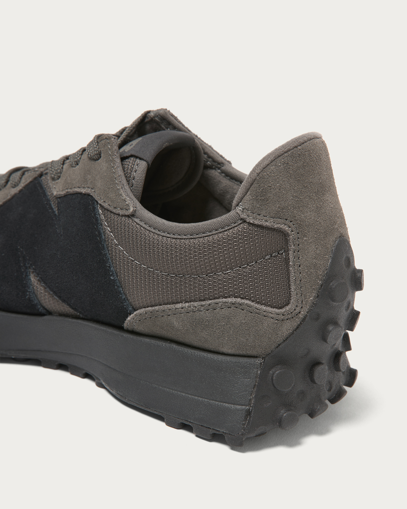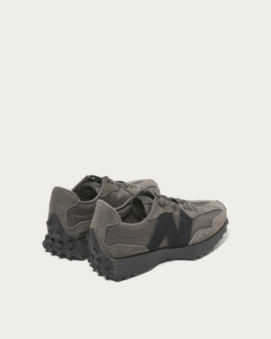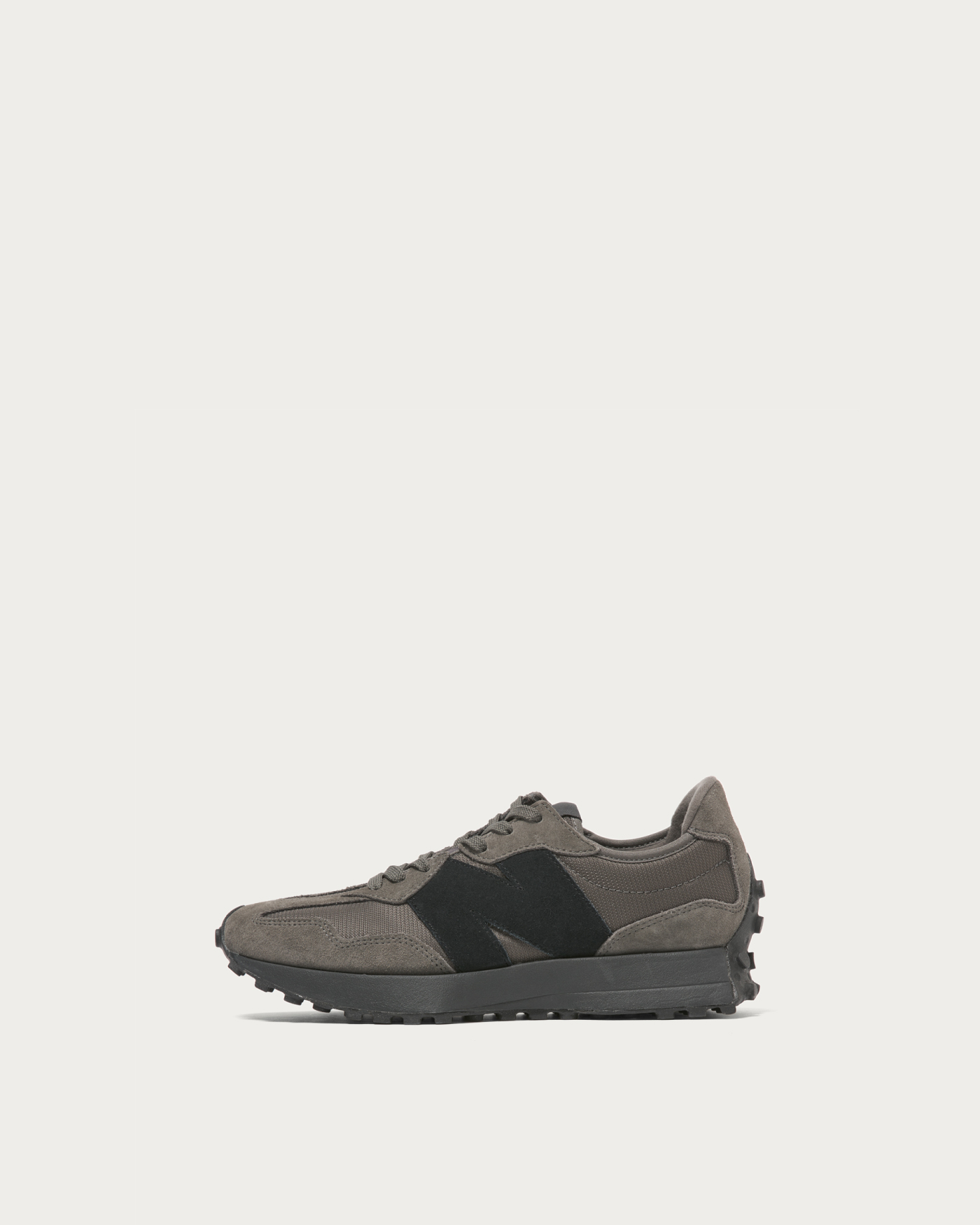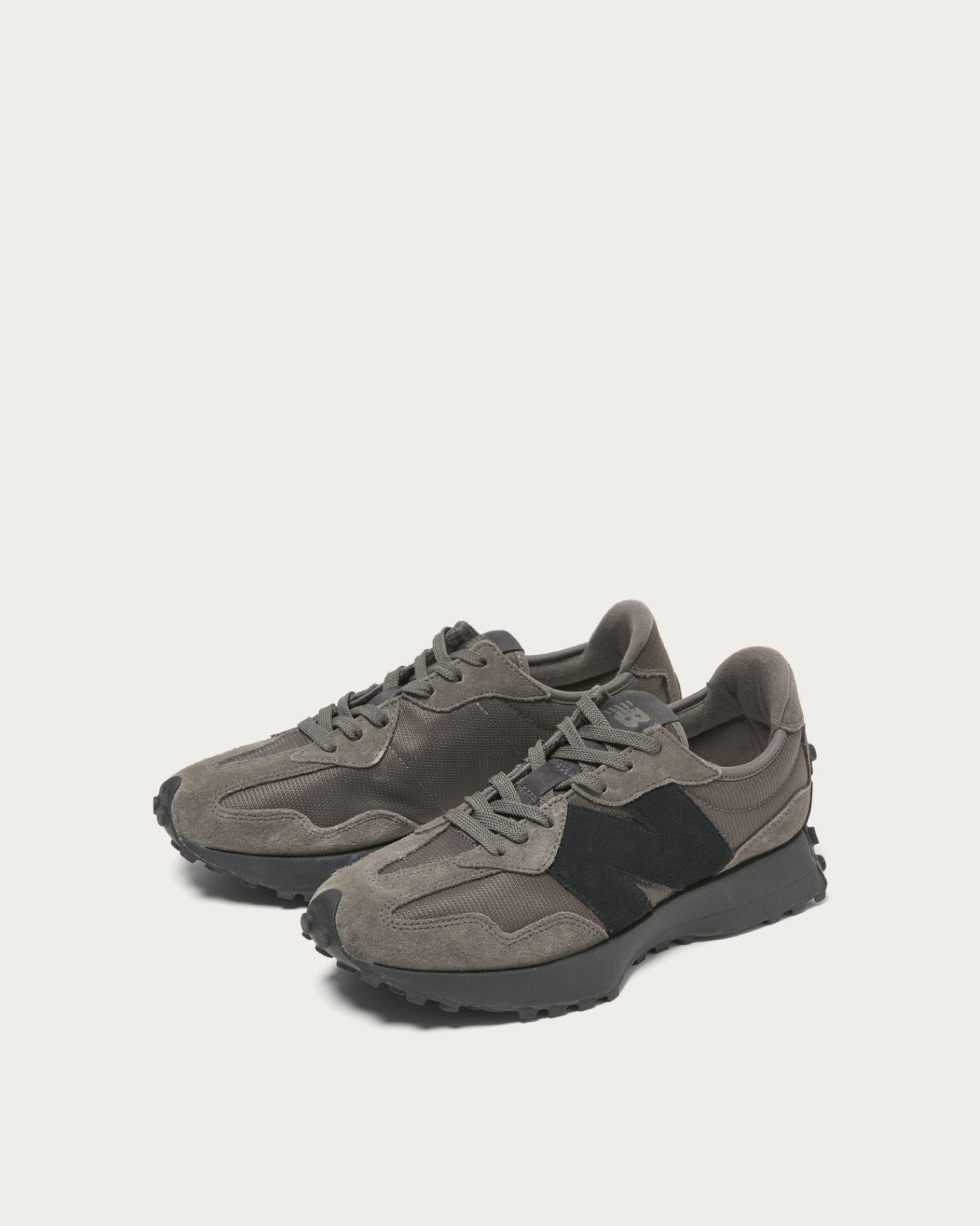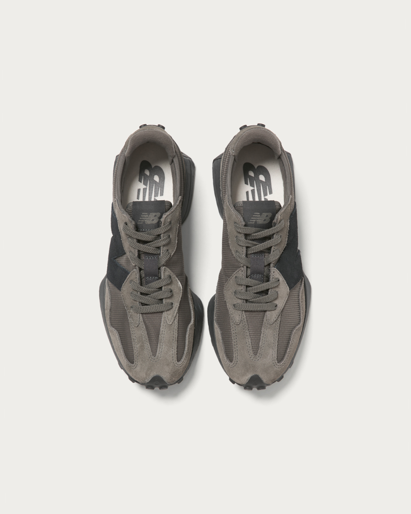 70年代を席巻した、〈New Balance〉の数々のレーシングシューズをアレンジしたレトロなフォルムに、ビッグNロゴを配した「U327」。「327」シリーズの目印でもあるフレアソールや、外側のみに配したブランドロゴが特徴です。ニュアンスのあるオリーブとグレーを掛け合わせたような、シックな配色が印象的な一足に仕上げました。