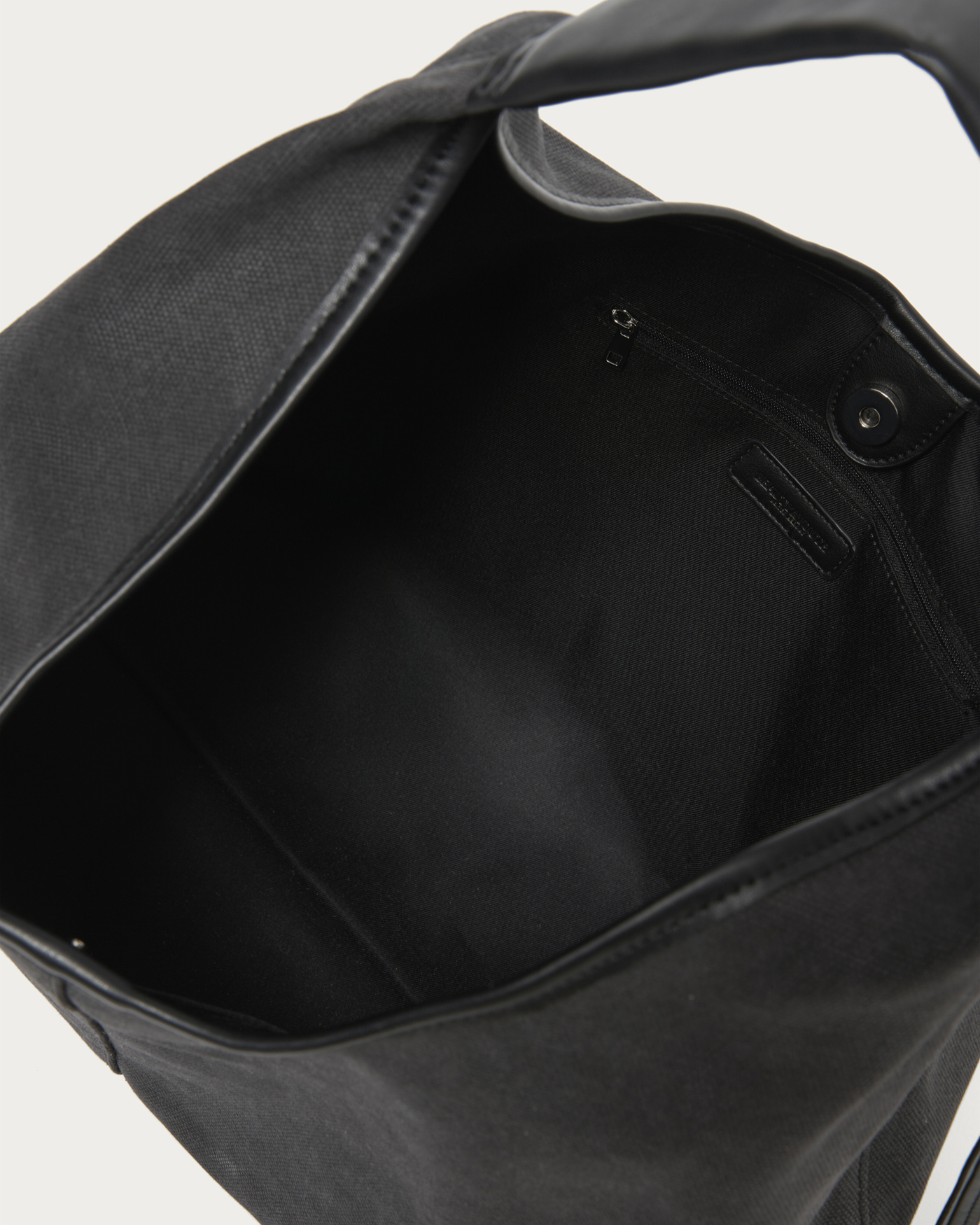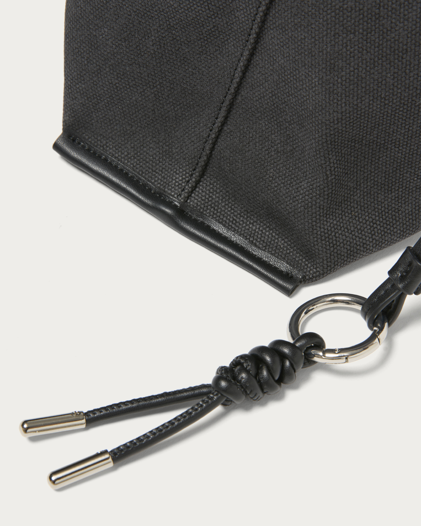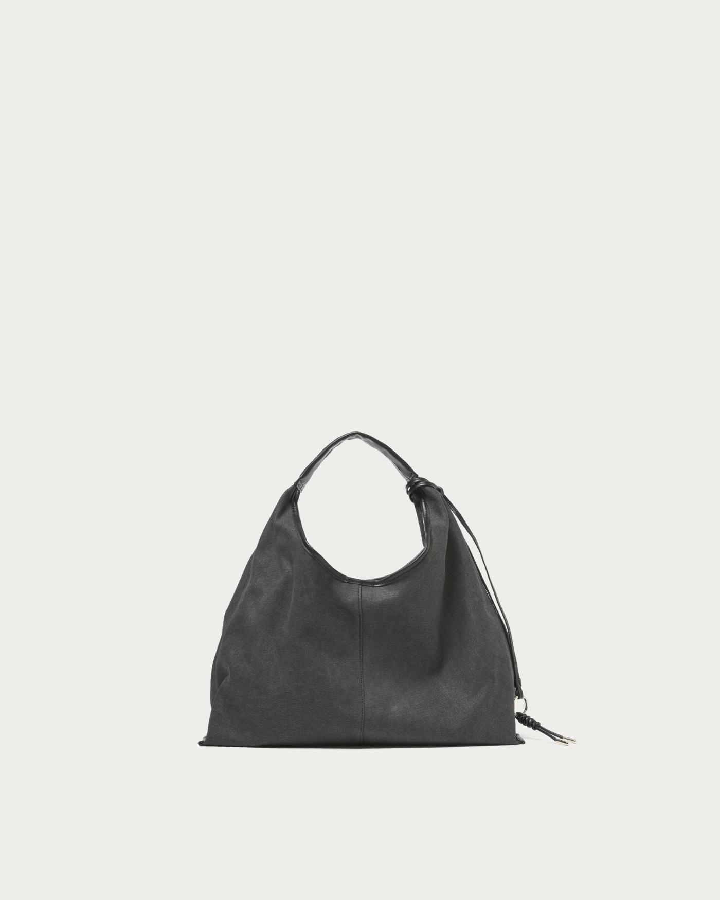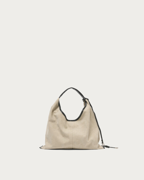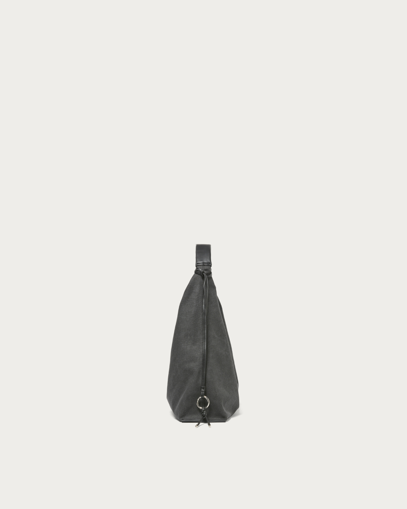 今季一押しのトレンド感溢れるバッグ。素材はウォッシュ感のあるキャンバス素材を使い、軽やかに仕上げました。また、オンオフ共に活躍するサイズで、荷物を入れた際にも肩に優しい太めのハンドルと用途に合わせて使用できる取り外し可能なリングチャームもポイント。