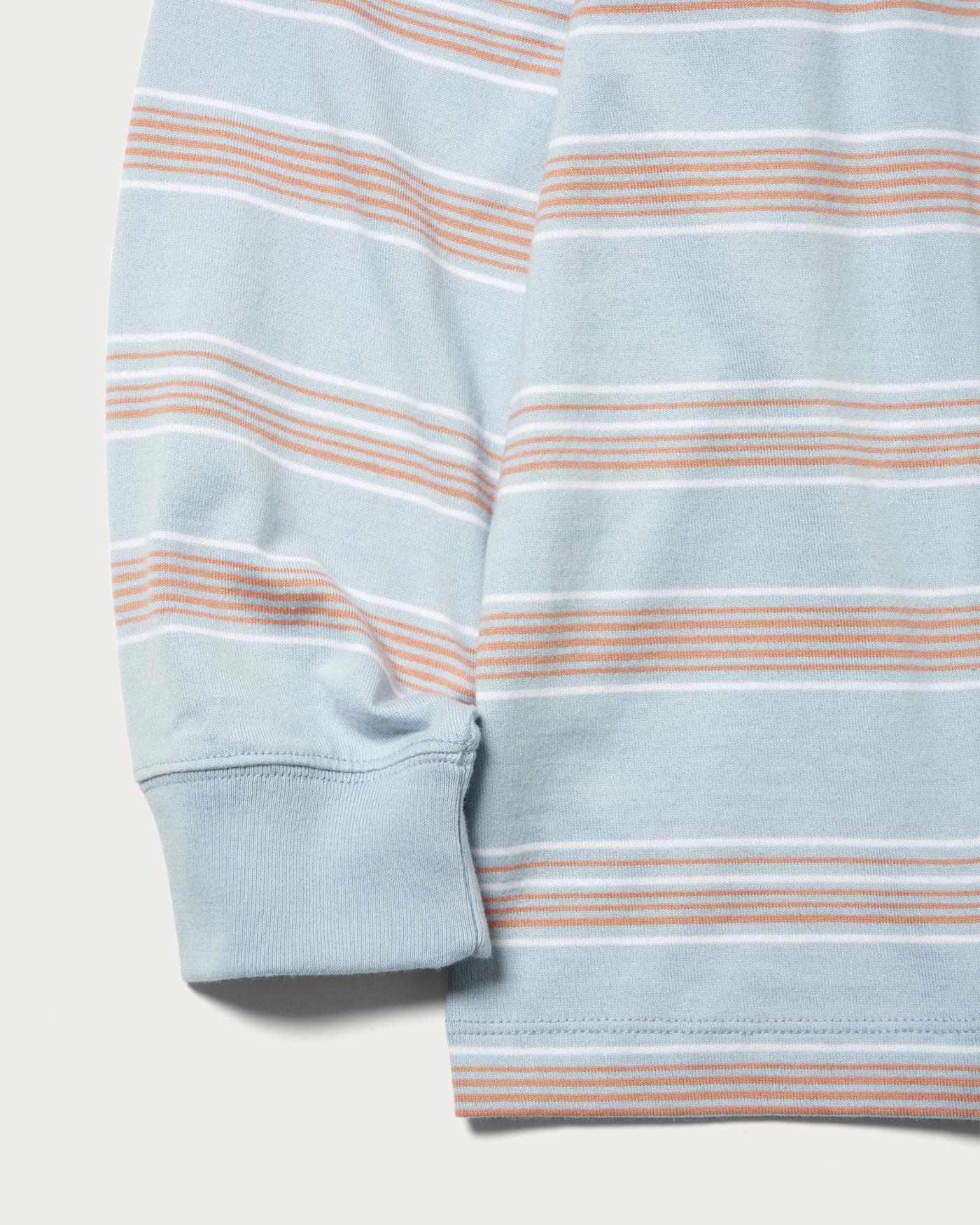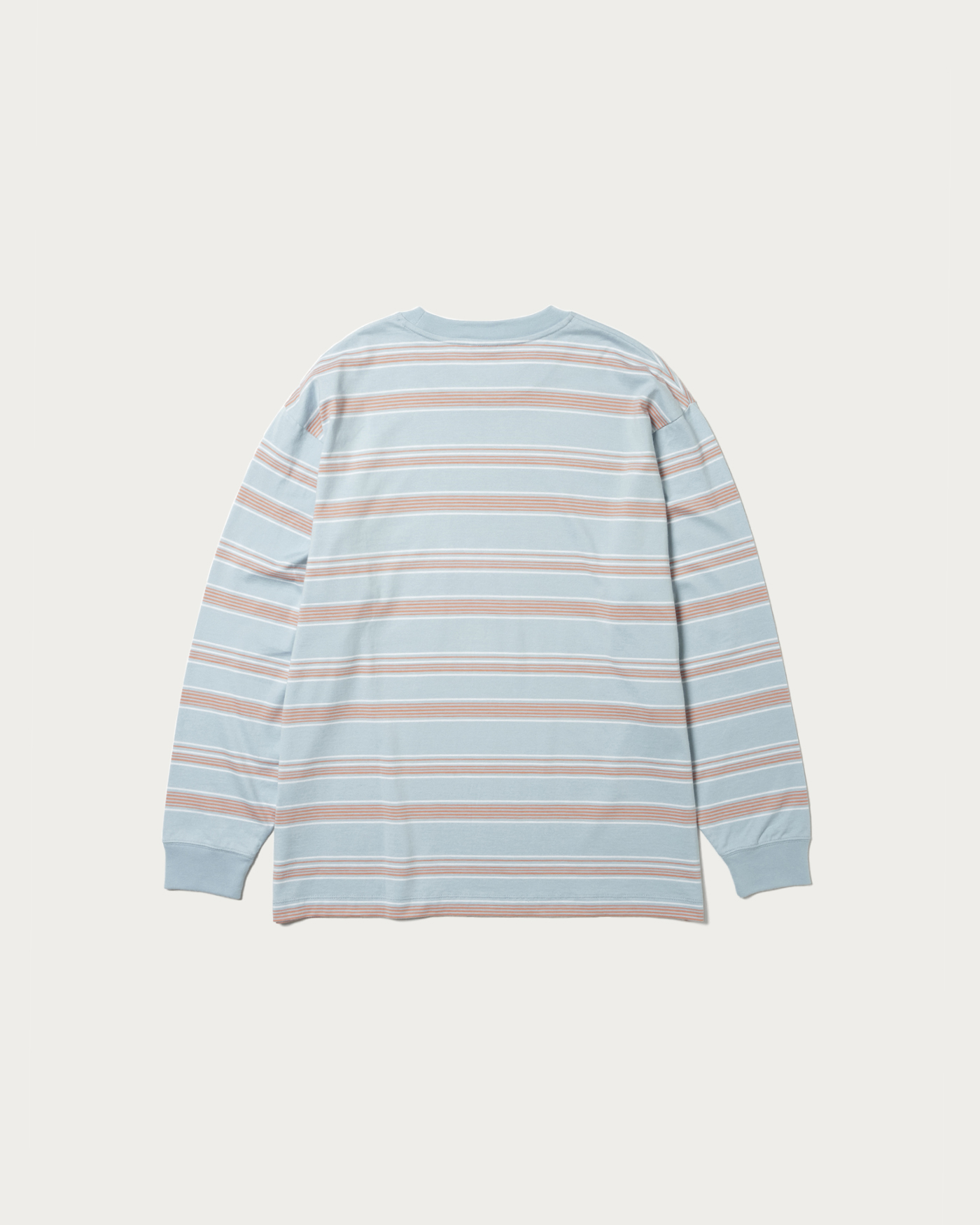 オーガニックコットンを使用したボーダーTシャツ。生地感と風合いの良い天竺ボディを使用。ムードのあるボーダー柄が装いに特別な雰囲気を持たらせてくれます。ほど良くゆとりのあるシルエットのため、一枚着としてもおすすめです。左胸に配したショップロゴの刺繍もワンポイントに。ユニセックスで着用いただけて、一枚着からインナー使いまで幅広く活躍するアイテムです。