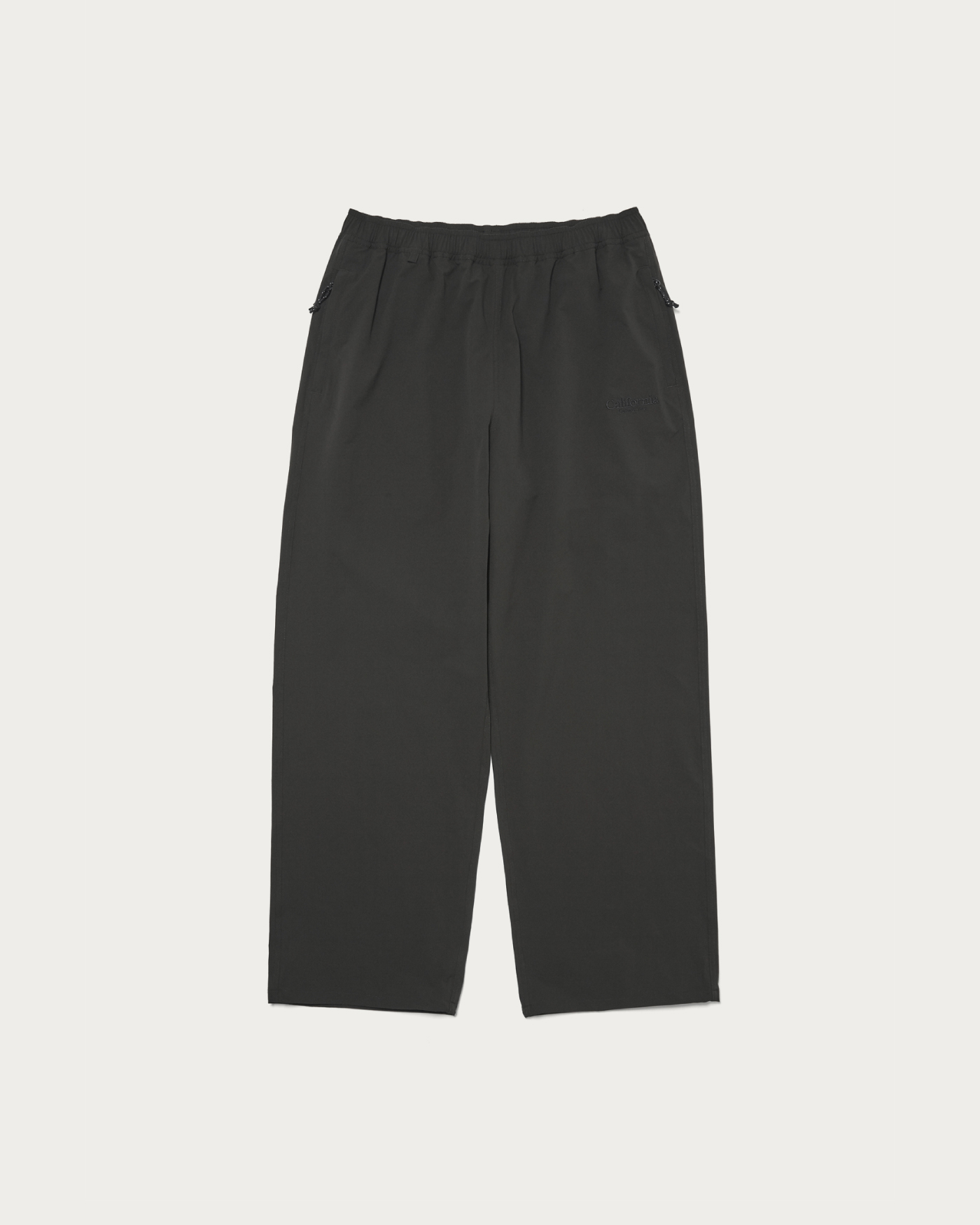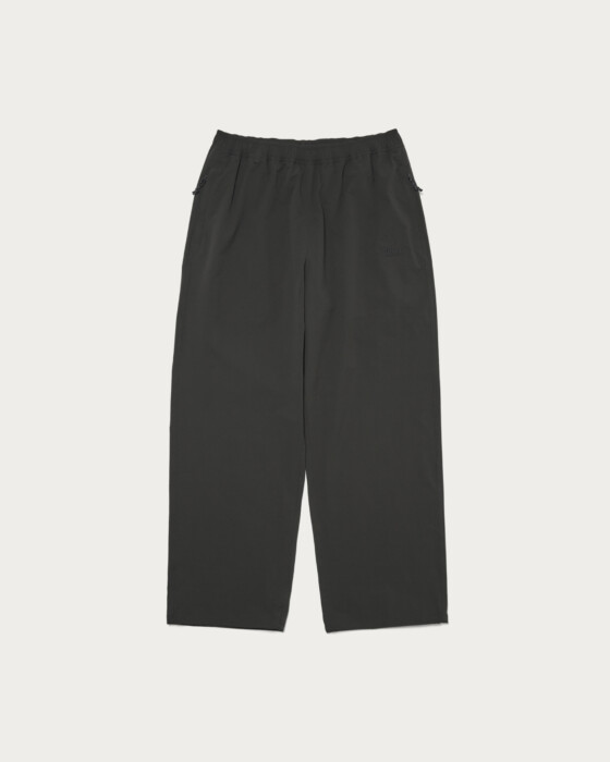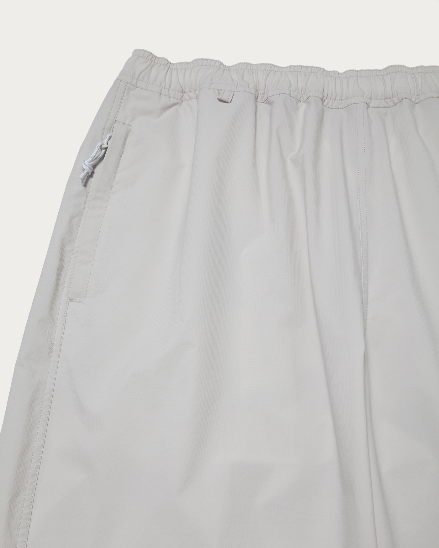 「PERTEX UNLIMITED」のリップストップ素材を使用したフィールドパンツ。ヨコ方向にストレッチ性があるので着心地も良くコンフォート感のある素材です。撥水性もありタウンユースからアクティブシーンにも使えます。裾のゴムストリングでシルエットを変えてアレンジも楽しめ、左ポケット位置に配したショップロゴの刺繍もワンポイントに。ユニセックスで着用いただけるアイテムです。