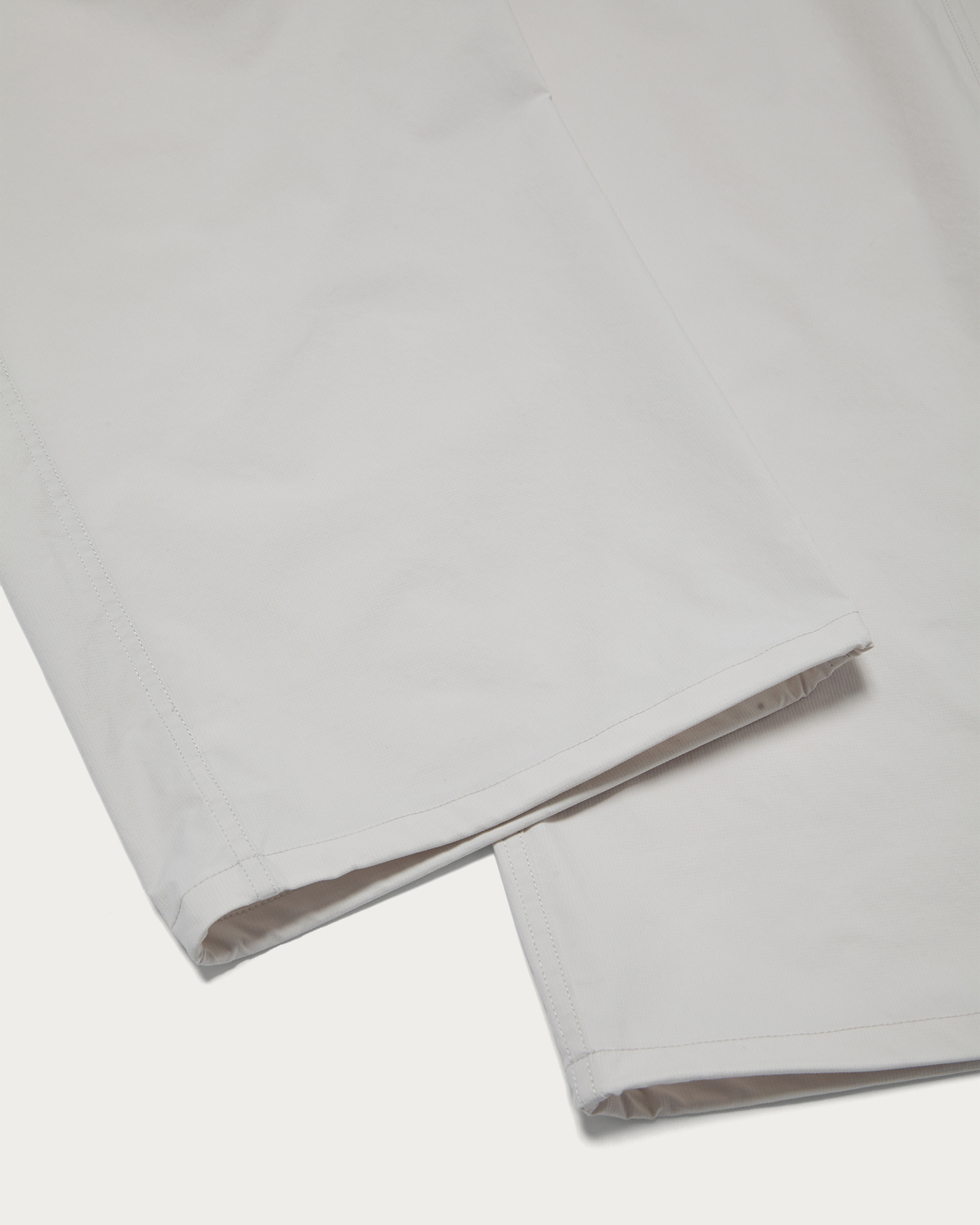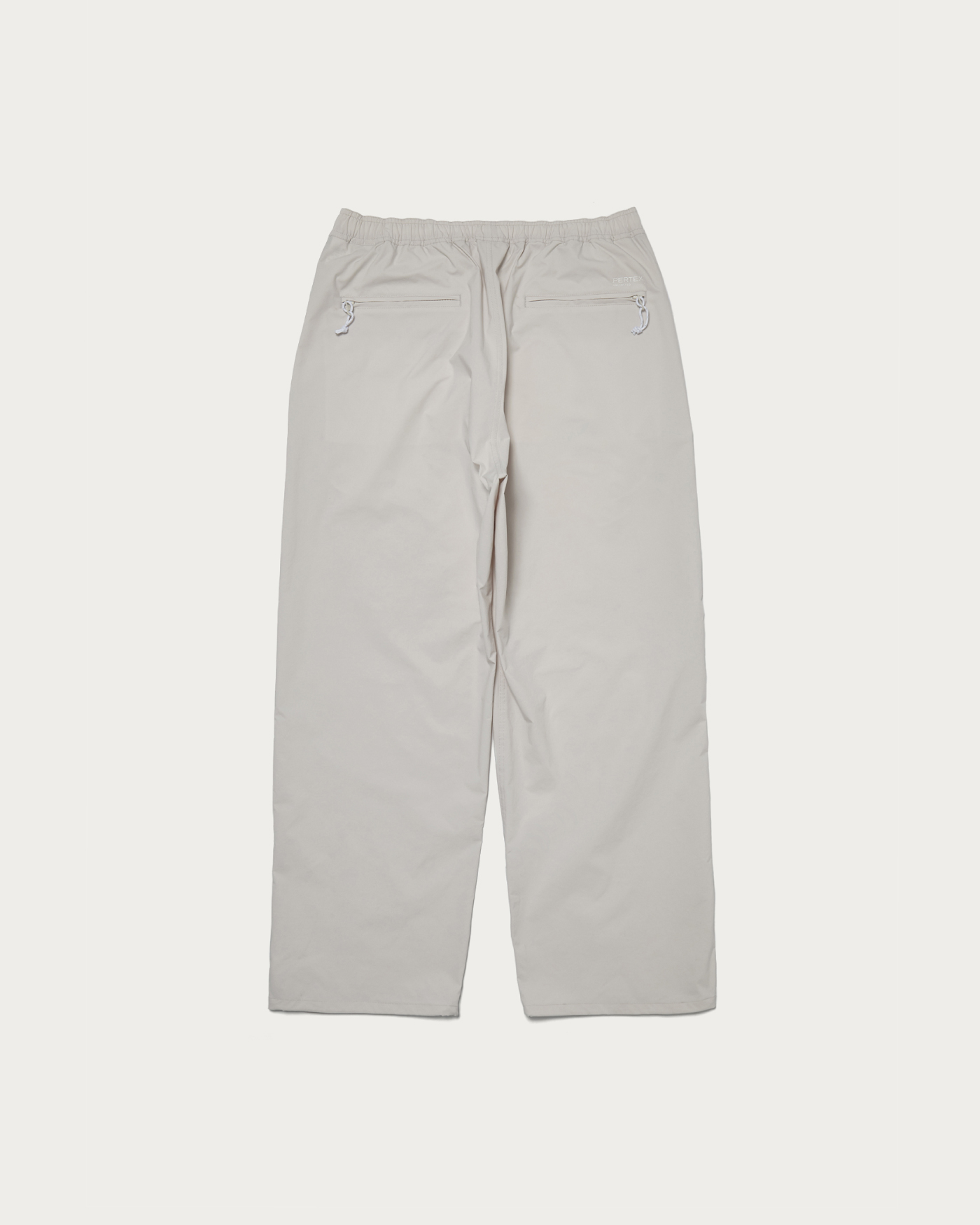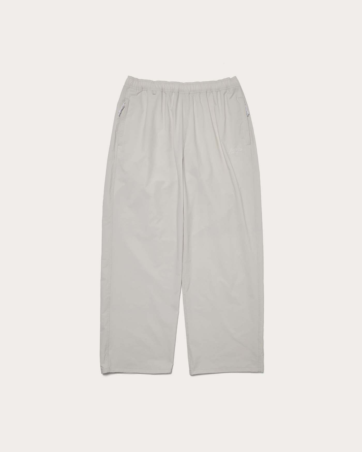 「PERTEX UNLIMITED」のリップストップ素材を使用したフィールドパンツ。ヨコ方向にストレッチ性があるので着心地も良くコンフォート感のある素材です。撥水性もありタウンユースからアクティブシーンにも使えます。裾のゴムストリングでシルエットを変えてアレンジも楽しめ、左ポケット位置に配したショップロゴの刺繍もワンポイントに。ユニセックスで着用いただけるアイテムです。