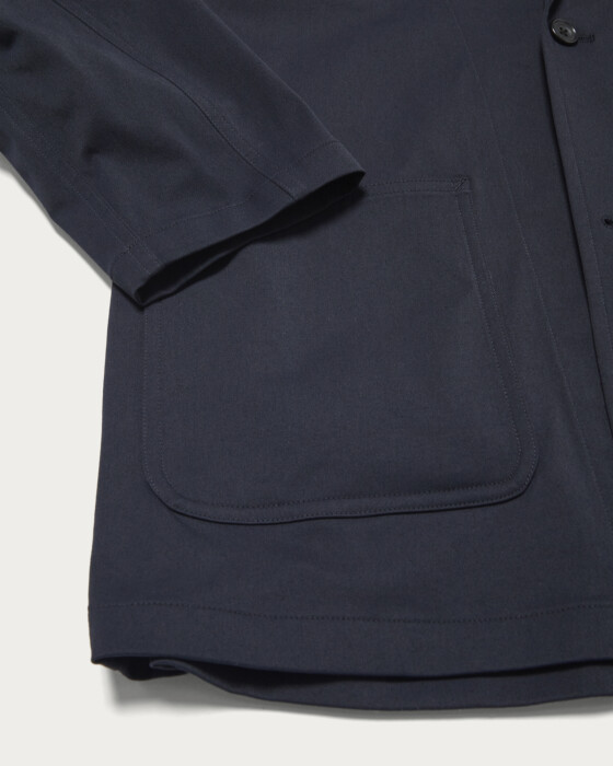 リラックスしたシルエットが特徴のカジュアルジャケット。ダブルステッチなどのディテールが絶妙なカジュアル感を引き立てます。纏うだけで大人カジュアルなこなれた装いになる一着です。コーデュラナイロンとポリウレタン混のツイル素材を使用しており、着心地も良くコンフォートな着用感があります。 着回しやすく様々なスタイルにも活躍してくれるアイテムです。