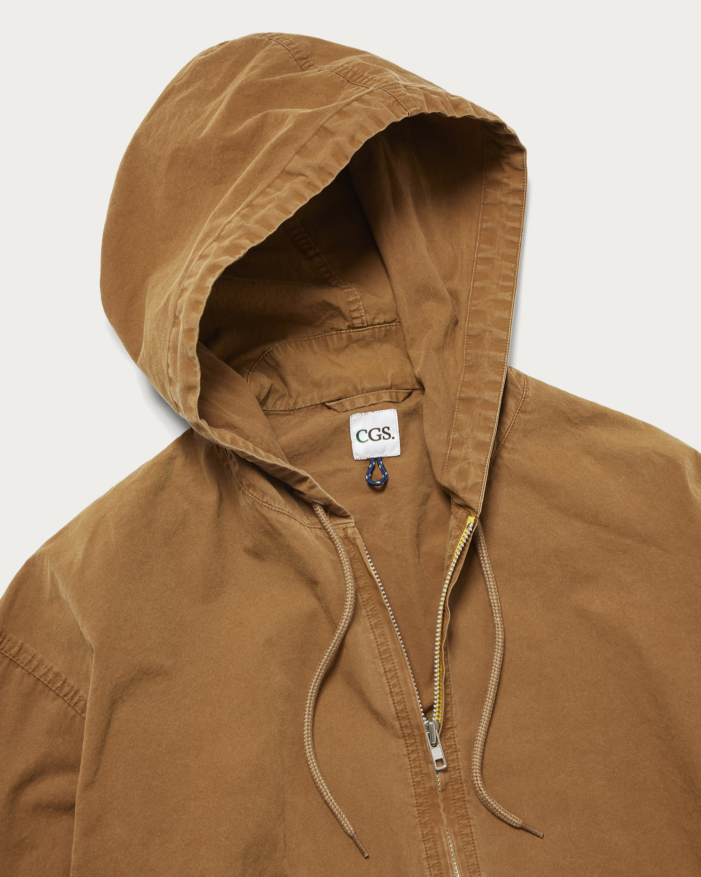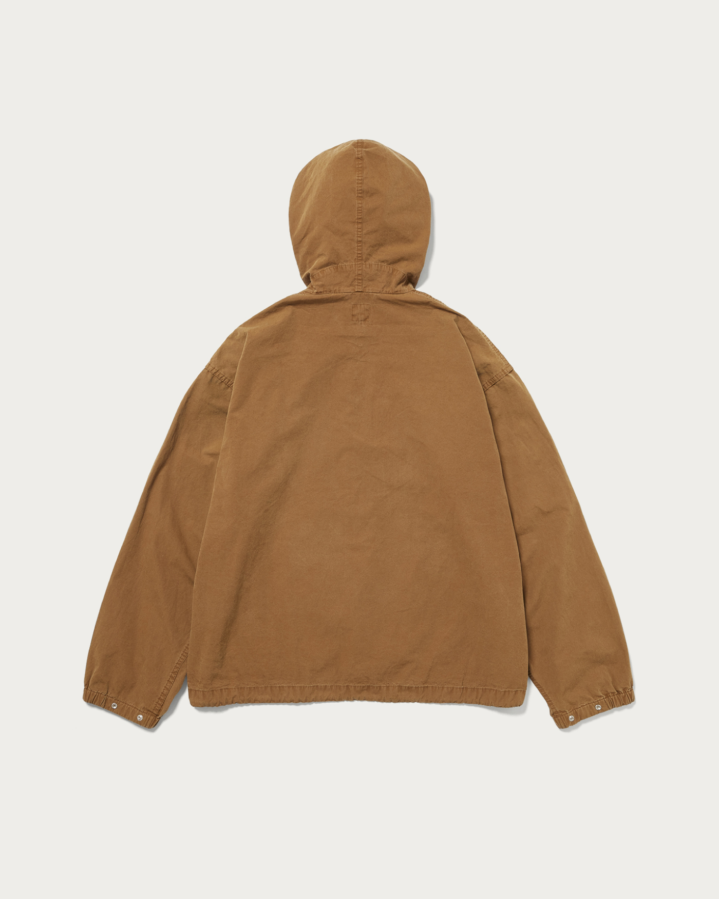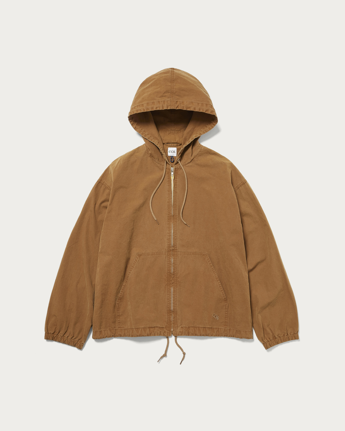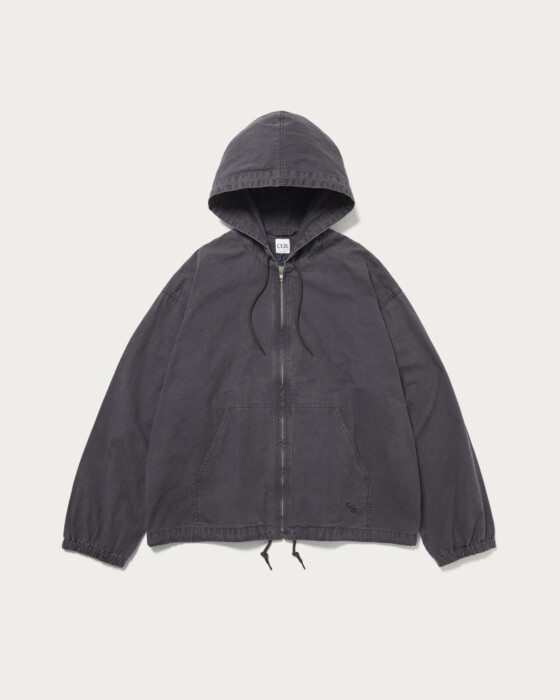高密度コットンポプリン素材を使用したジップパーカー。洗い加工を施すことで、ヴィンテージのようなフェード感のある雰囲気に仕上げています。ハリがありながら、厚すぎず、薄すぎずの程良い生地感です。ゆったりとしたシルエットですが、着丈を調整しスッキリとしたバランスに。裾のドローコードを絞ってシルエットのアレンジが可能です。