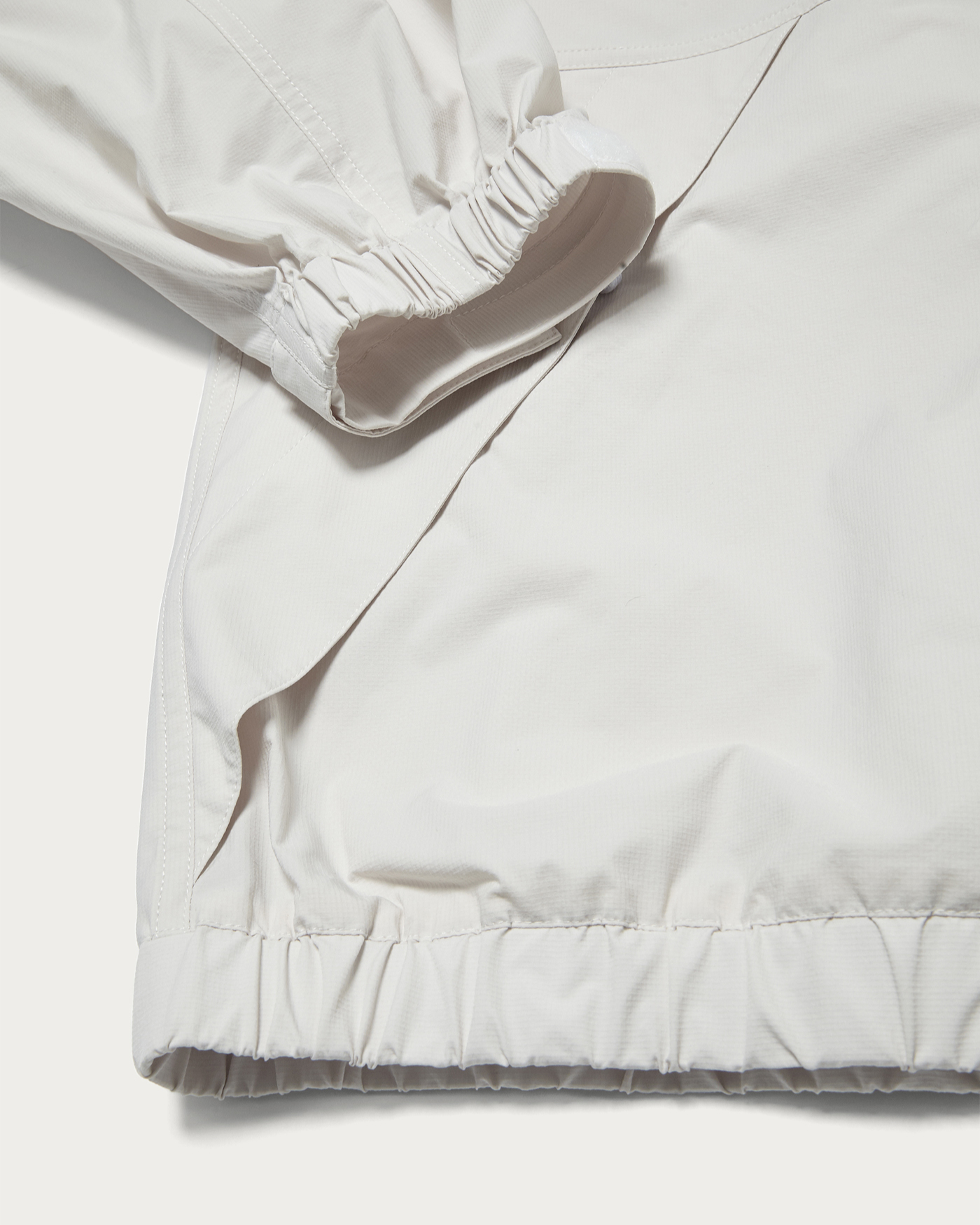 「PERTEX UNLIMITED」のリップストップ素材を使用したオーバーサイズシルエットのフィールドブルゾン。ヨコ方向にストレッチ性があり着心地も良くコンフォート感のある素材です。撥水性もありタウンユースからアクティブシーンにも使えます。衿にフードが収納されており2WAYで着用いただけ、ポケットファスナーにはリフレクターを編み込んだコードを使用しアクセントに。ユニセックスで着用いただけるアイテムです。