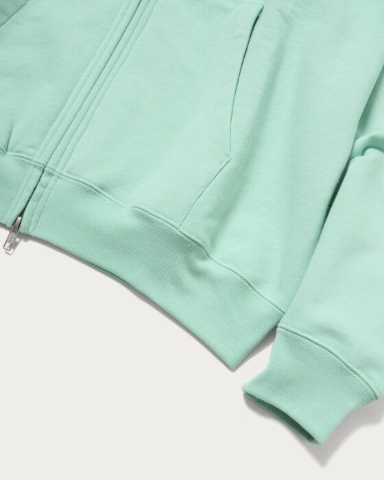 オーガニックコットンのスウェットフーディ。定番スウェットとは違う小奇麗な表情の程よい厚みのある裏毛。裏面のパイルは起毛してないので通年着用いただけます。やや短めの着丈でファッション感とリラックス感を両立させたシルエット。左胸のショップロゴプリントを配したデザインもポイントです。一枚着から羽織りまでご愛用いただける、カジュアルスタイルに万能な一着です。ユニセックスで着用いただけます。