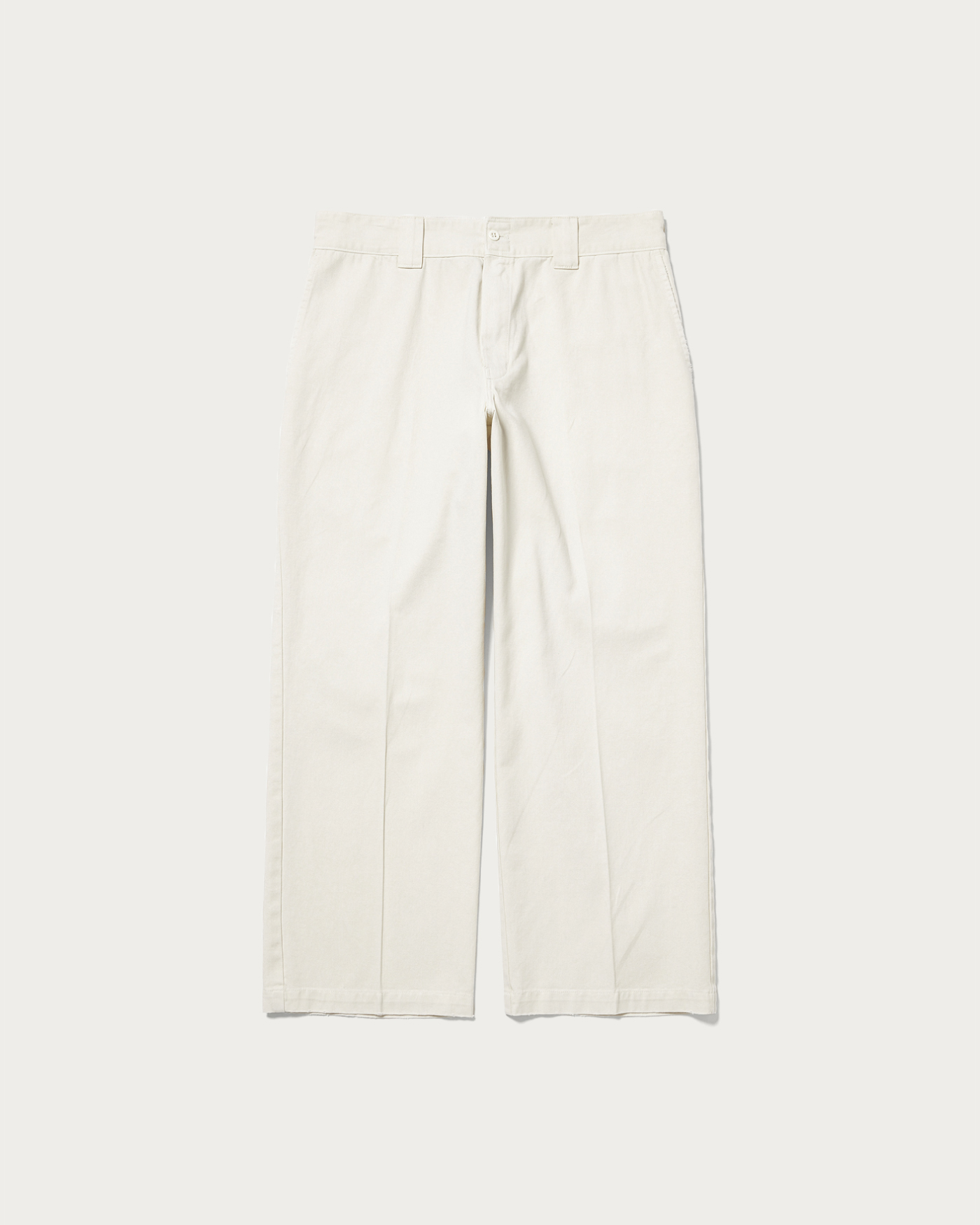 〈Dickies〉の「875」をベースにした、ゆったりしたストレートシルエットが特徴のチノパン。適度なダメージ加工と、色落ち加工を施し、古き良き時代のチノパンをイメージした商品に仕上げました。後ろポケット部分には〈CGS.〉のロゴを刺繍しました。26SSの新色となります。