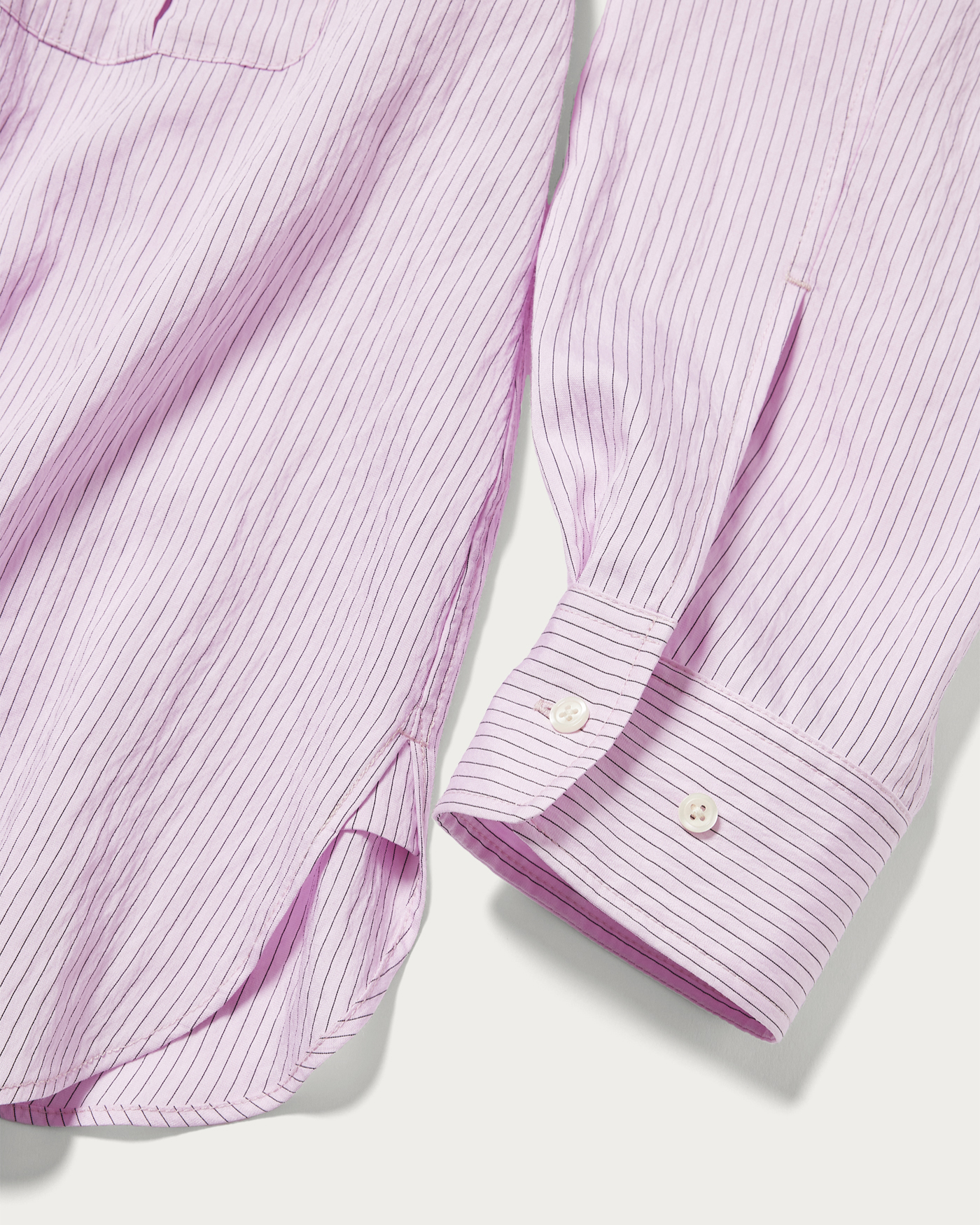 やや透け感ある素材にCITENオリジナルのストライプ柄をのせたシャツ。滑らかな肌触りとツヤのある素材感はカジュアルにもキレイ目にも着こなせる一着。程よくゆるめのサイズ感でメンズライクな雰囲気は残しつつ、袖にややボリュームを持たせることで女性らしさもプラス。リラクシングな印象ながら、きちんと見える万能シャツです。