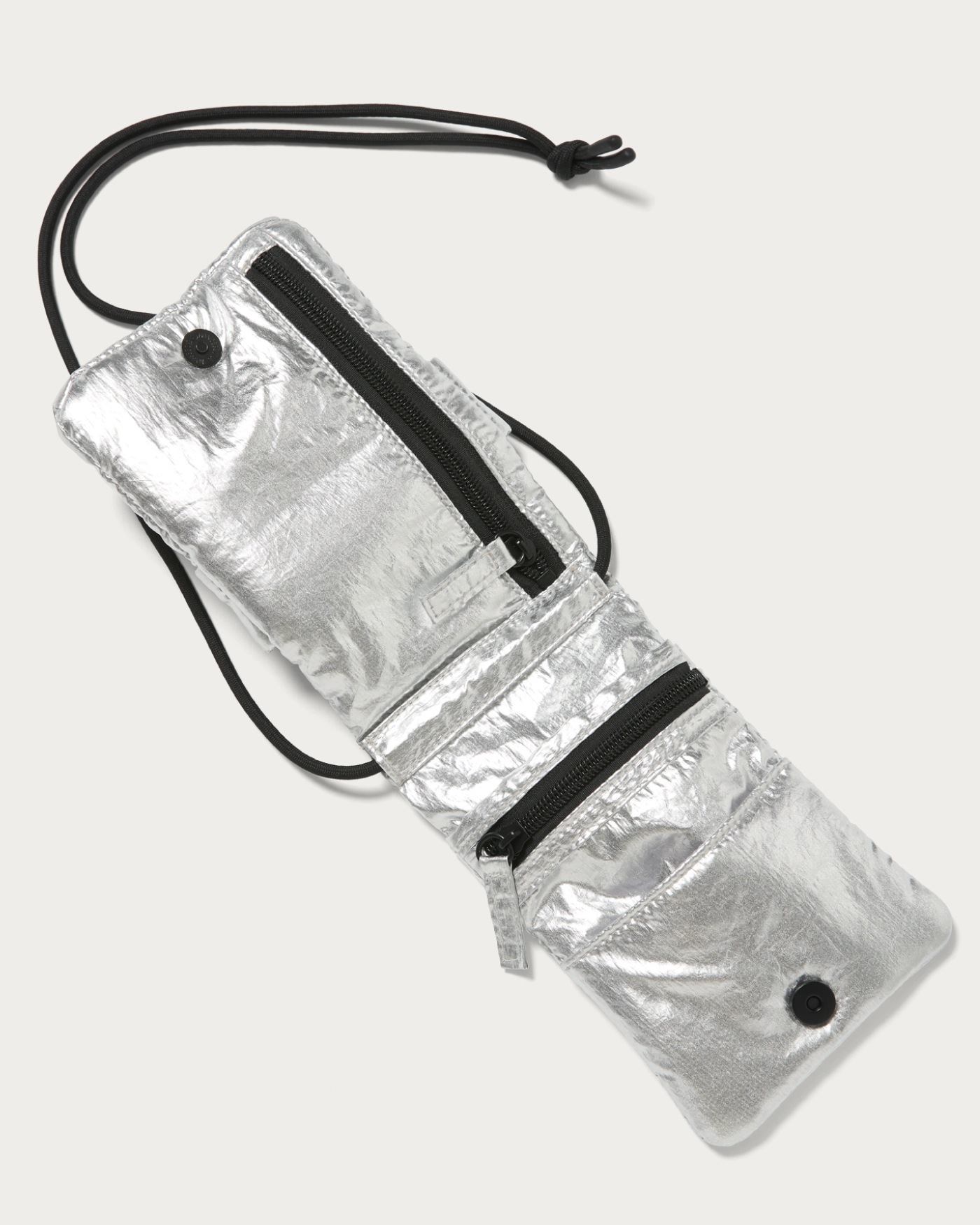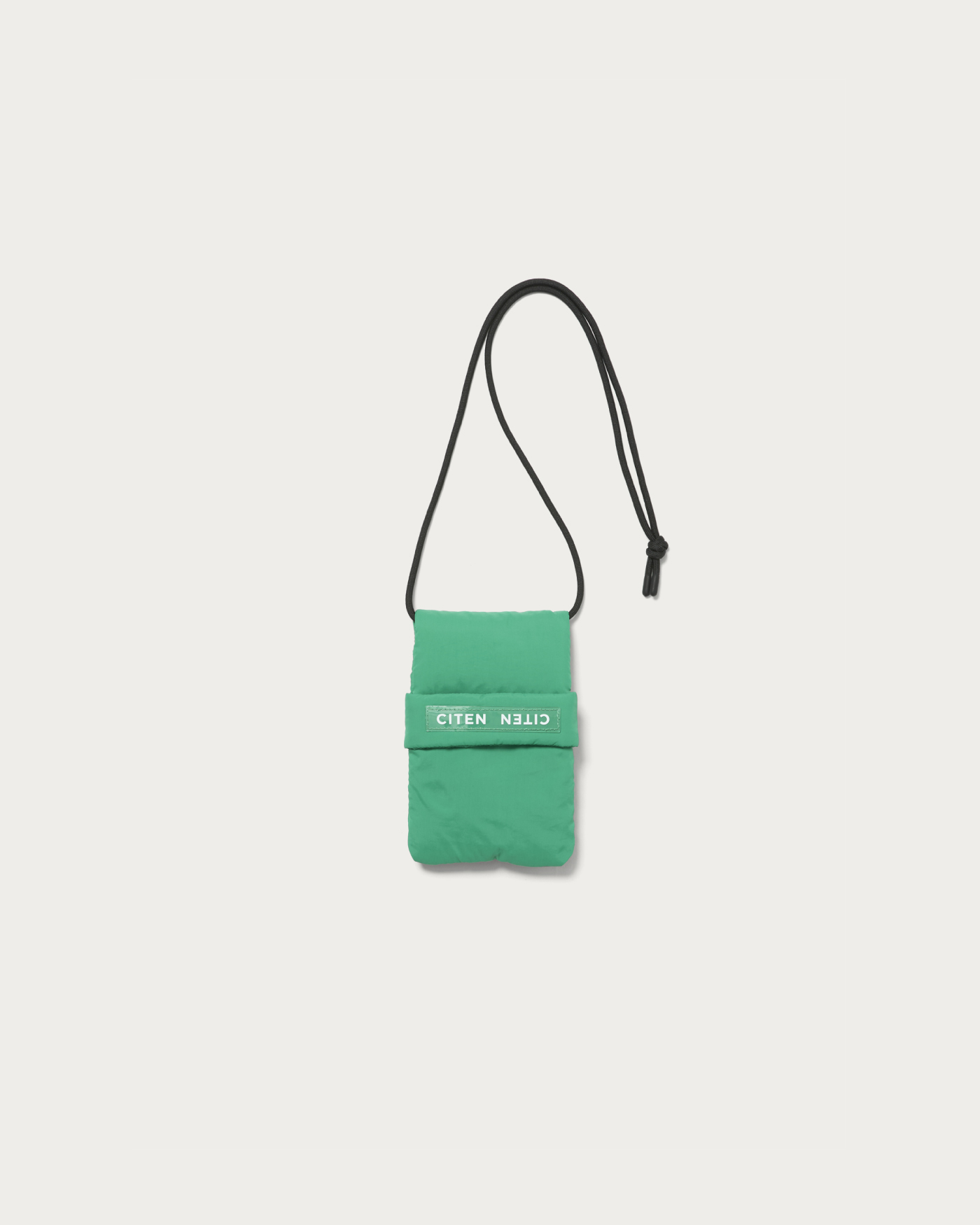 クリアロゴのパファーストラップが目をひくモバイルショルダーバッグ。ストラップ部分はジップ付きでさっと取り出したい小物の収納にぴったり。デイリー使いはもちろん、旅行の時にもとても便利にご使用いただけるおすすめアイテムです。