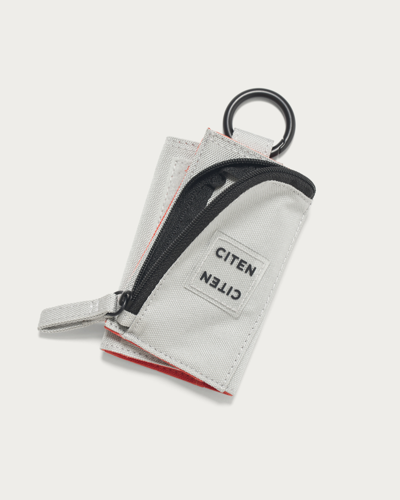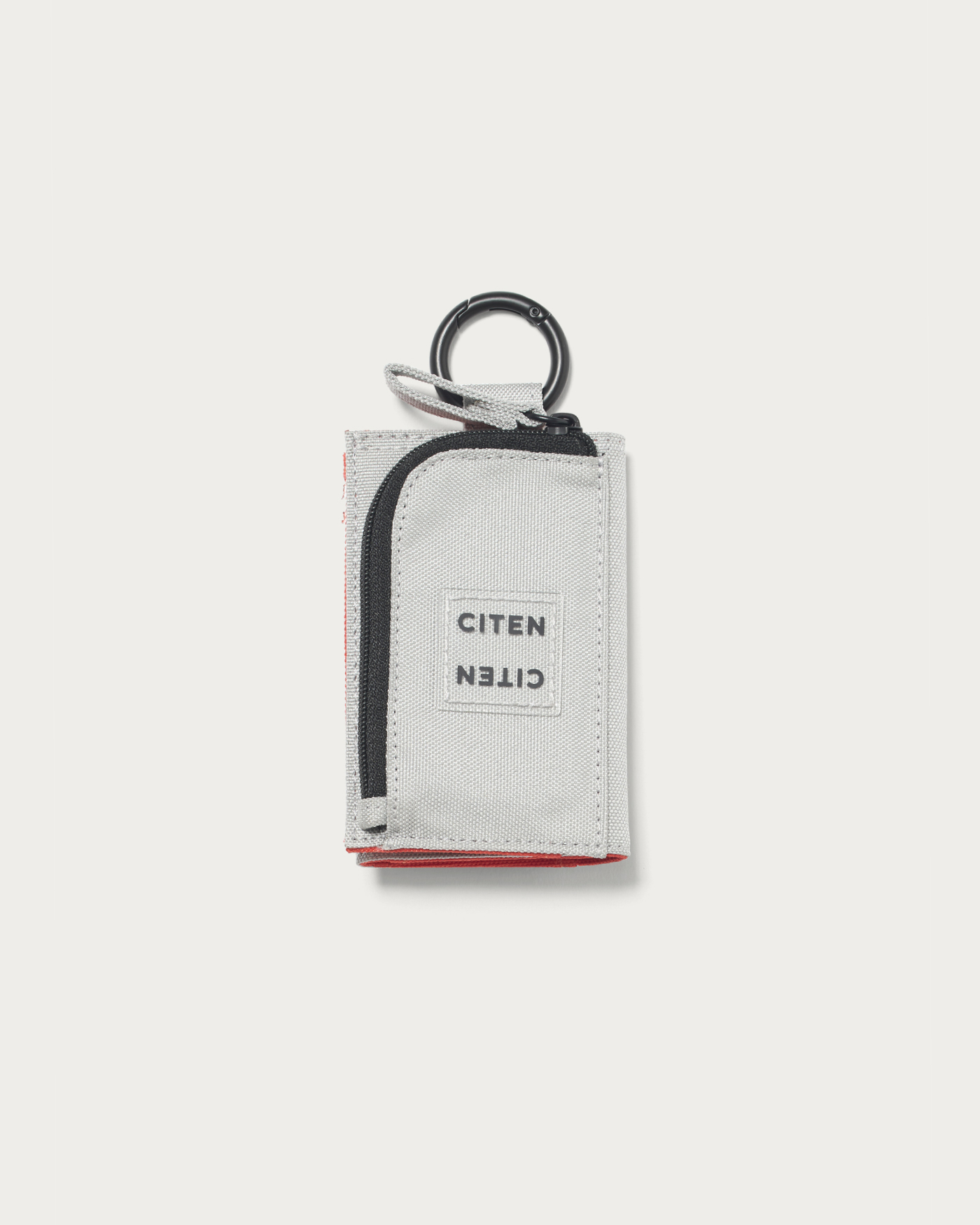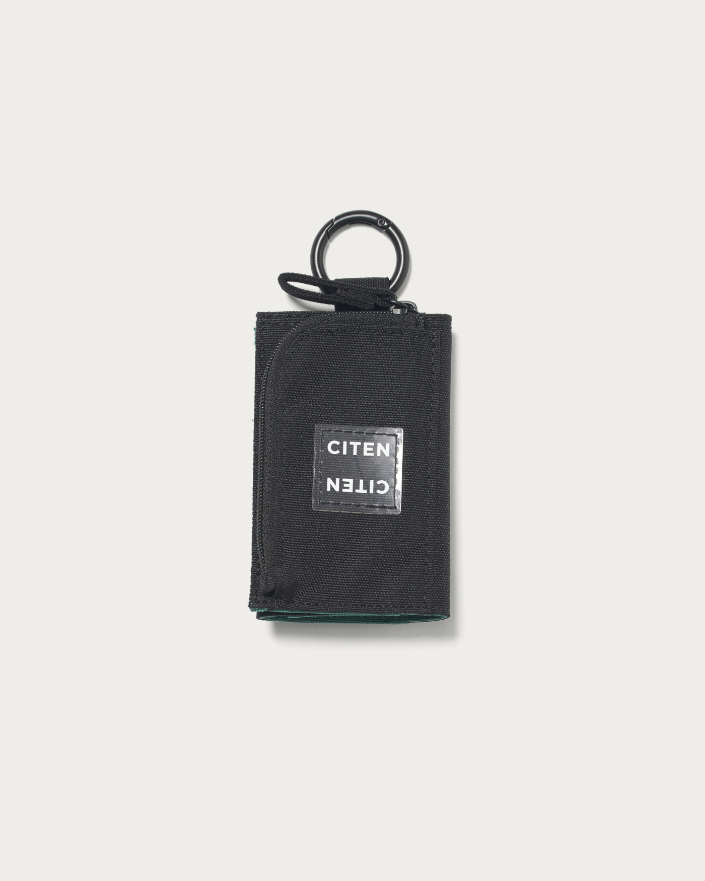中綿をいれてパフっとさせたファスナー付きのお財布です。CITENのクリアロゴと大きめのファスナーがデザインのアクセントです。背面にオープンポケットが1つ、中を開けるとファスナー付きのコインポケットと、カードポケットが付いており、機能的なウォレットに仕上げました。軽量なので、旅行など荷物を軽くしたいときにも便利です。