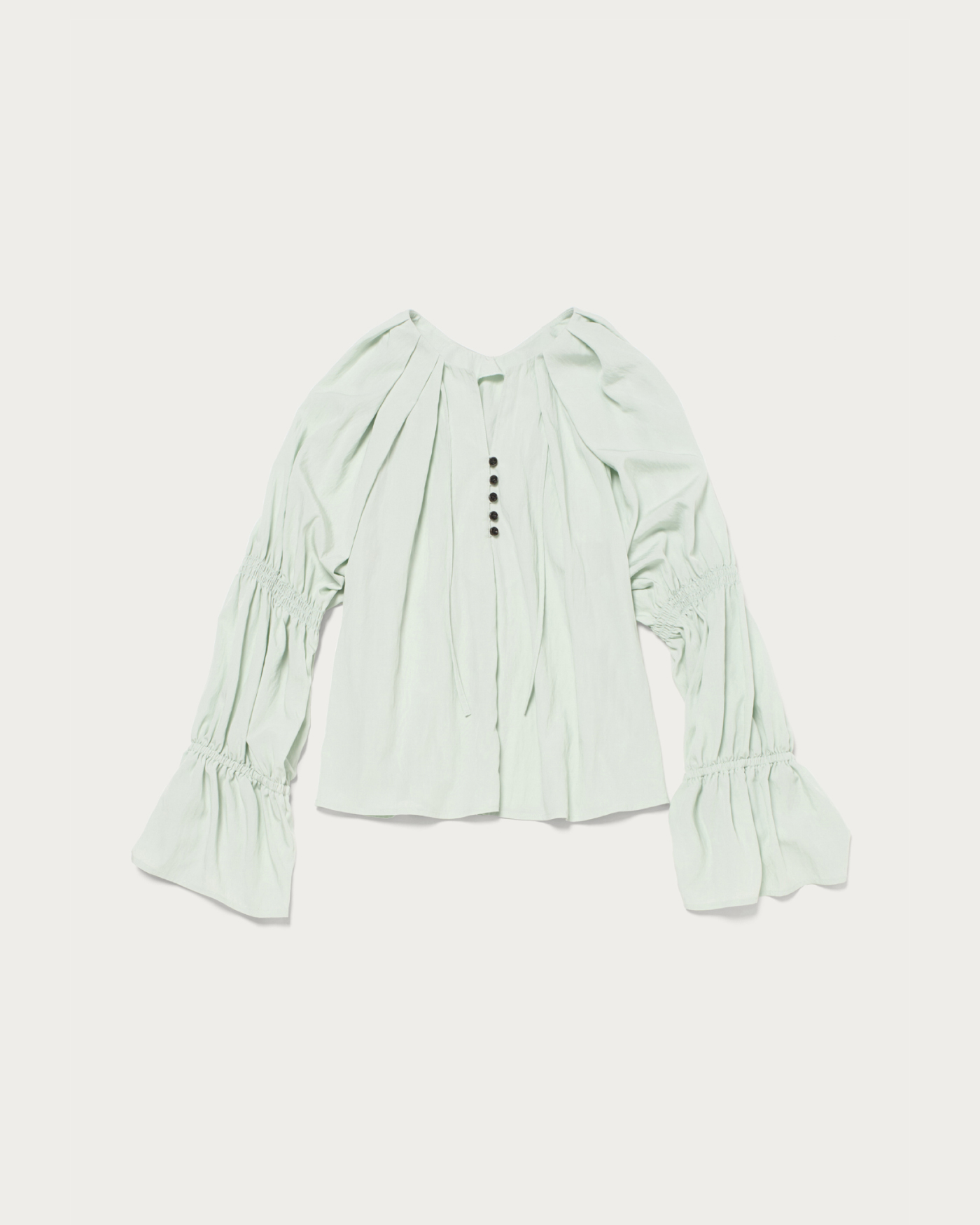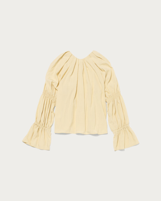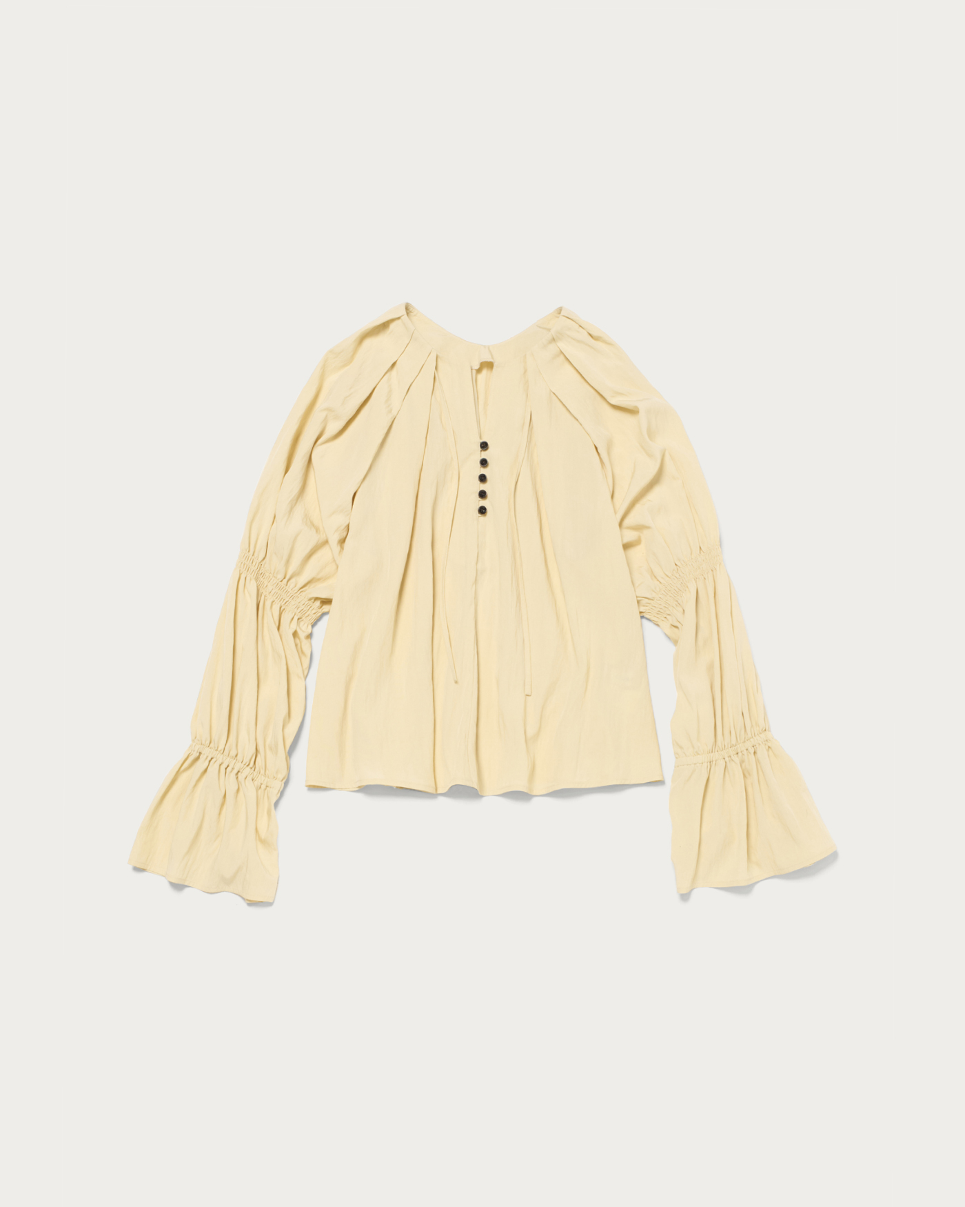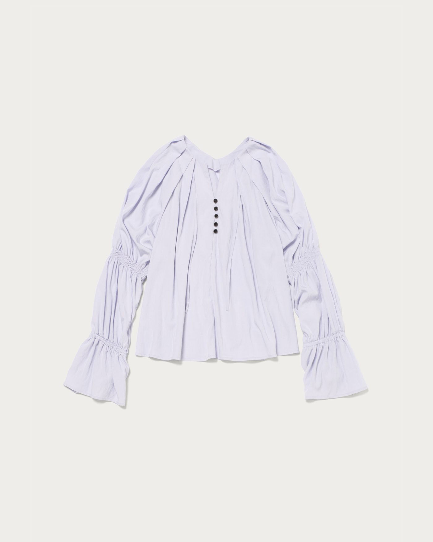 顔周りのタックが華やかな、オンオフ着まわせる春カラーブラウス。春らしいカラーが魅力のブラウスは、フロントボタンと袖のゴムギャザーデザインがポイント。肩からネックにかけてたっぷりタックをとった、立体的なフォルムが顔周りを華やかに演出。スキッパーとボタンの襟もとで、程よく抜け感のある印象に仕上げました。