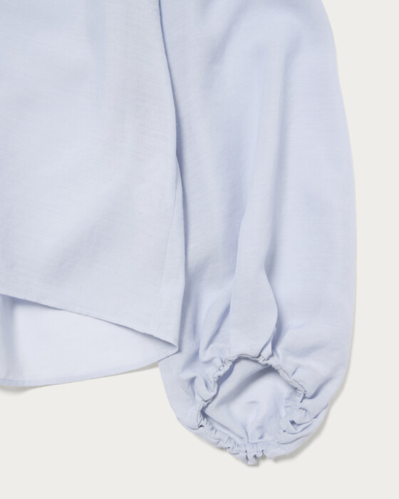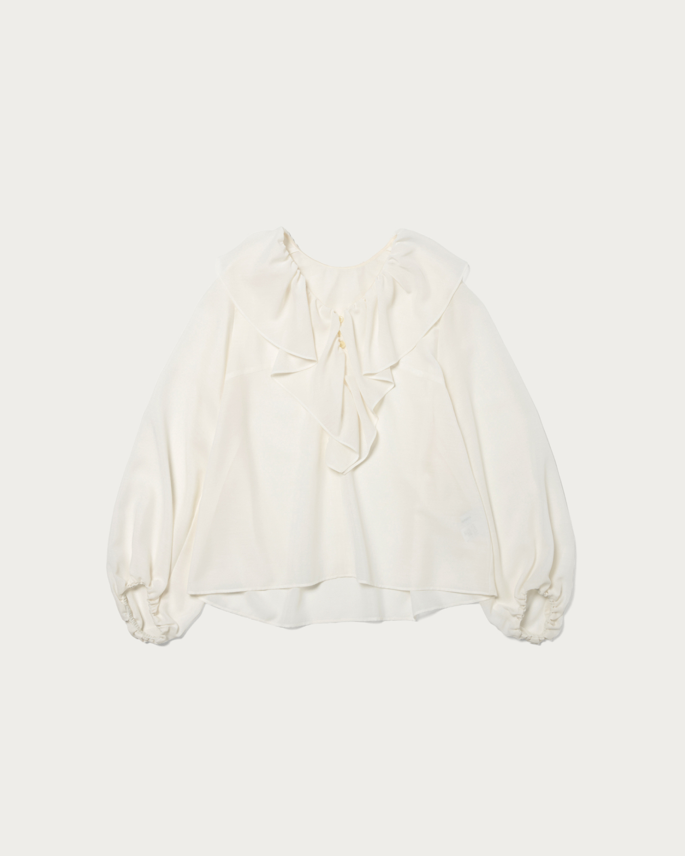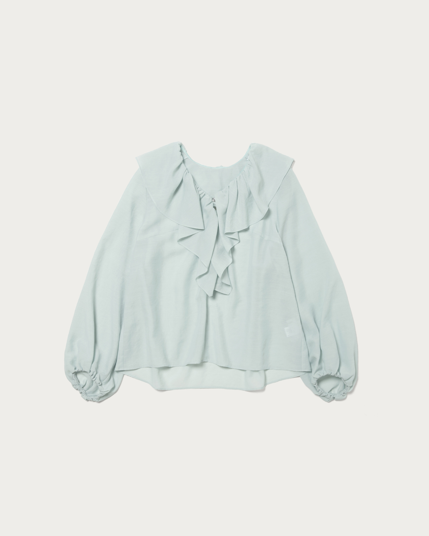 顔周り華やかなフロントフリルがポイントのブラウス。巾広のフリルを縦めに効かせることで、甘すぎない印象に仕上げています。袖口はゴムなのでパフっとボリュームを持たせた着こなしも可愛いです。ポリエステルなのでシワになりにくくイージーケアなのも嬉しいポイント。