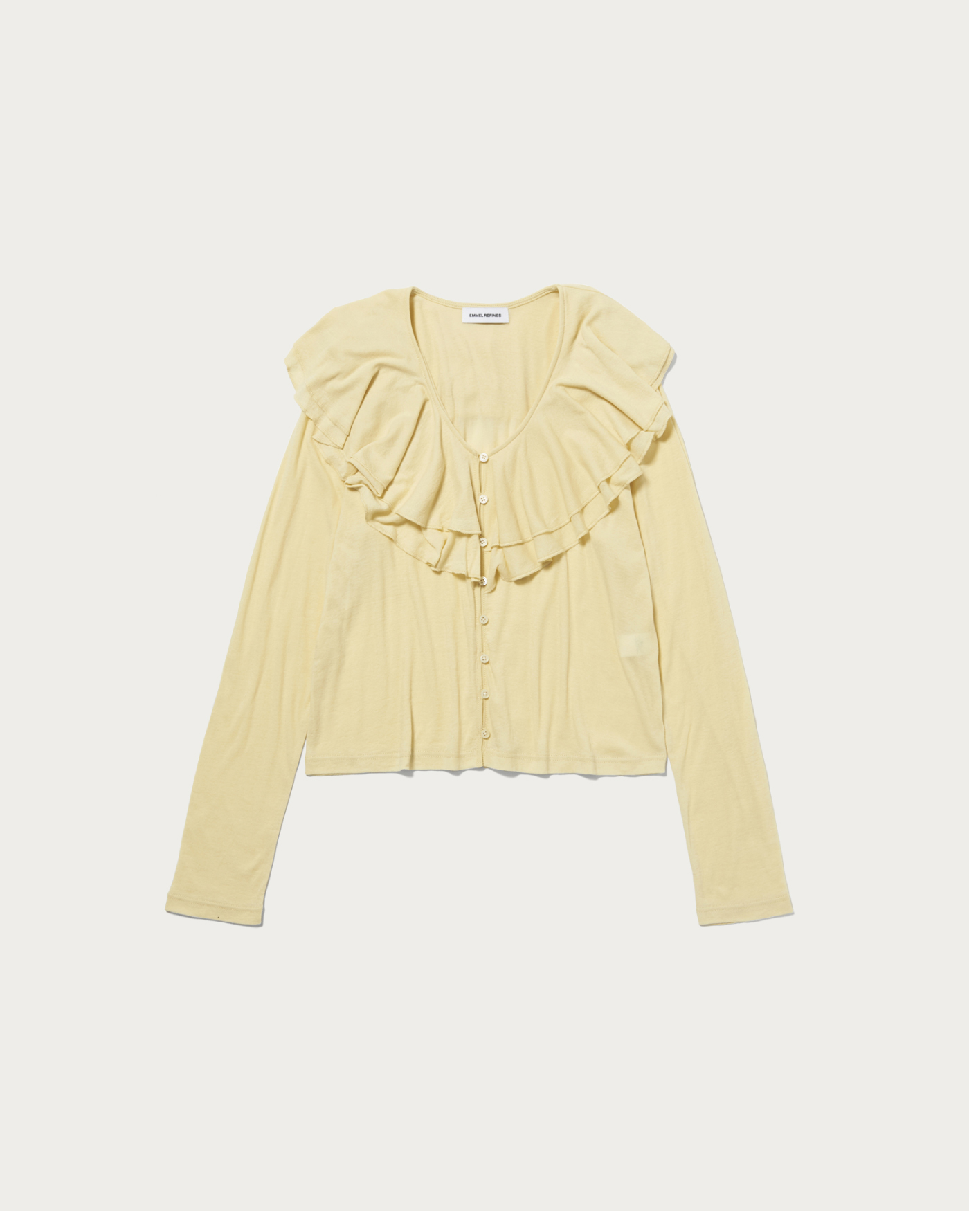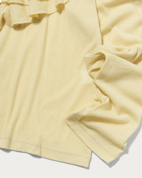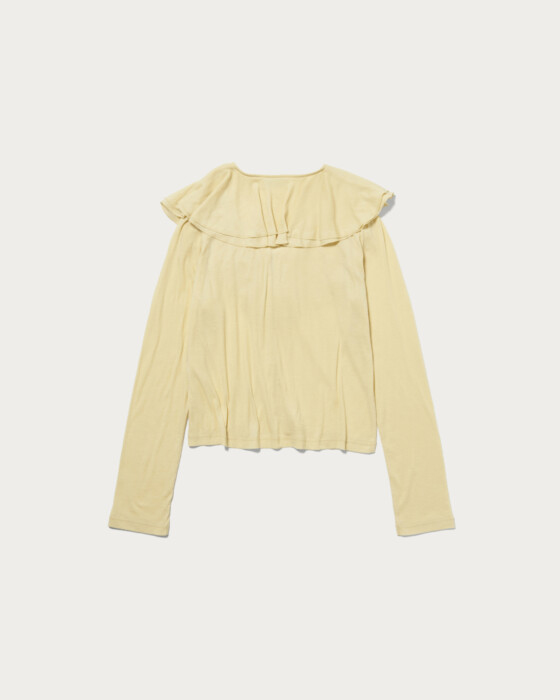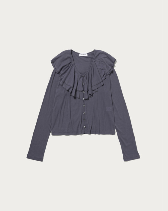 顔回りを華やかにしてくれるフリルと抜け感のある素材感が程よくヘルシーにしてくれるカーディガン。1枚着でも着られるデザインで、コンパクトなサイズがバランスもとりやすいです。強撚の糸を使用したフライスで、ちょうど良いフィット感と着心地の良いタッチ。EMオリジナルのカラー展開で春らしいフェミニンなイエローとカジュアルダウンできるチャコールをご用意しました。
