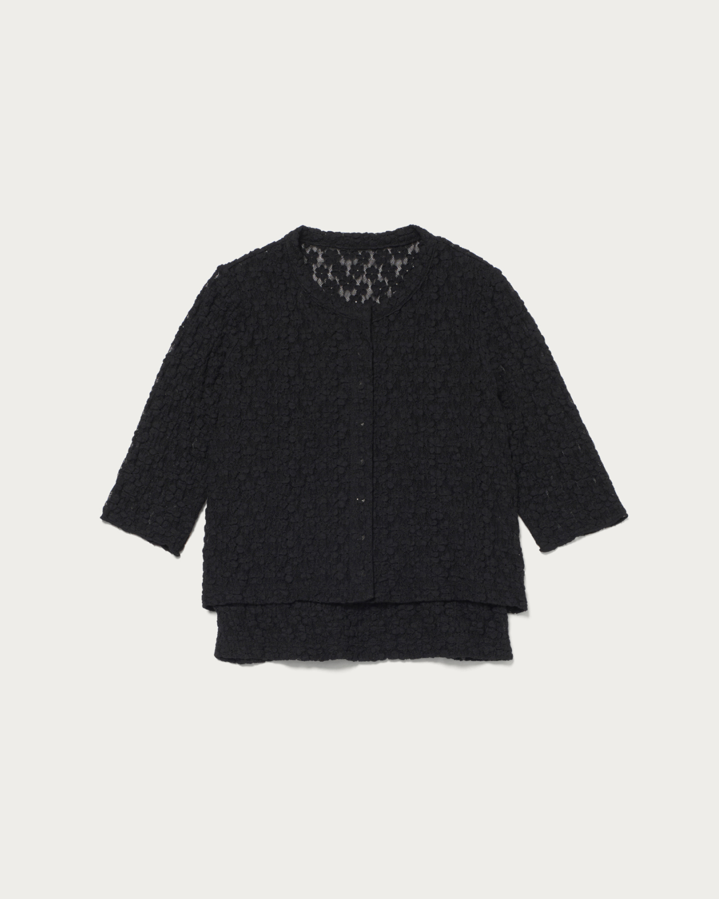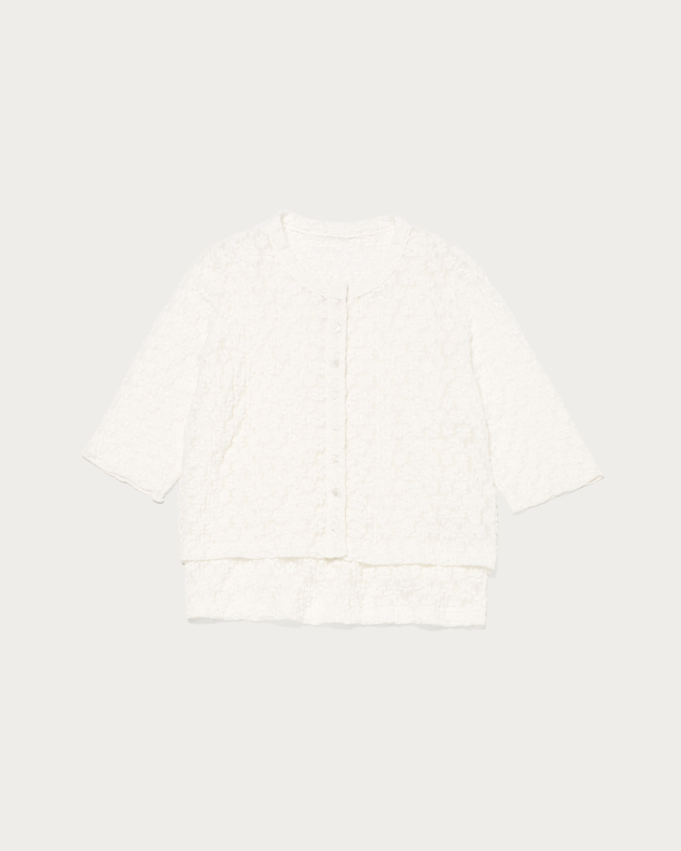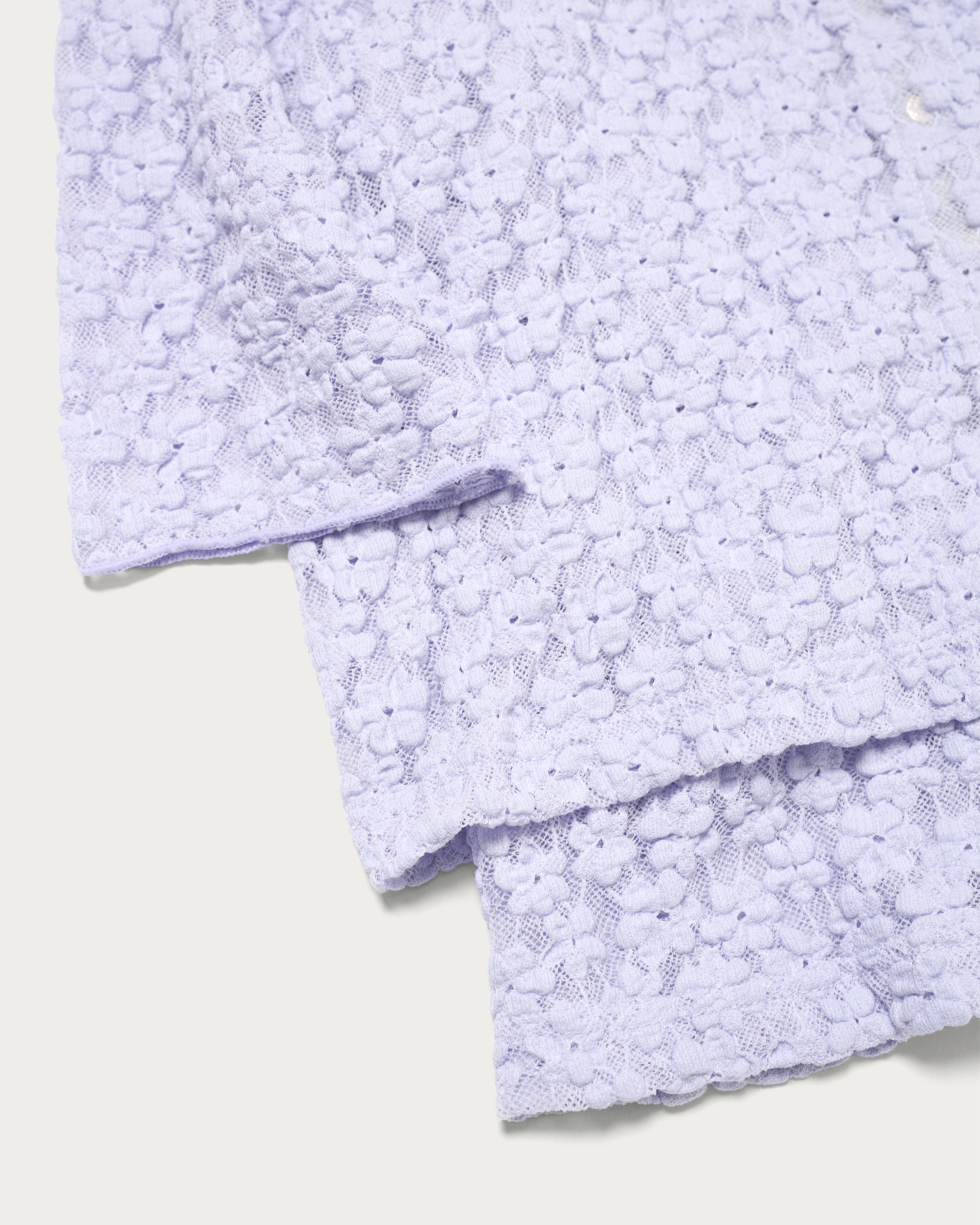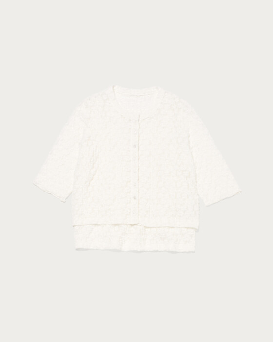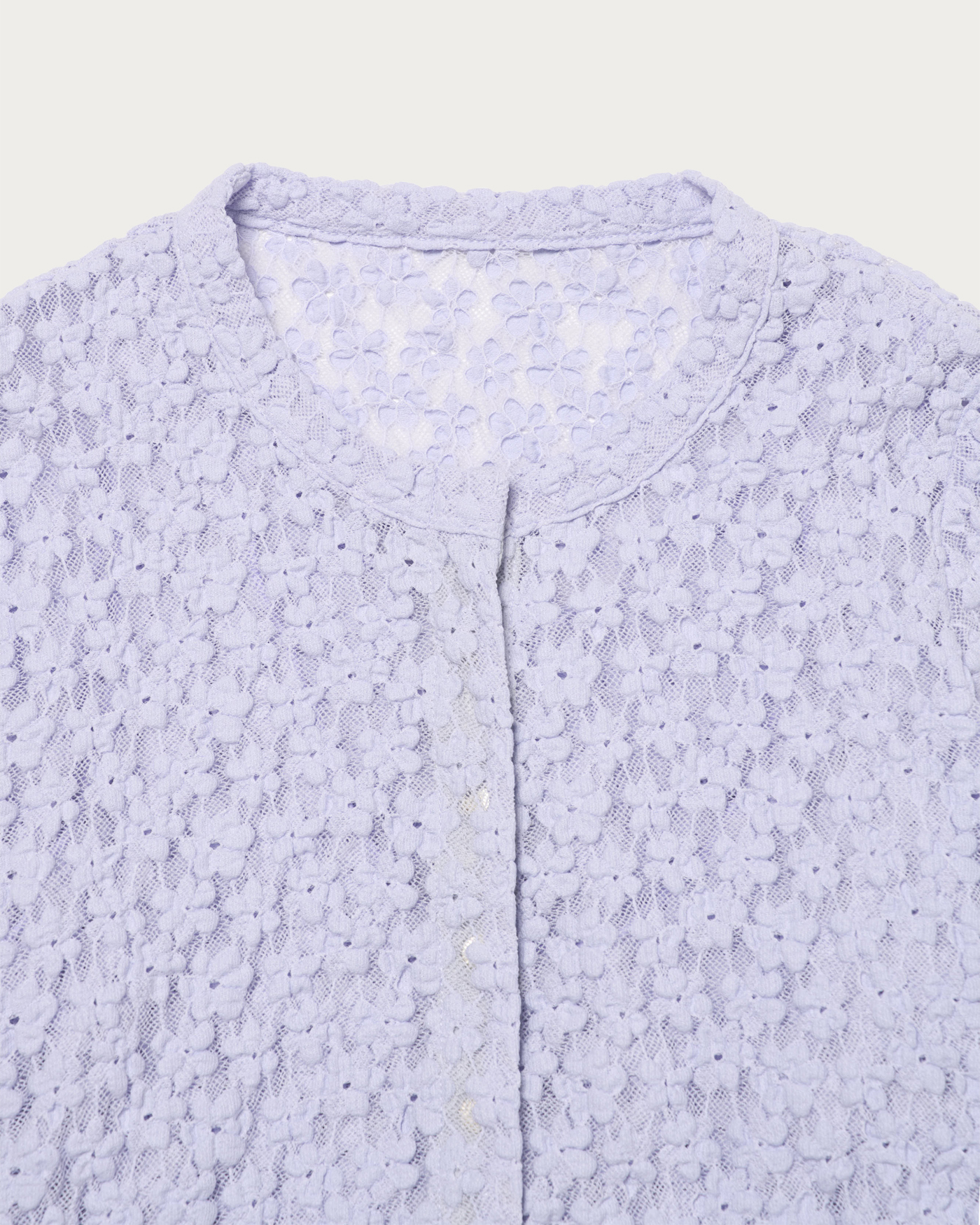 今年の気分のレース風のカットソー素材で作られたカーディガンとタンクトップのセット。コンパクトなサイズ感が今っぽいフェミニンなスタイリングにしてくれます。レース見えする表情感のあるカットソーで、フィットしたサイズ感でも着心地の良いアイテム。ライラックはEMオリジナルのカラーで春の気分を上げてくれます。