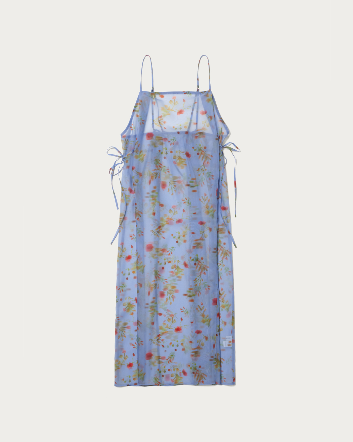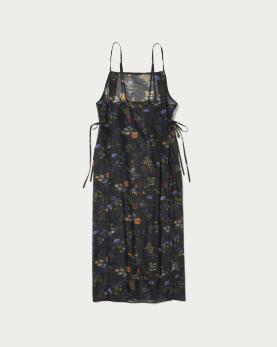 EMオリジナルプリントのキャミOP。あえてシアー素材に載せることで甘さを抑えてヘルシーに着こなせる印象に仕上げました。デザインもミニマルにそぎ落としたナローなシルエット。EMオリジナルのフラワープリントで、ぼかした小花モチーフが着やすいデザイン。