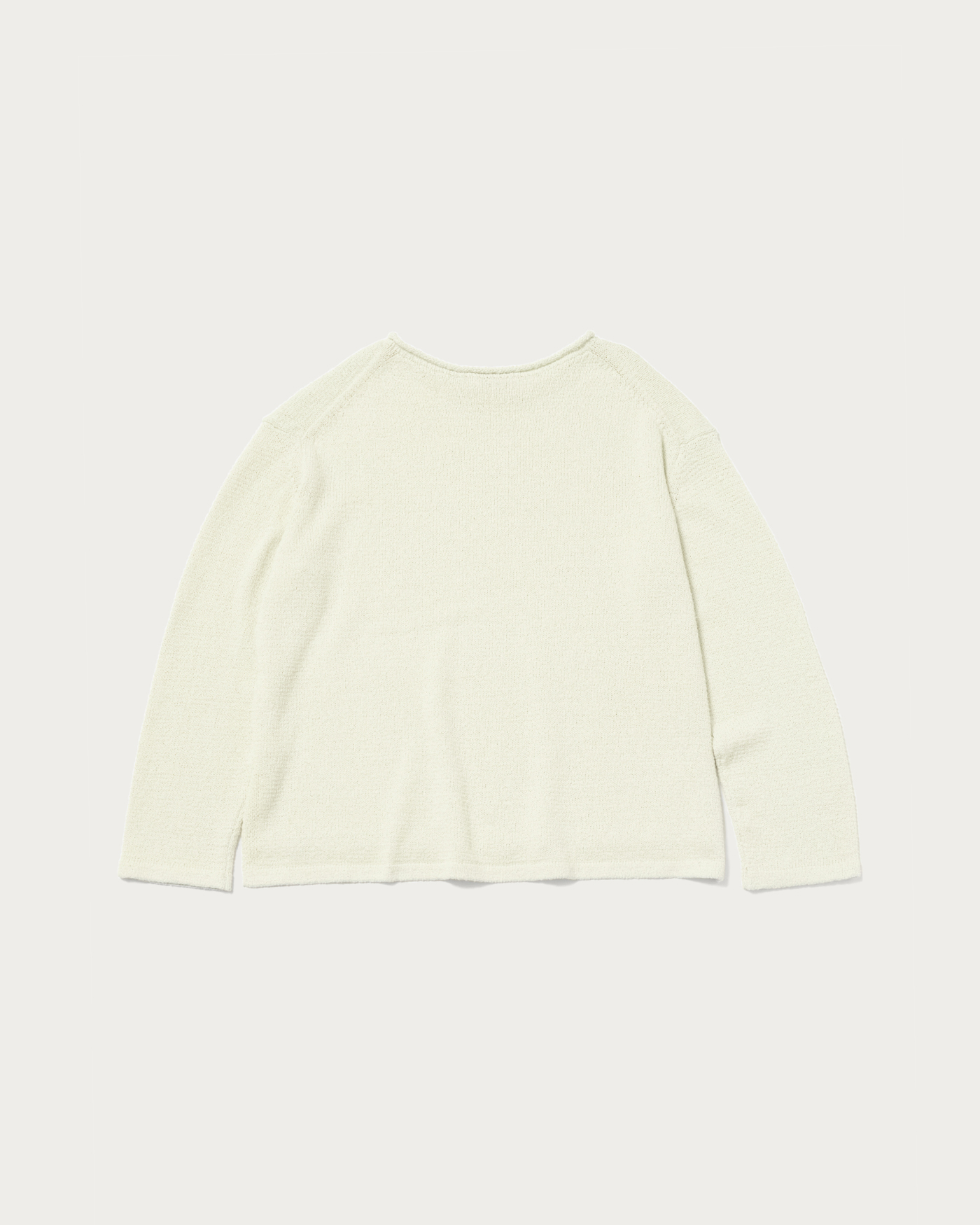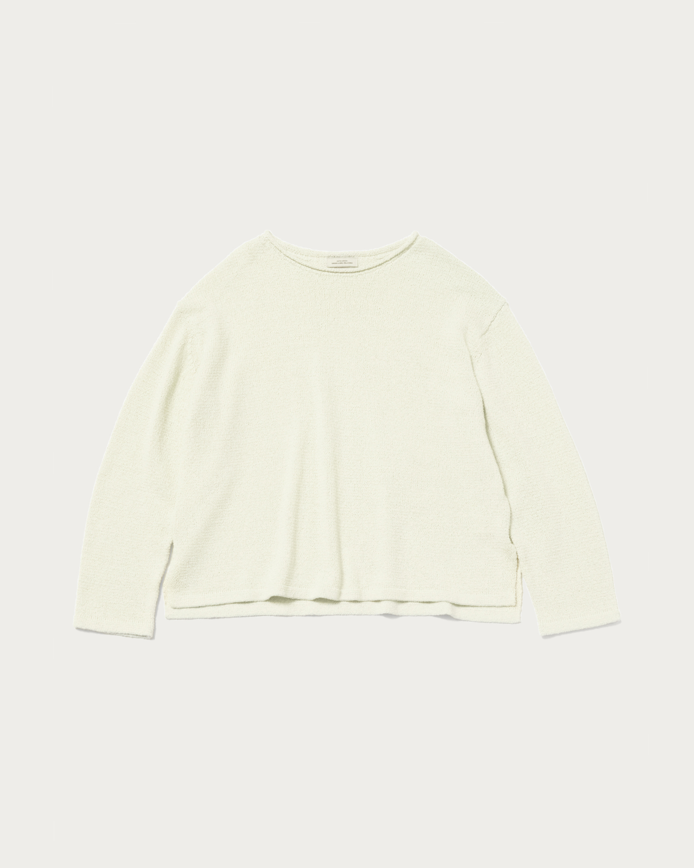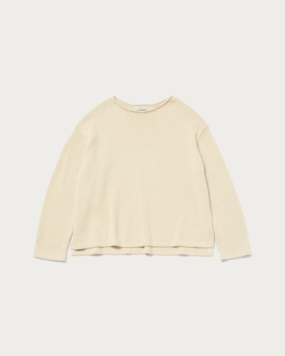 ナチュラルな雰囲気が魅力のスラブニットは、柔らかさと肌触りの良さがポイント。程よく開いたネックラインとサイドスリットが抜け感を演出してくれます。一枚ではもちろん、レイヤードも楽しんでいただけるゆったりとしたシルエットです。