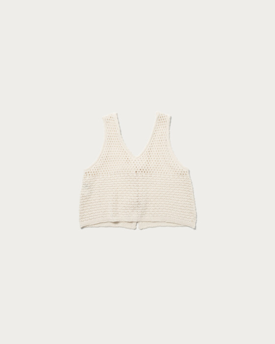 立体感のある編地を組み合わせて編んだジレは、前後2WAYでの着用が可能な一着。立体感のある編地がポイントで、ニットとのレイヤードはもちろん、夏はTシャツとの重ね着も楽しめてロングシーズン活躍する万能アイテムです。
