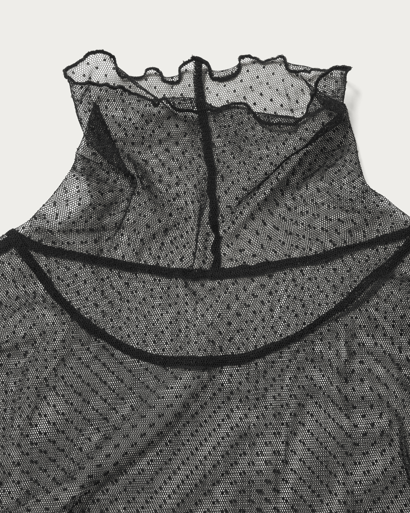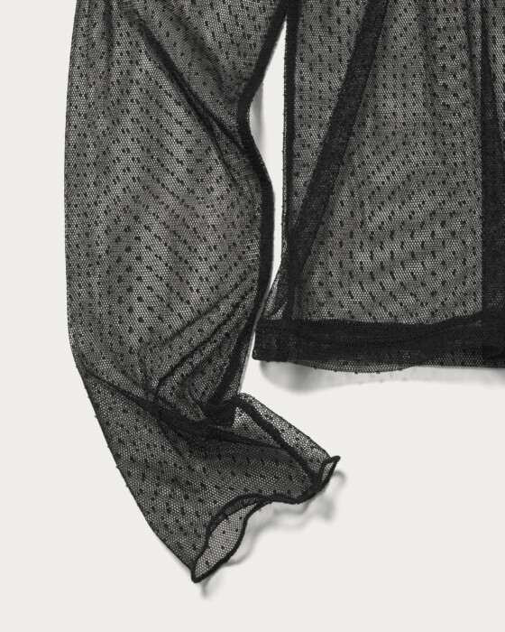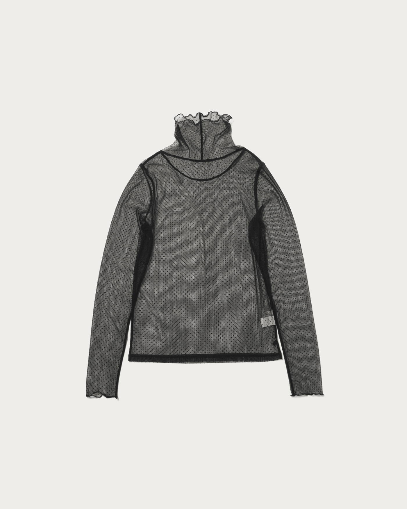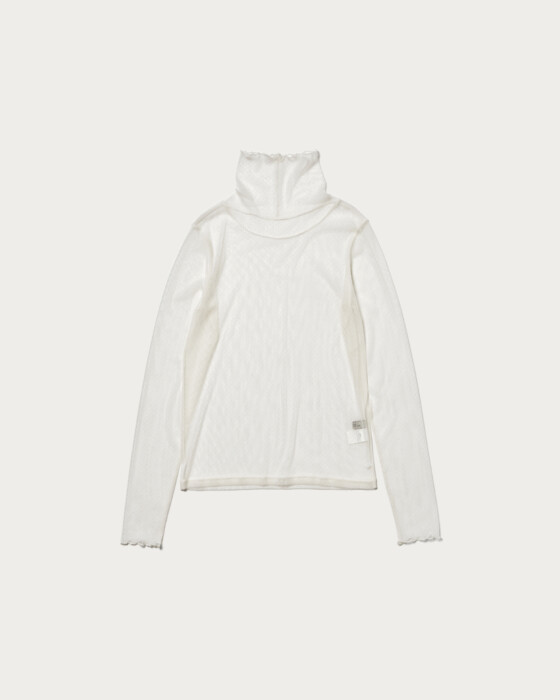 レイヤードするだけでトレンドの着こなしが叶うタートルネックのカットソー。チュール素材で程よく透け感があり、小さなドット柄が華やかな印象を与えます。まだ肌寒い日はニットやスウェットと、春先はシャツ合わせなど、ロングシーズンで活躍します。
