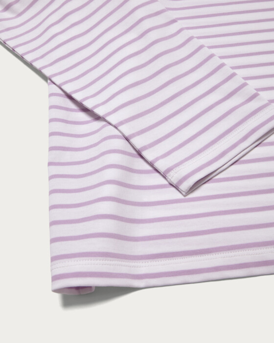 デイリー使いに重宝するコットン素材のボーダーロンTを、ピンク・ライム・ネイビーの春らしいカラーバリエーションで展開。ピッチの細いボーダーのためカジュアルになり過ぎず、合わせるアイテム次第で様々なテイストで着用いただけます。