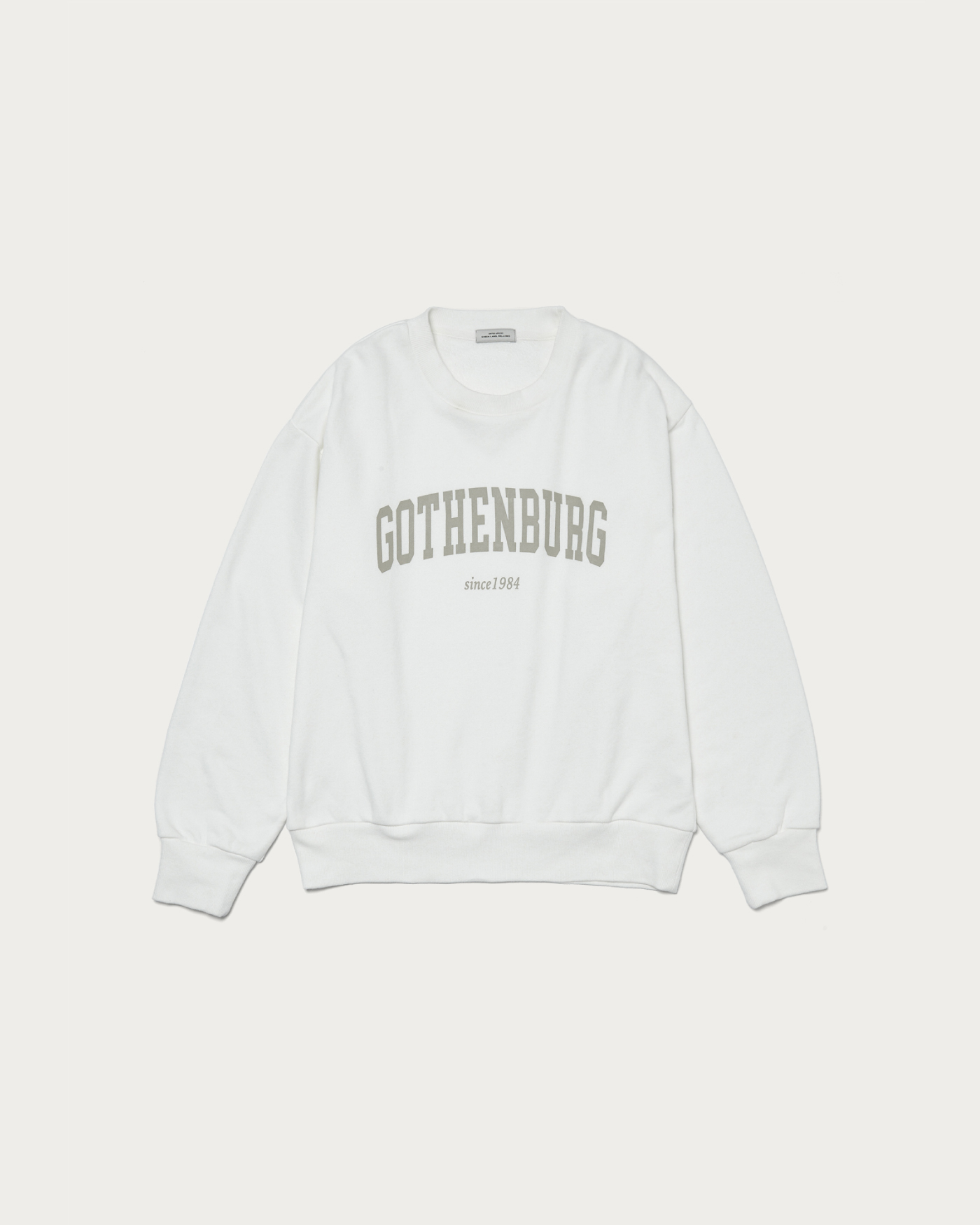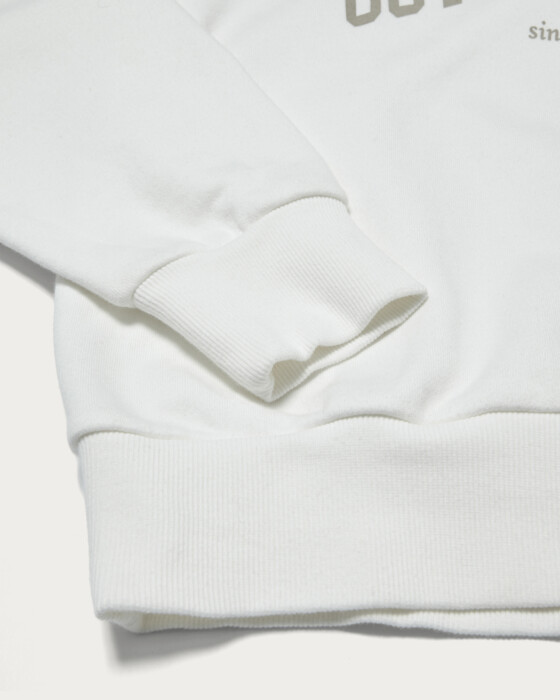 存在感のあるロゴが映える大人カジュアルなスウェット。ボディは程よいサイズ感で、襟と袖口はリブ仕上げにすることでメリハリのきいたシルエットになっています。ロゴを同色にすることでカジュアル過ぎないデザインになっているのもポイント。