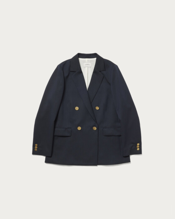 とにかく着回しがきく、きちんと見えるけどシーズンレスでシーンレスなジャケット。あえてダブルボタンのデザインにすることで程よいトレンド感を取り入れています。セレモニーからお仕事まで1枚持っているととても活躍してくれるジャケットです。