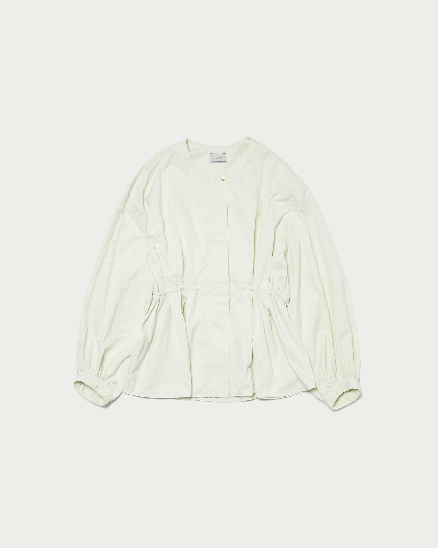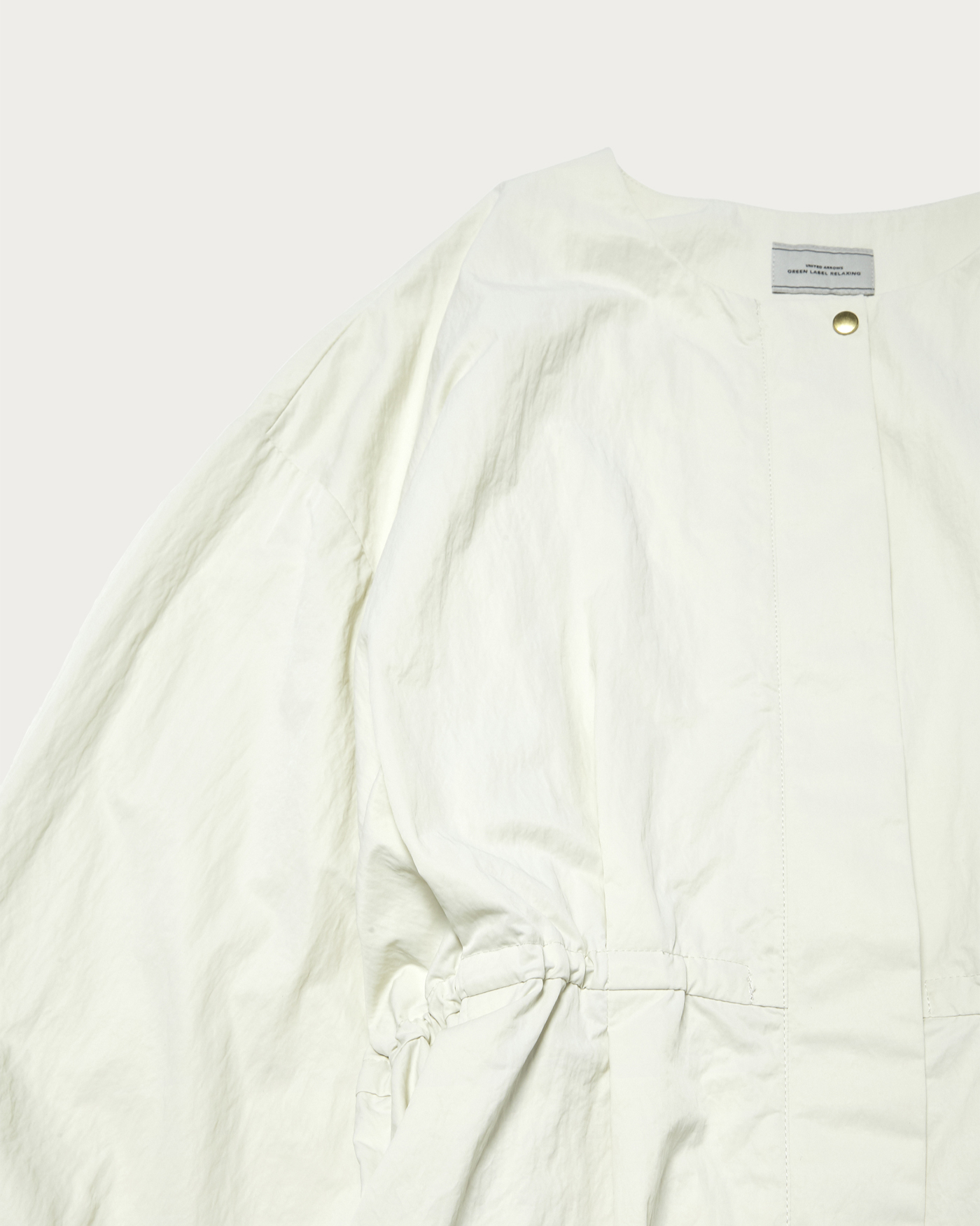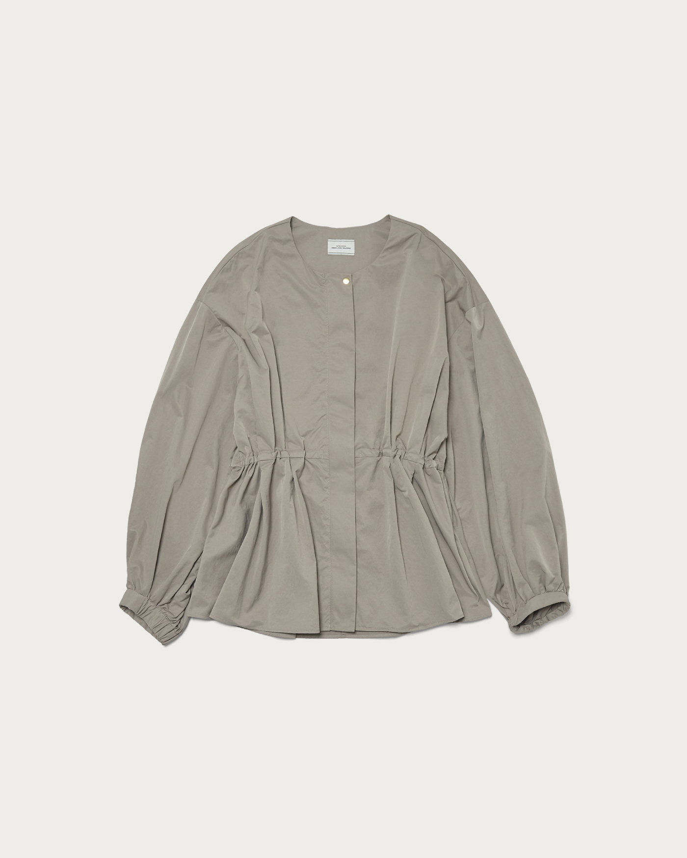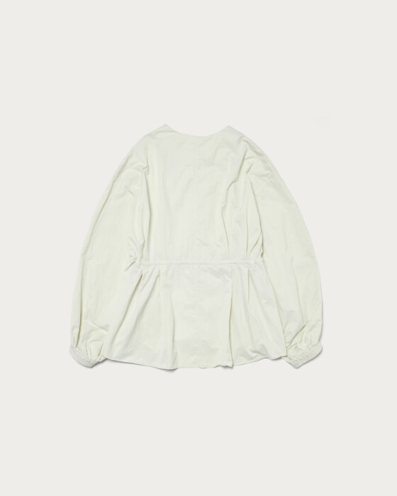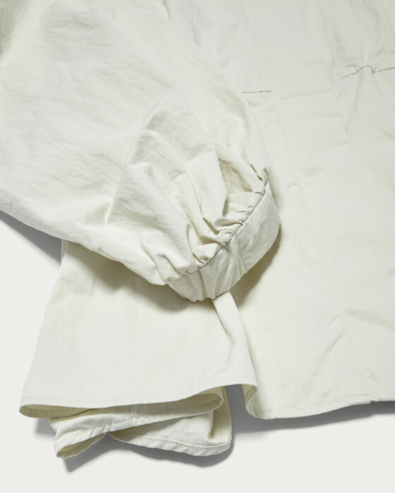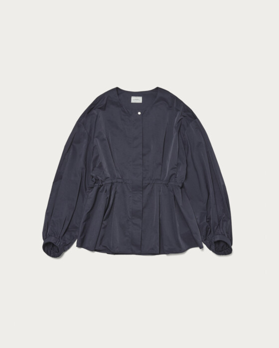 ウエストのタックがポイントのブルゾンは、ブラウス感覚で着用できる大人フェミニンな一着。ギャザーで立体感を出しつつ、ウエストのタックでメリハリのあるシルエットに。ウエスト部分は内側にドロストがついているため、調整できるのも嬉しいポイント。程よく光沢とハリのあるナイロン素材を使用しています。