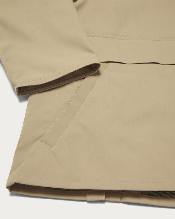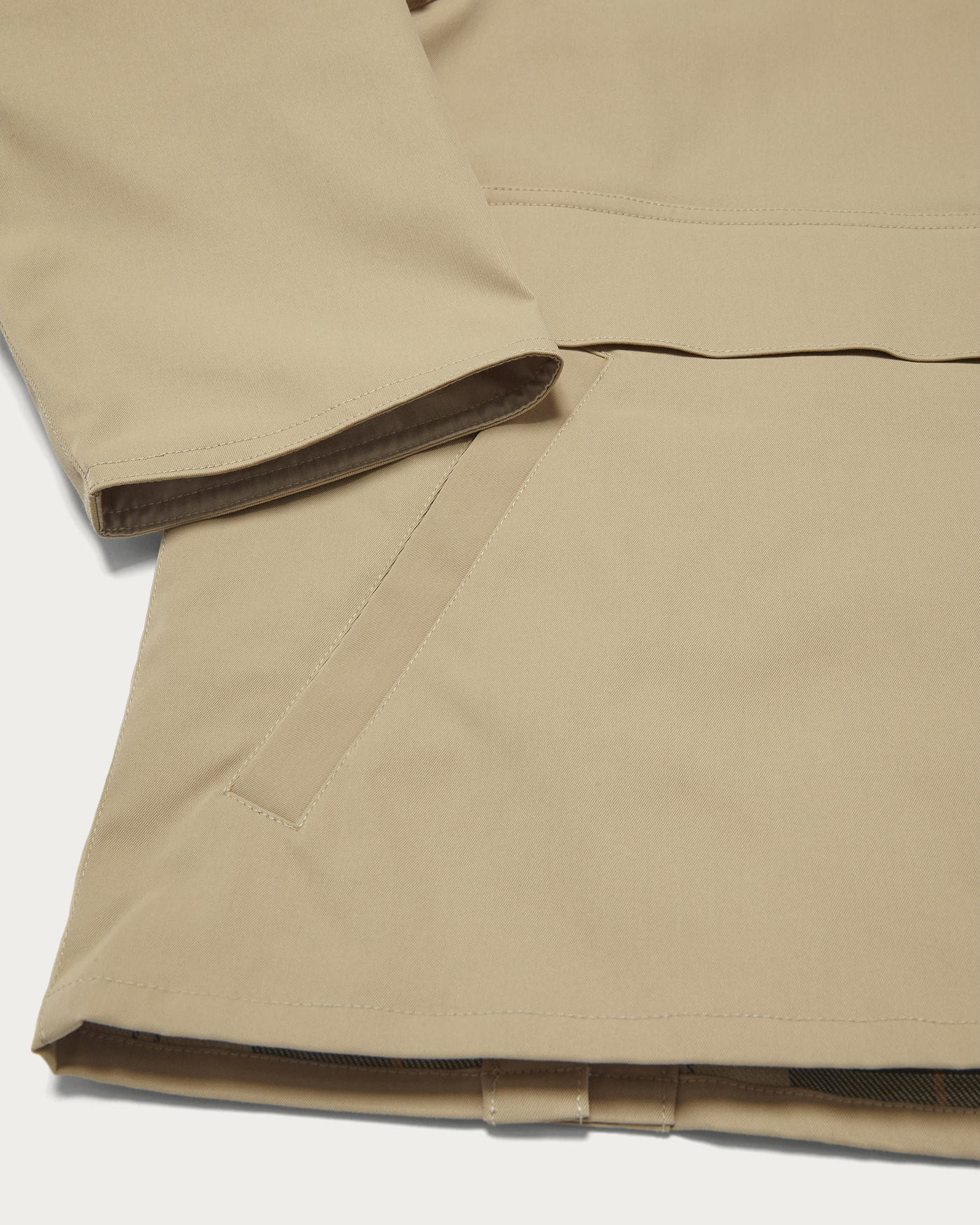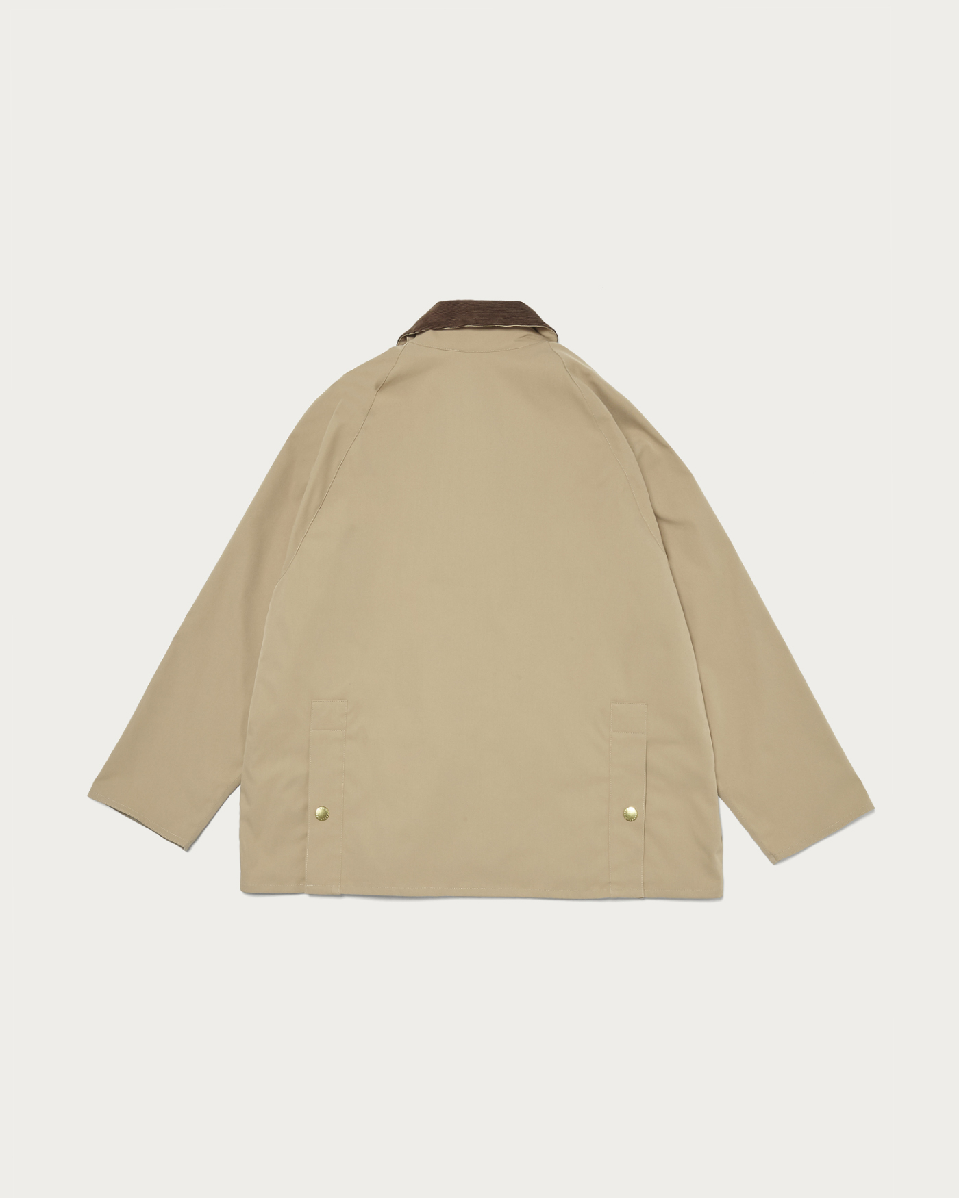 お洒落な人たちの注目を集める〈Barbour〉の日本限定モデル「ボロウデイル」をベースに別注。軽やかな生地を採用し、サイドベンツを加えることでラフに羽織っても様になるシルエットを目指しました。襟は締め色を使わず、微配色のバイカラーデザインに。ベージュにはゴールド、オフホワイトにはシルバーのパーツ配色など、細部までこだわりが宿ります。