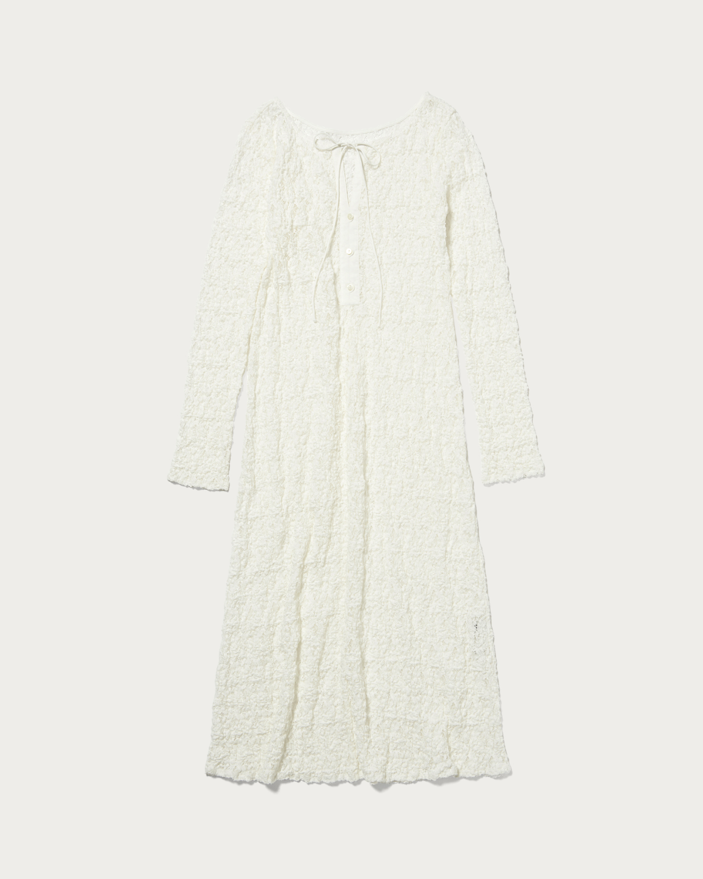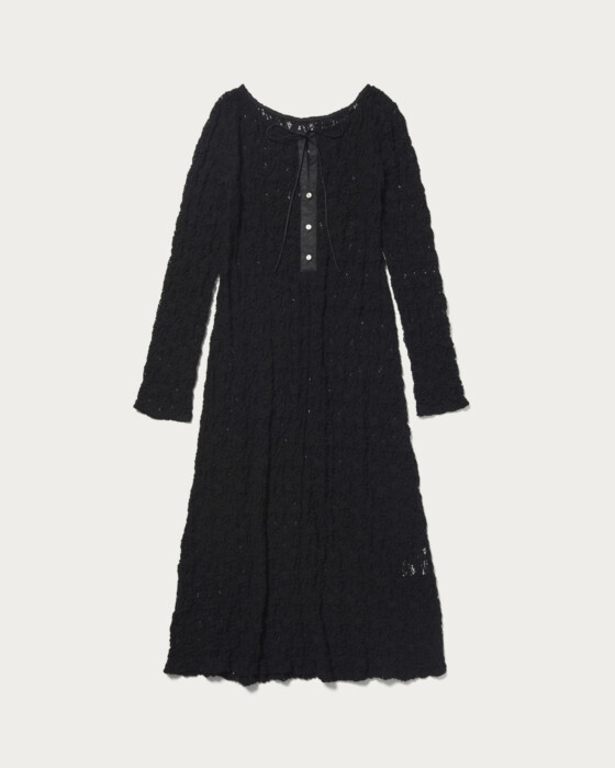 表情豊かな立体感のあるレースのワンピースは、スキッパーとなボートネックの前後2wayで着用できるデザイン。体のラインに沿ったウエスト部分と、裾にかけてのフレアデザインで女性らしさがありながらも、ストレッチ性があるため快適な着心地が叶います。ワンピースとしてはもちろん、今年はワイドパンツと合わせるのがオススメ。