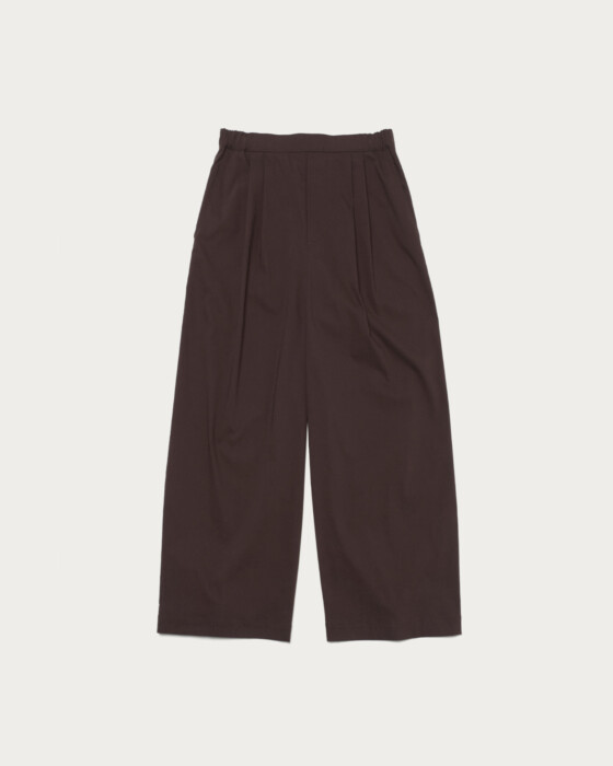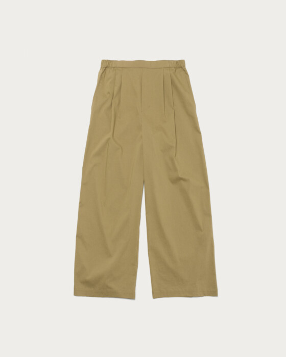 オンオフ兼用に重宝するデザインと、多様な機能性が魅力のオルマイパンツより、春夏シーズンにぴったりの清涼感のある素材が登場。トレンドのワイドパンツは2タックデザインで、リラックス感のあるワイドシルエットが魅力です。ウエストはゴム仕様で快適なはき心地なのに加え、内側がドロスト仕様のため、トップスインした時にすっきり見えするのも嬉しいポイント。カラバリ豊富な7色展開。
