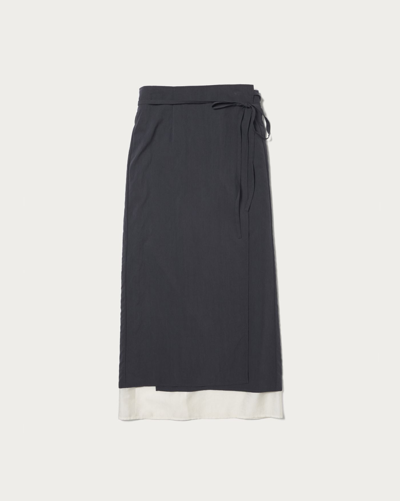 シアーをレイヤードしたようなラップデザインのスカート。程よいラフさとトレンド感を両立しつつ、華奢な紐が女性らしい抜け感を表現します。ラップスカート単体としても、パンツやワンピースとのレイヤードも楽しめる2way仕様。