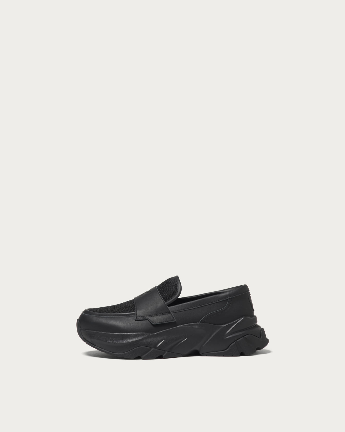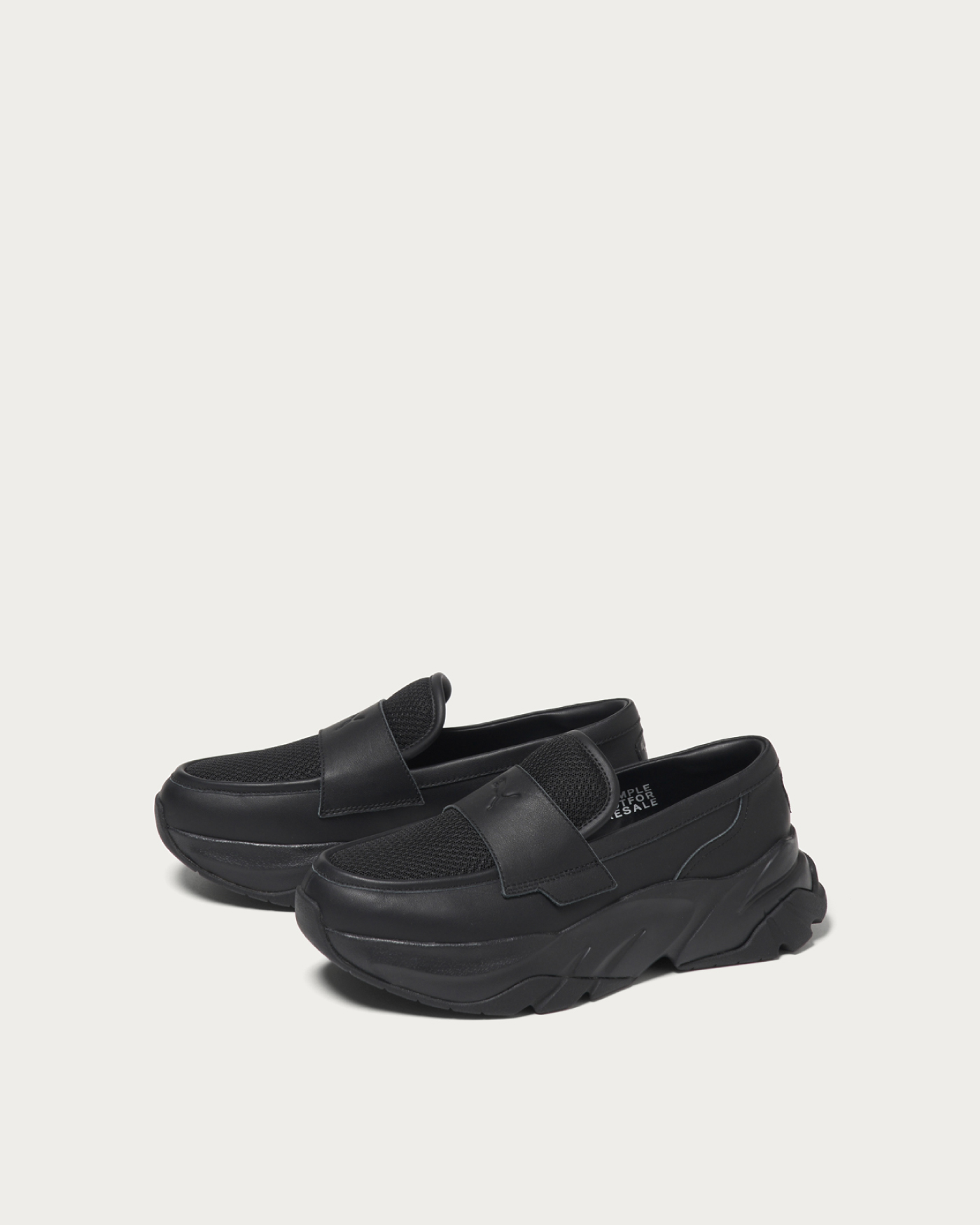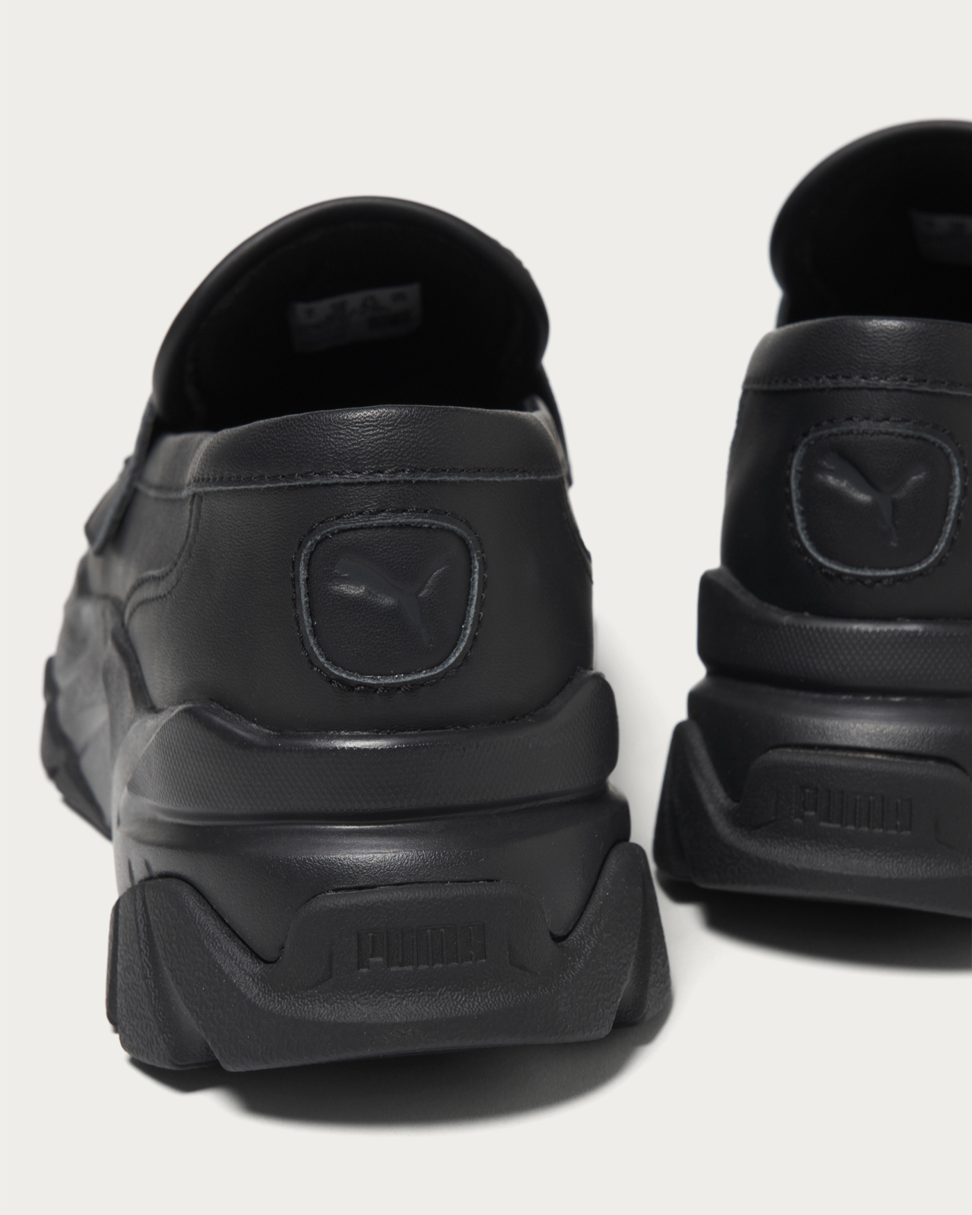 ストリートの要素を残しつつ、スマートなアッパーとハイキングにインスパイアされた分厚いソールが特徴的なローファー。アッパーの一部にメッシュ素材を使用して、スポーティーなムードをプラスしました。また、アッパーの帯部分のPUMA CATロゴを、エンボスロゴにして、インソールをブラック×シルバープリントにして大人の女性が履きやすい見た目に仕上げました。