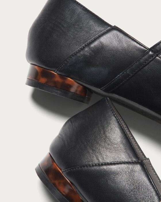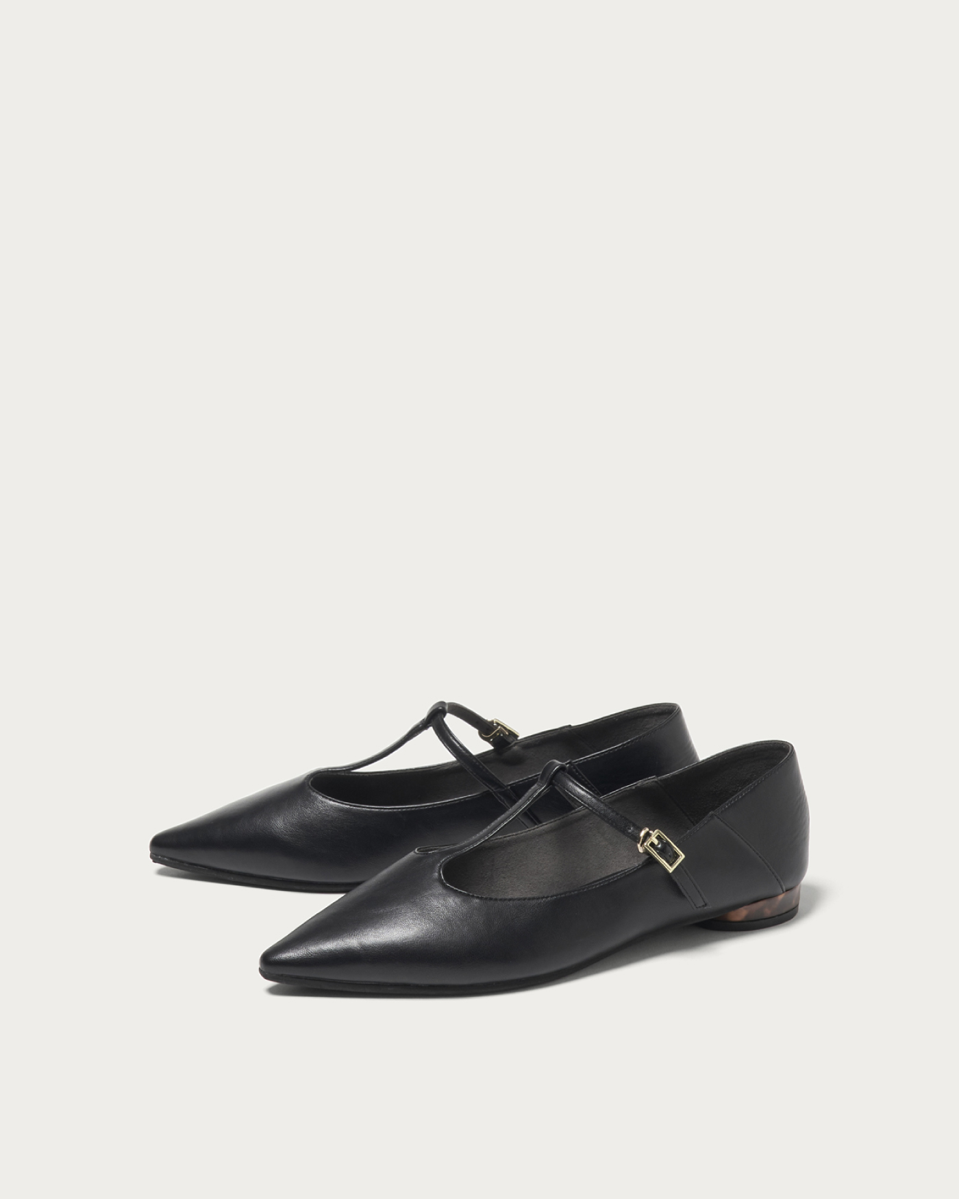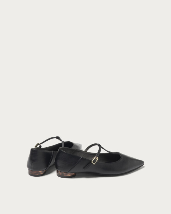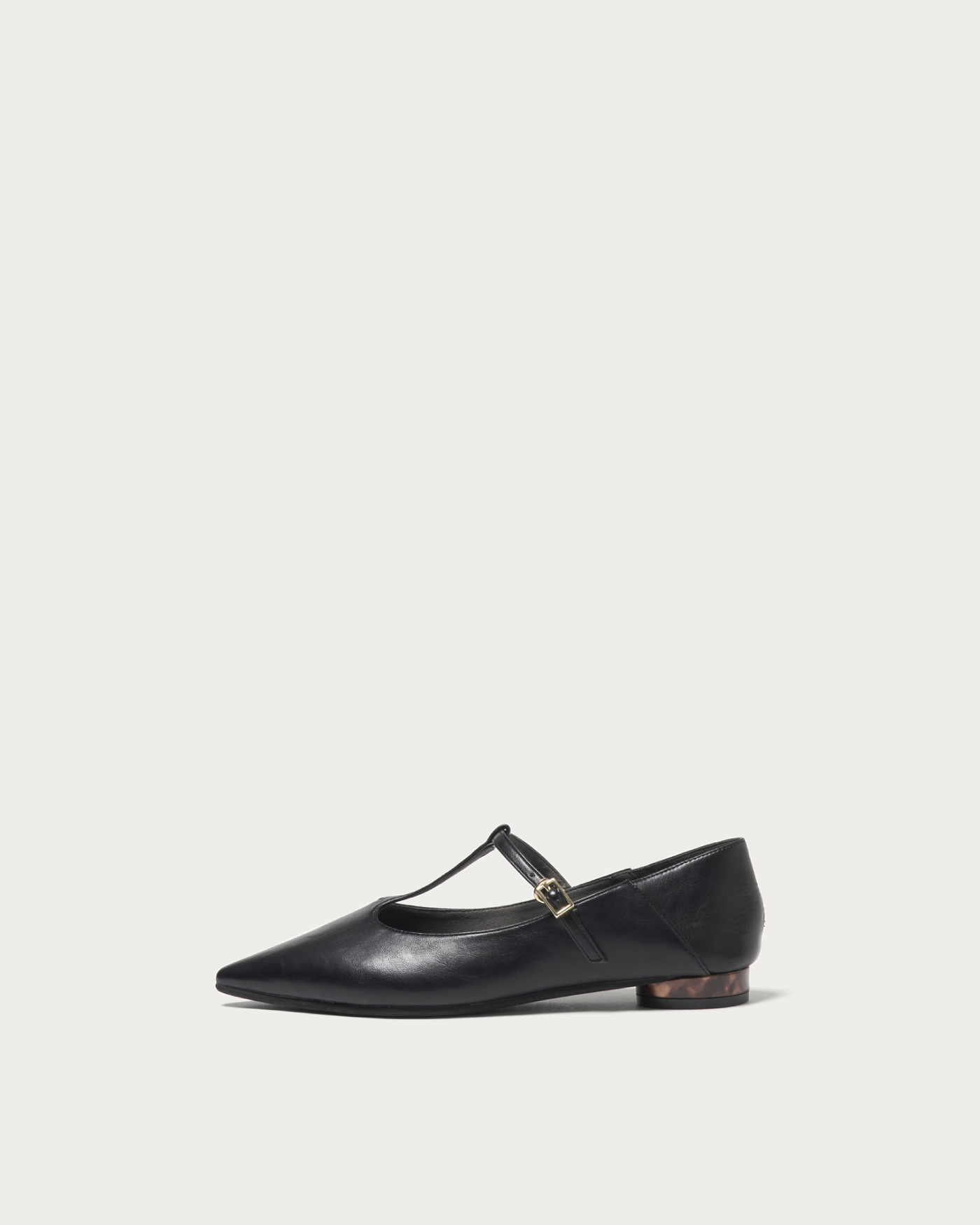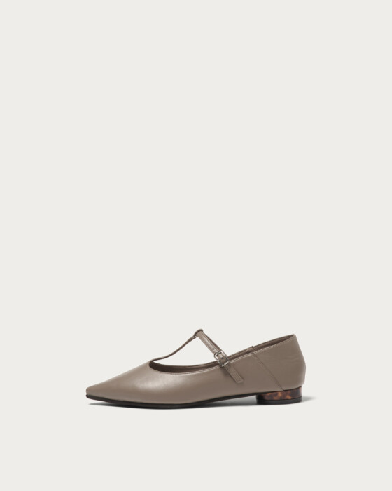 ソフトな作りでかかとも踏んで履ける2WAY仕様のストラップシューズ。2026春夏は、Tストラップが新顔でトレンドに浮上。ラウンドヒールには、クラシックトレンドのべっ甲ライクな素材を施し、程よいラフさときちんと感のバランスを取り込みました。