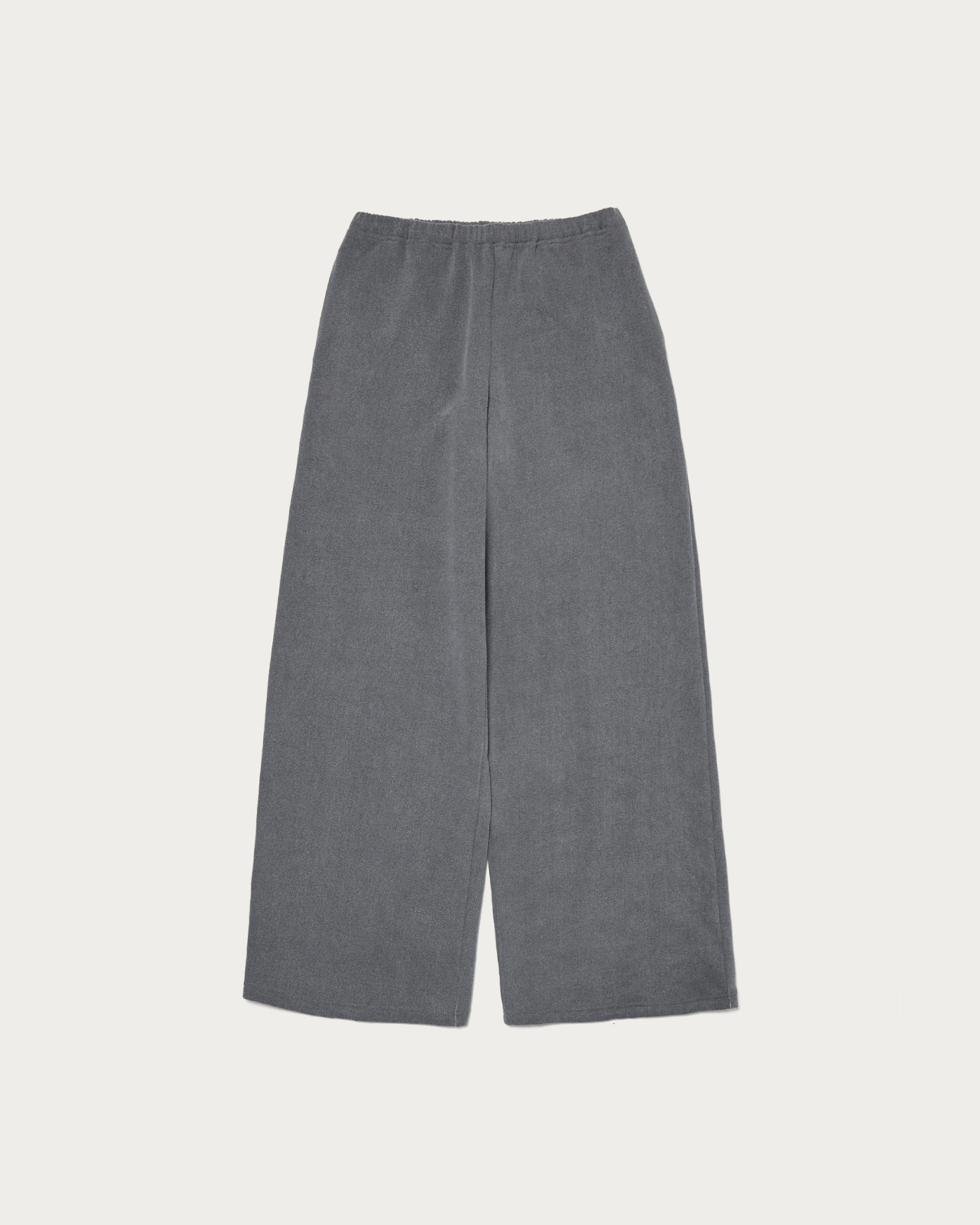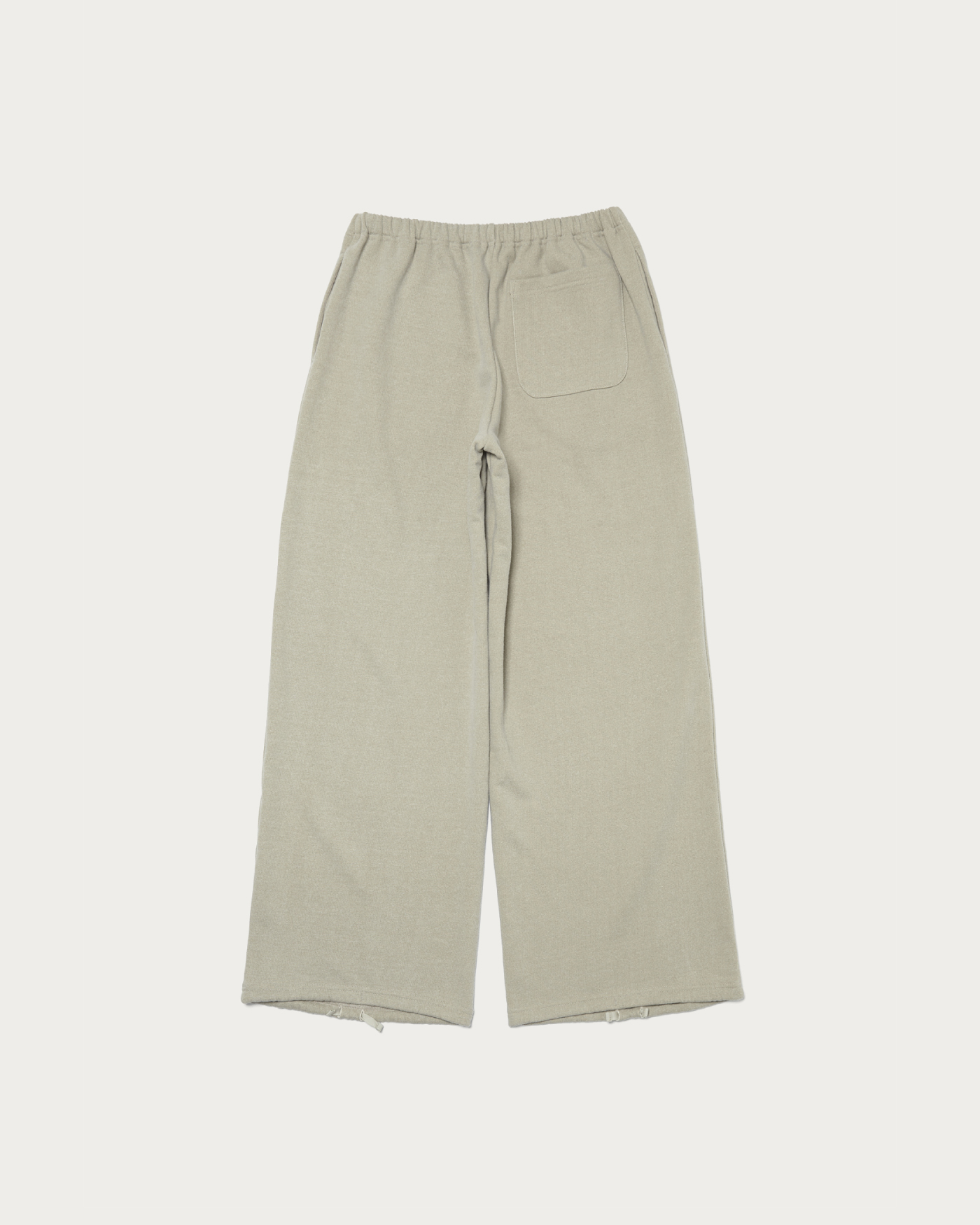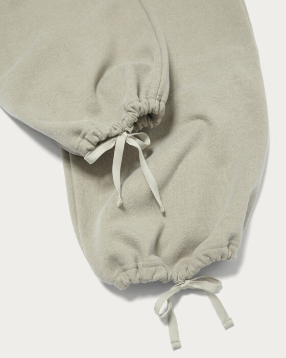 ヴィンテージ風の表情で仕上げた、ワイドシルエットのスウェットイージーパンツ。両面に顔料染料プリントを施し、何度も洗いをかけてフェード感を出した裏毛を使用しています。裾に紐を通すことでシルエットの変化が楽しめ、長めのレングスを携えた贅沢な分量感がスタイリッシュなムードを演出。