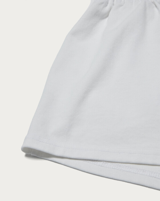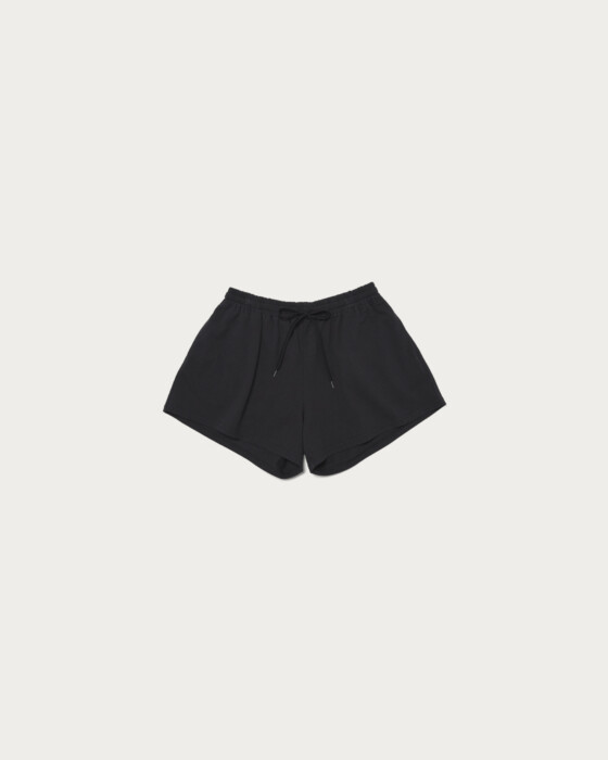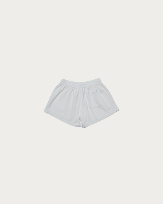 浅めの股上とやや裾広がりシルエットでヘルシーな印象にした、ランニングパンツ風ショーツ。ドライタッチで度目の詰まった天竺を使用しています。レザー等、異素材アイテムとのスタイリングに外しとして取り入れるのもオススメ。