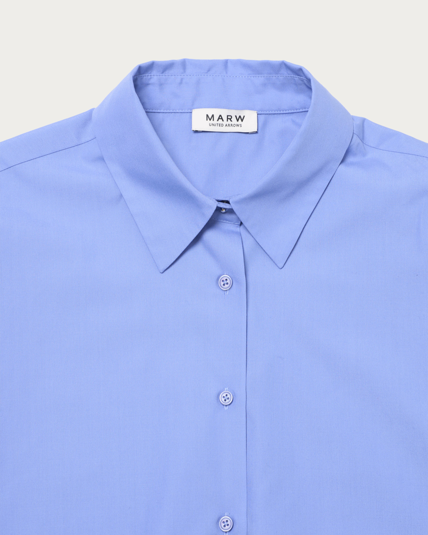 襟釦のギボシがポイントの〈MARW UNITED ARROWS〉定番のシャツ。ドロップショルダーに、長めの着丈で抜け感がありながらレギュラーカラーにし、きちんと感をプラス。シンプルデザインで飽きなく、幅広いシーンで活躍する1着。