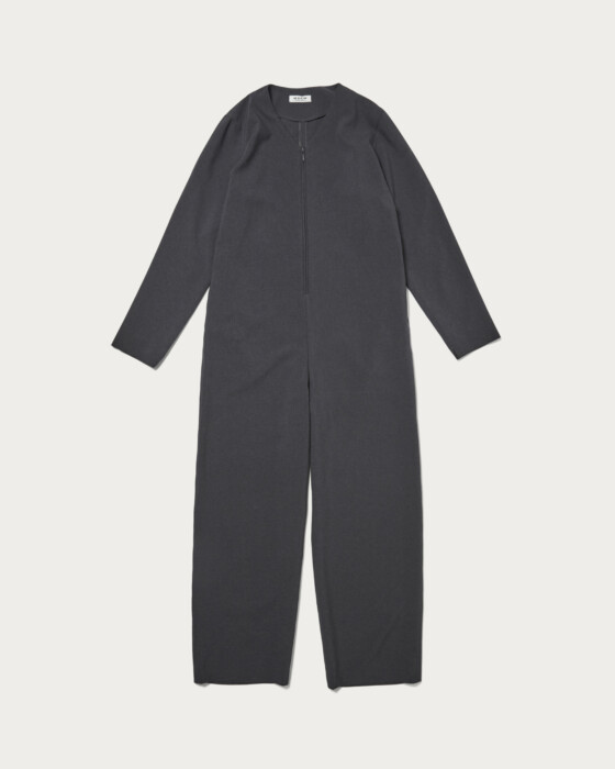 フロントジップのデザインが特徴のオールインワン。程よくあいたVネックでカジュアル過ぎない印象をプラス。一枚着としてはもちろん、インナーを覗かせたレイヤードスタイルなど様々なコーディネートをお楽しみいただけます。