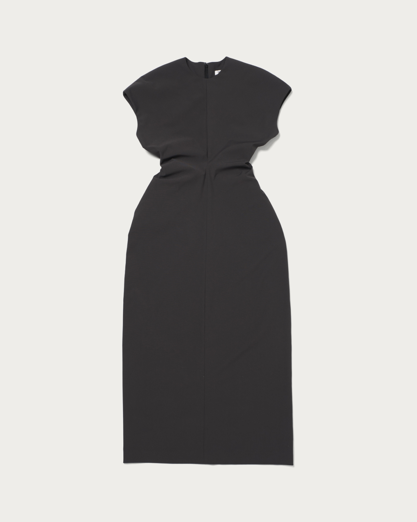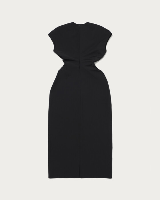 ウエストに大胆に施したドレープデザインが目を惹くデザインワンピース。腰回りはシェイプされつつ、ヒップ部分には程よいゆとりを持たせ、体のラインを拾いすぎにシルエットに。フレンチスリーブで気になる腕部分もカバーしつつ、着映えする1着です。