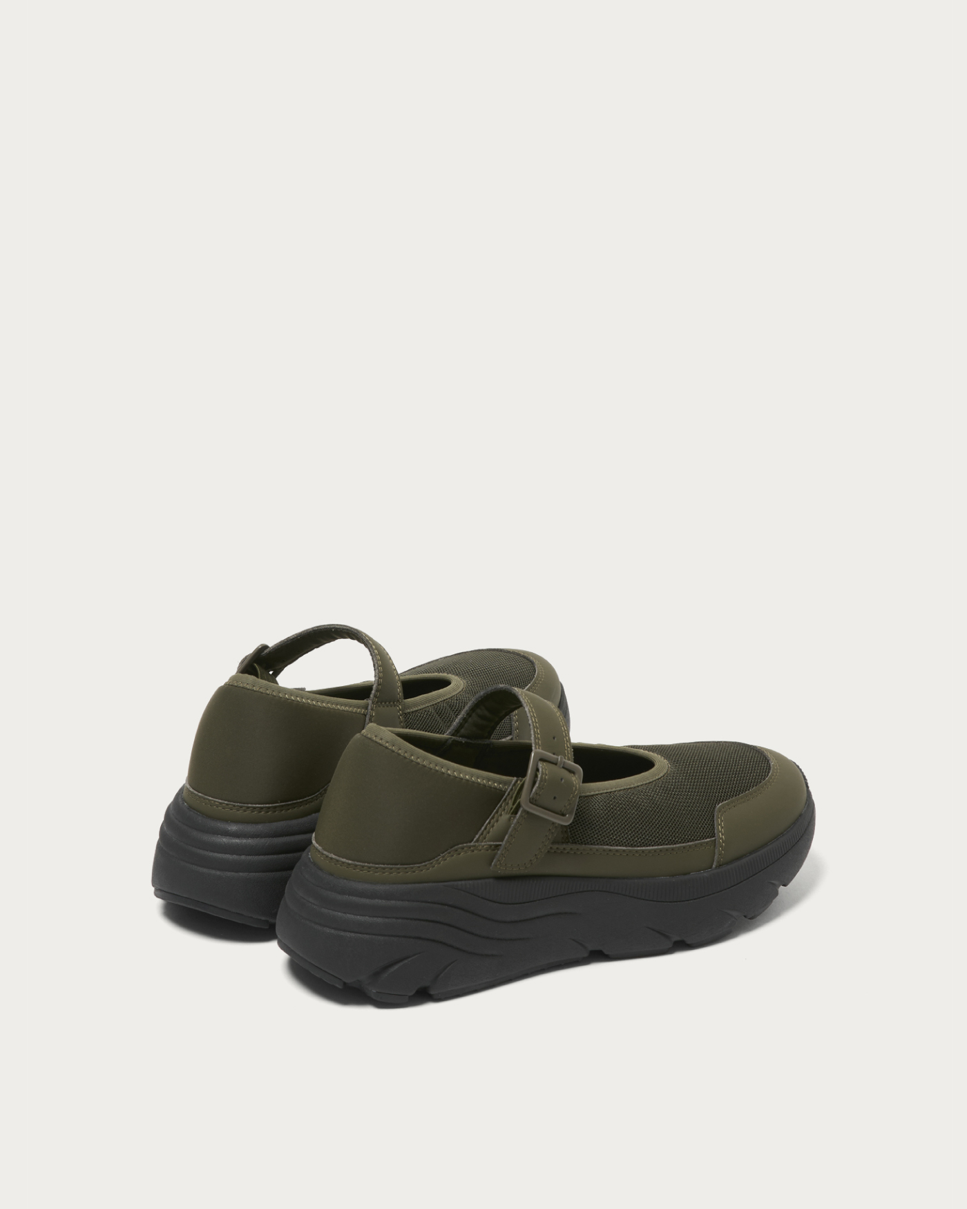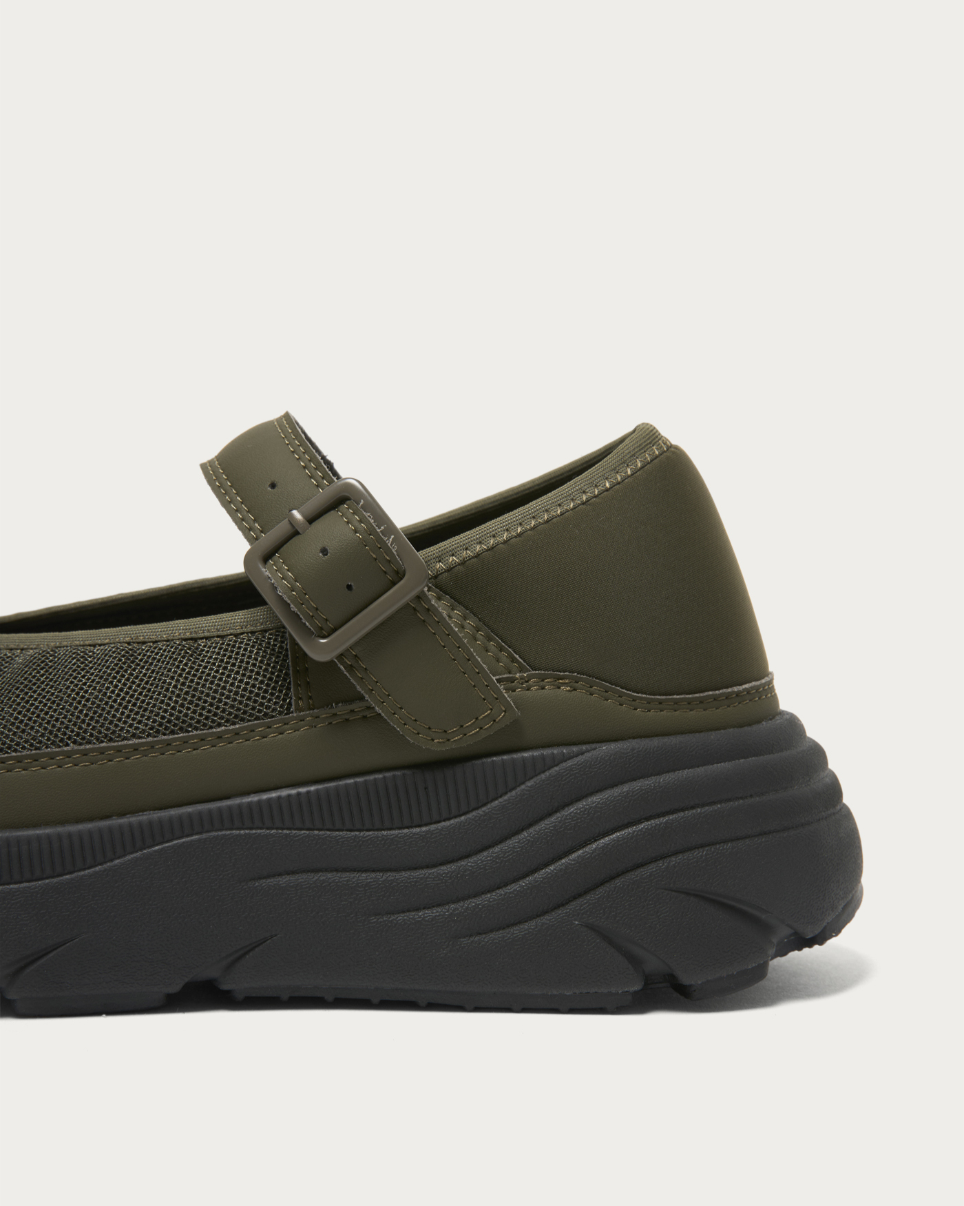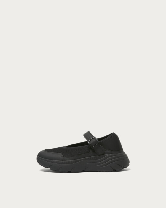 ボリュームソールが目を引くメリージェーンタイプのスニーカー。軽量でクッション性に優れたソールを採用し、存在感のあるルックスと快適な履き心地を両立しました。かかと部分には柔らかく伸縮性のある素材を使用しており、かかとを踏んでスリッポンのようにも、立ててしっかりホールドしても履ける2WAY仕様。シーンや気分に合わせて、ラフにもきちんとにも履きこなせる一足です。