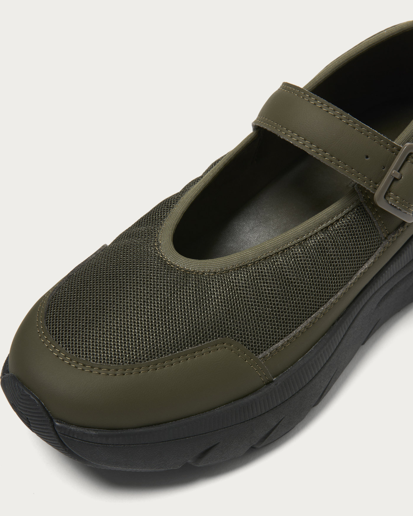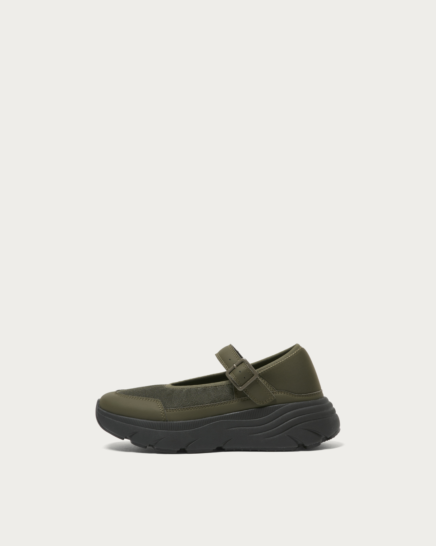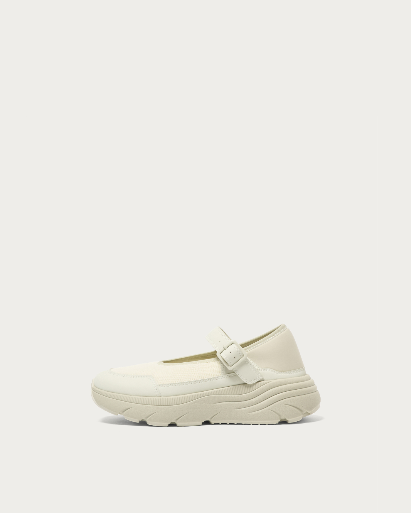 ボリュームソールが目を引くメリージェーンタイプのスニーカー。軽量でクッション性に優れたソールを採用し、存在感のあるルックスと快適な履き心地を両立しました。かかと部分には柔らかく伸縮性のある素材を使用しており、かかとを踏んでスリッポンのようにも、立ててしっかりホールドしても履ける2WAY仕様。シーンや気分に合わせて、ラフにもきちんとにも履きこなせる一足です。