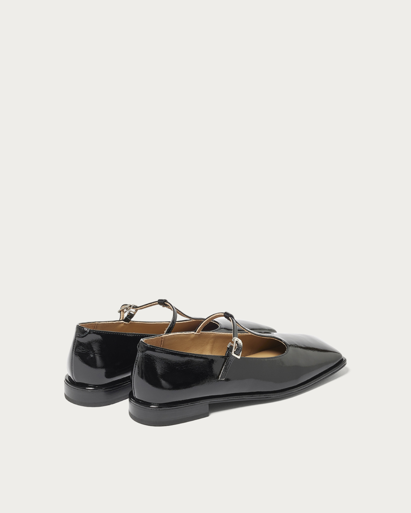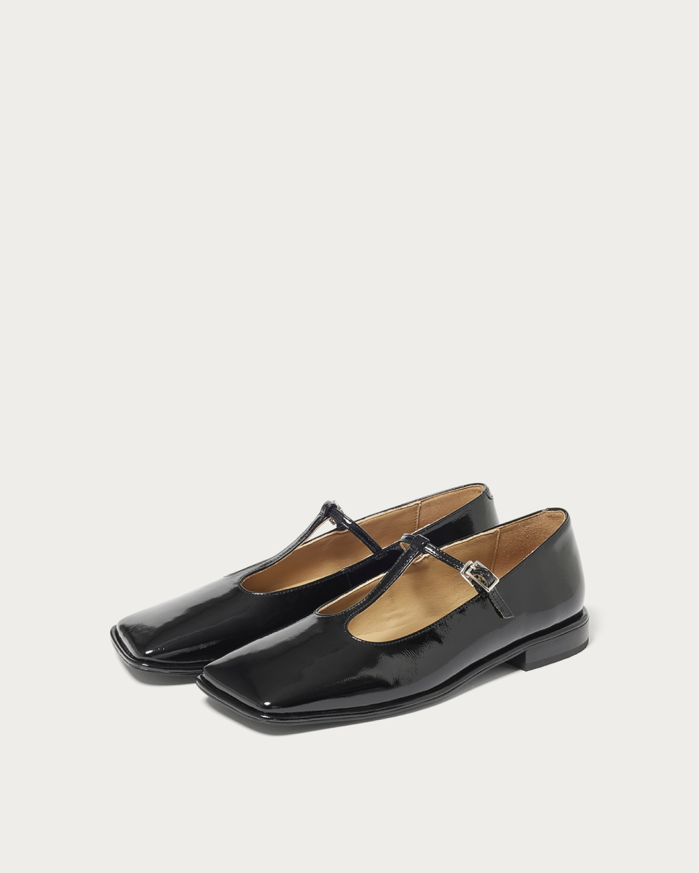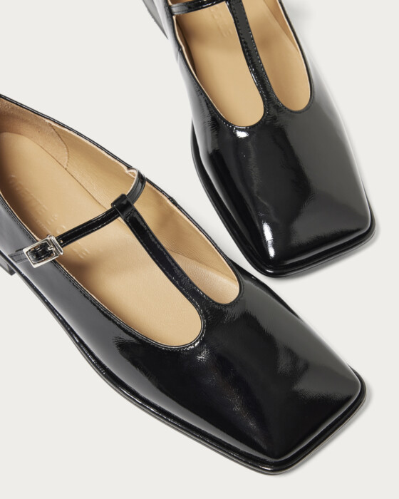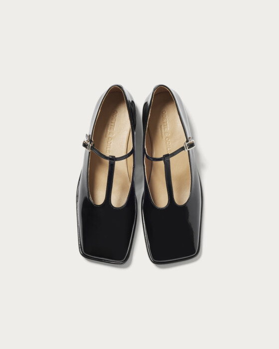 ワイドスクエアトウに繊細なTストラップを組み合わせ、程よい抜け感のあるバランスに仕上げた一足。モードな雰囲気を演出しつつ、重たくなりすぎないデザインは、パンツにもスカートにも映えます。シンプルな装いにスパイスを添えてくれる、存在感のあるアイテムです。