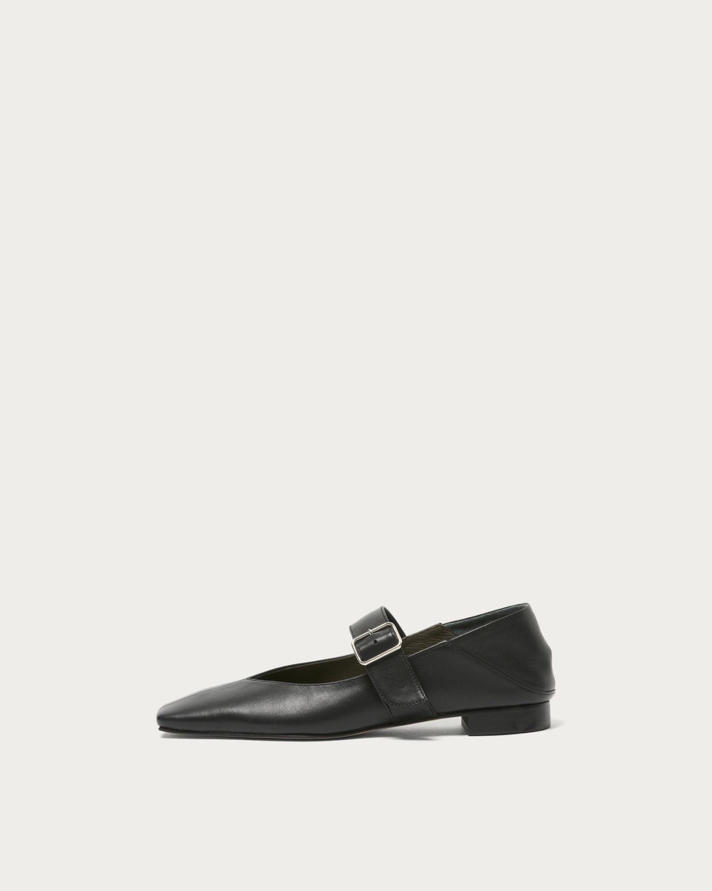 Vカットのセンターシームと幅広ベルトが印象的な、モードなムード漂うメリージェーン。ソフトなスムース素材と軽やかな履き心地で、リラックス感と上品さを両立します。かかとは踏んでミュール風にも履ける2WAY仕様。抜け感のあるデザインで、今季らしい大人のカジュアルスタイルにマッチします。